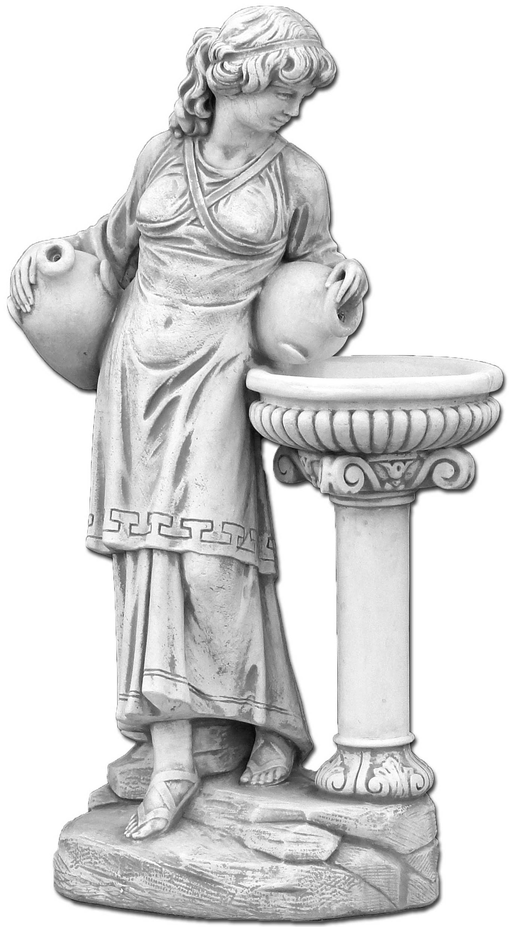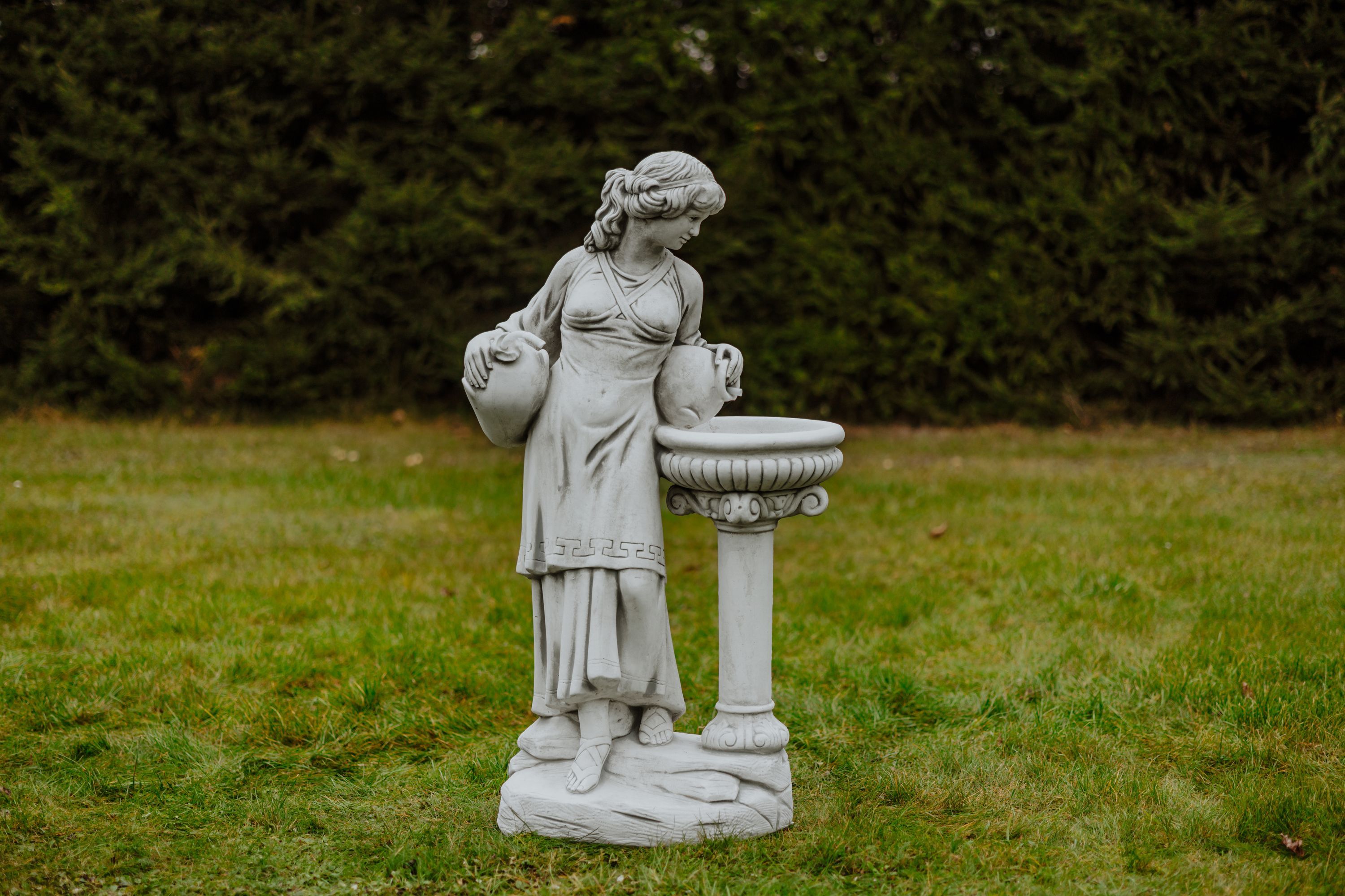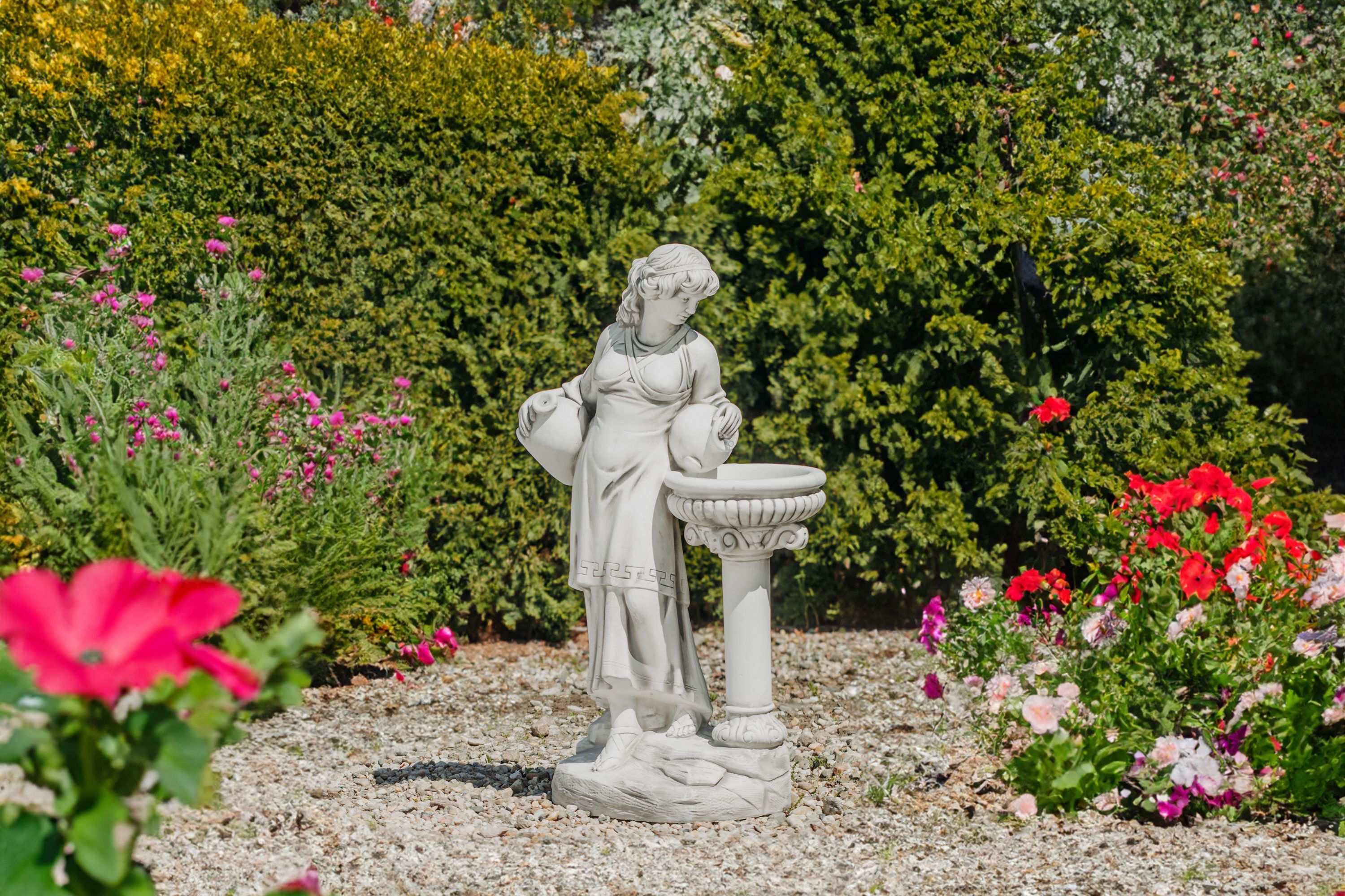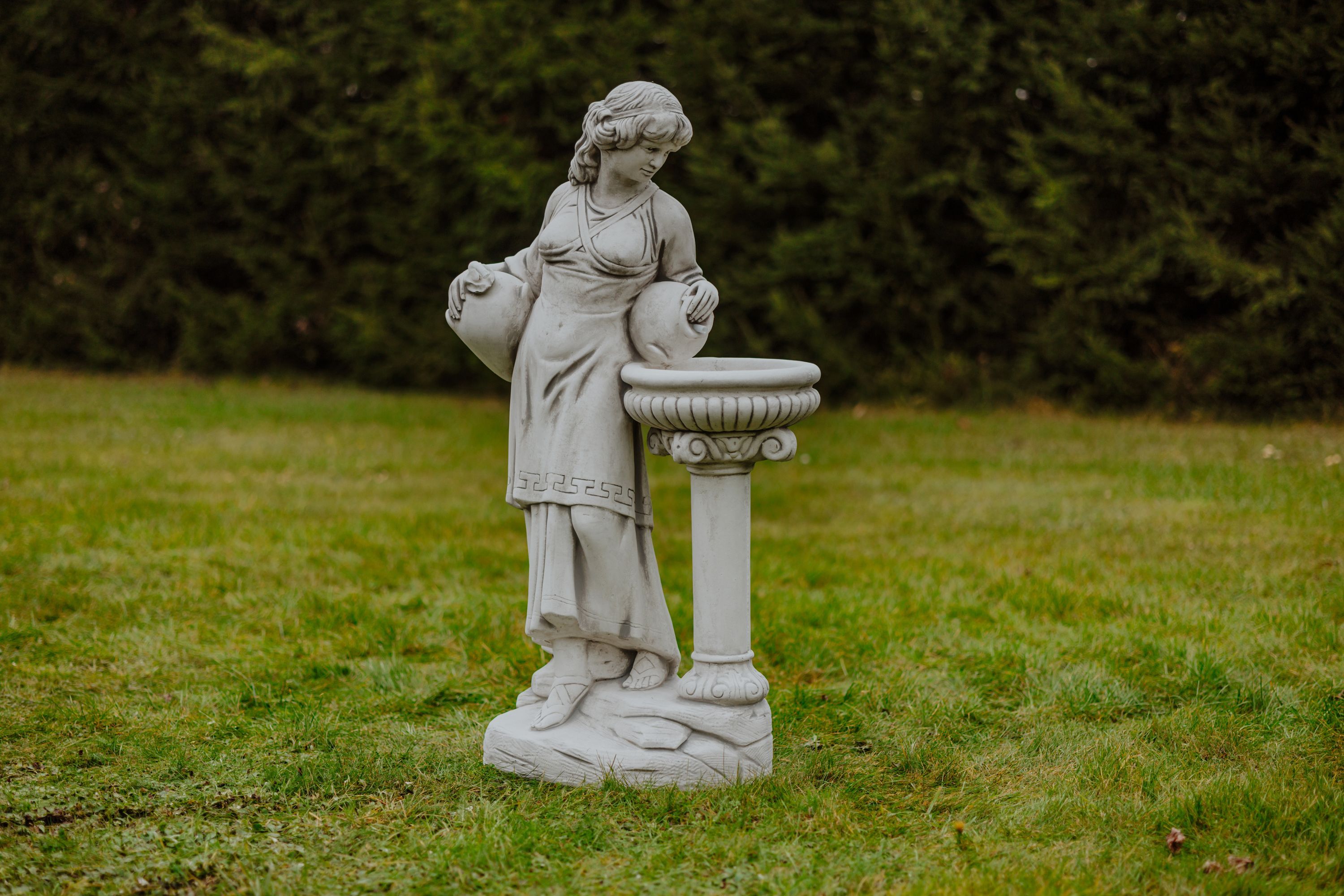 Massive große Statue Frau mit Vogeltränke Gartendeko aus Steinguss frostfest
