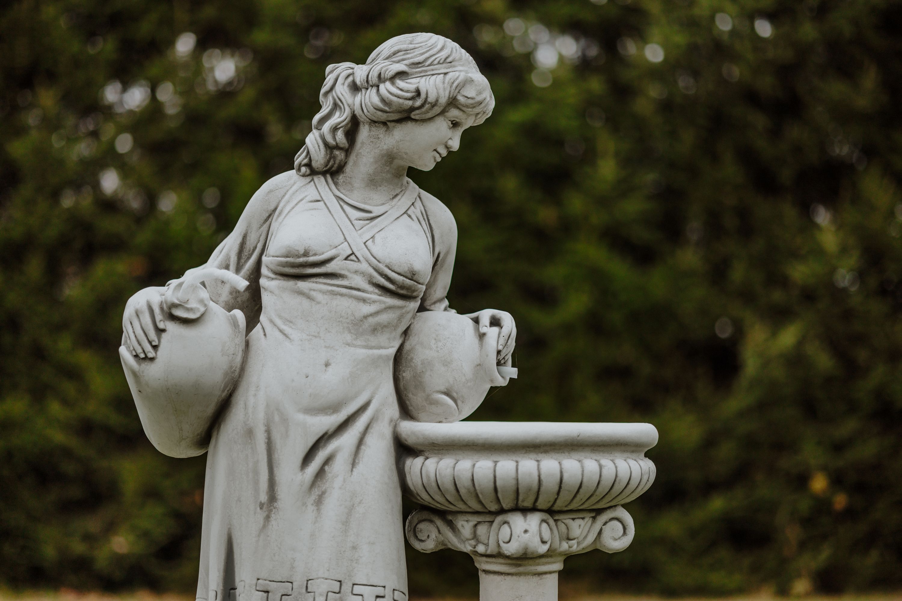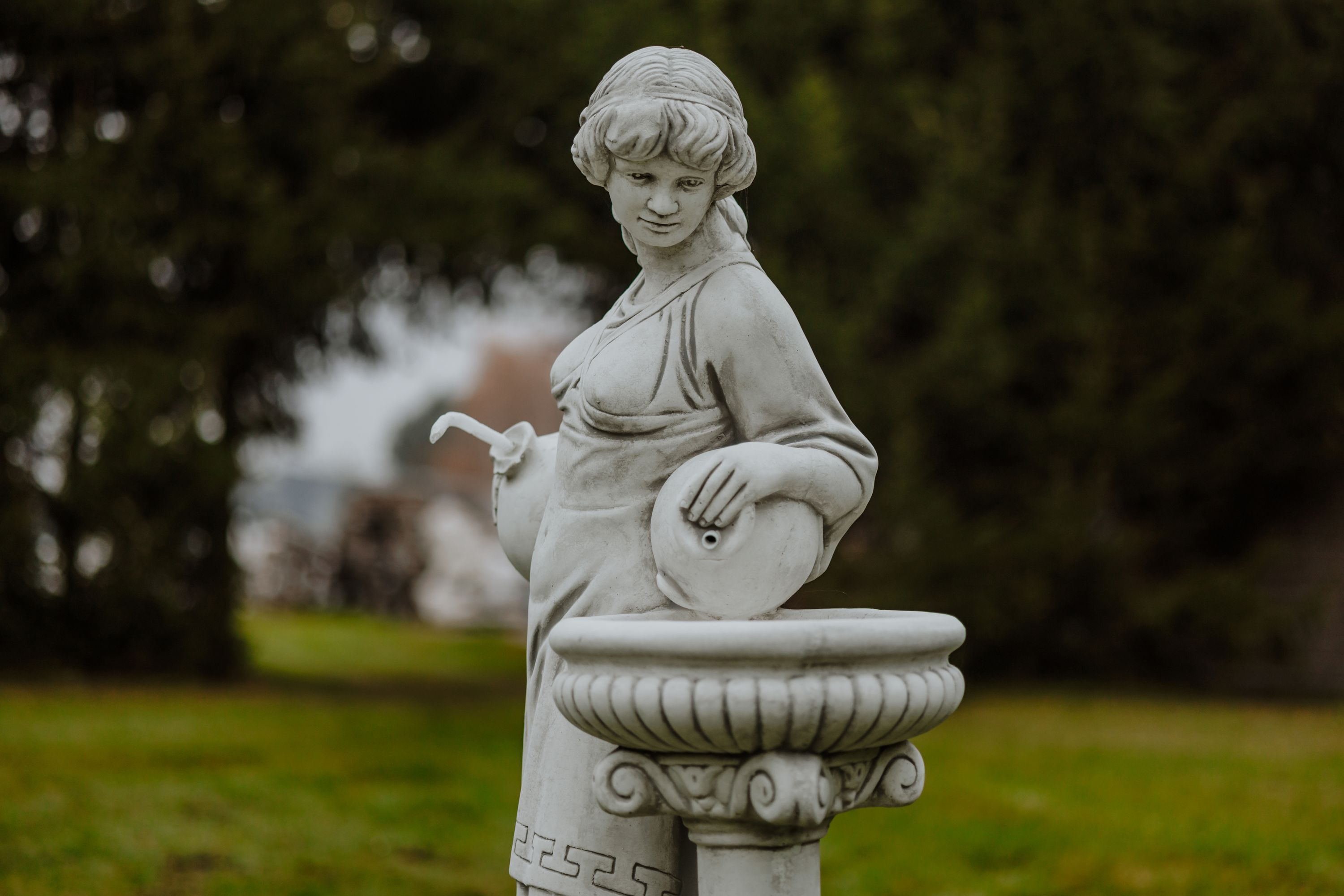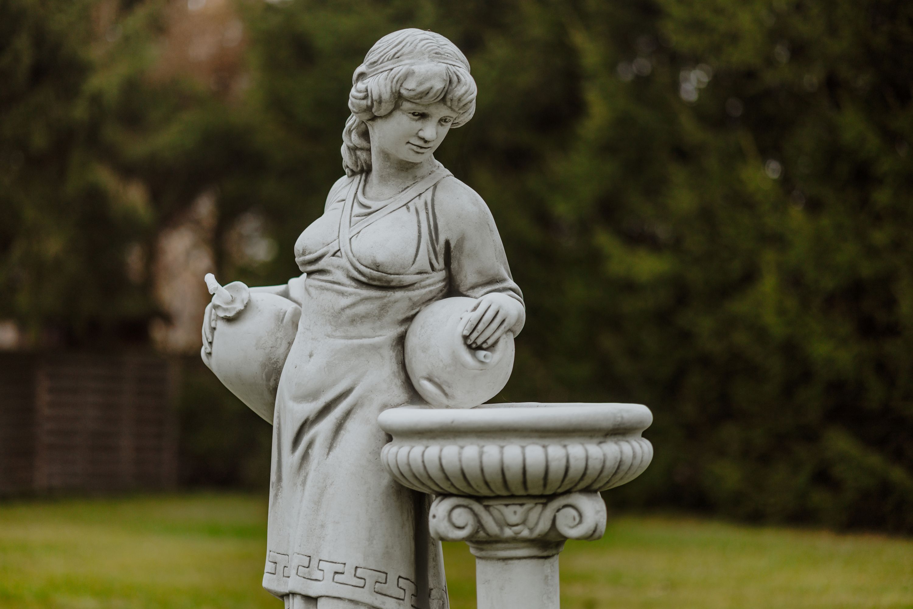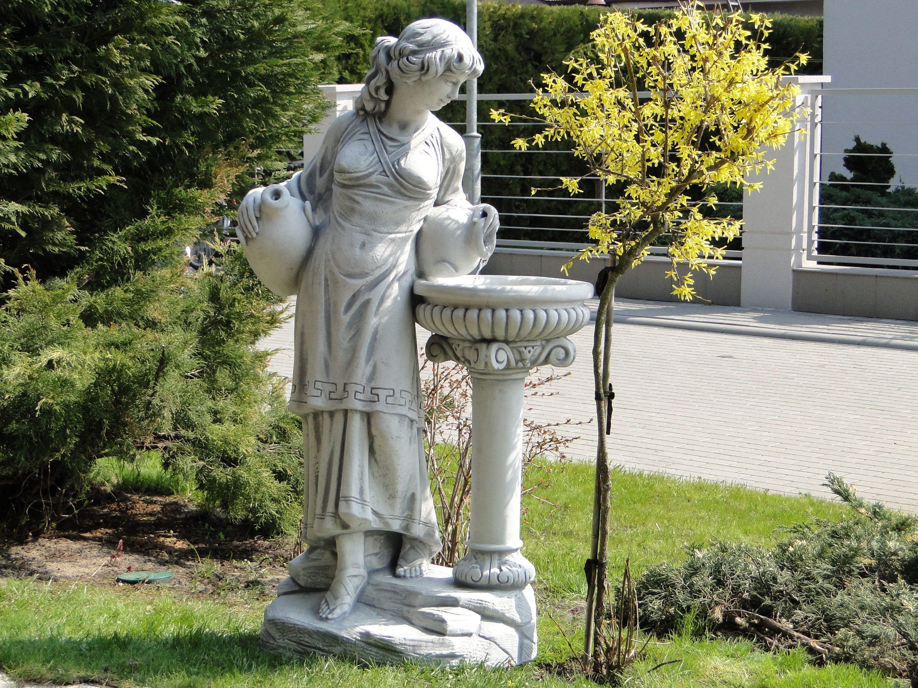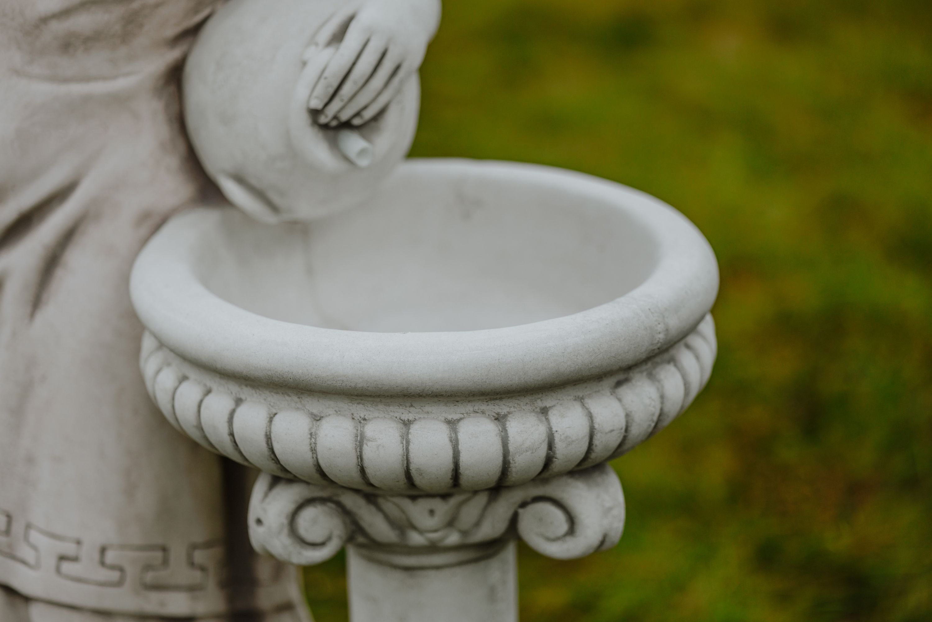 Massive große Statue Frau mit Vogeltränke Gartendeko aus Steinguss frostfest