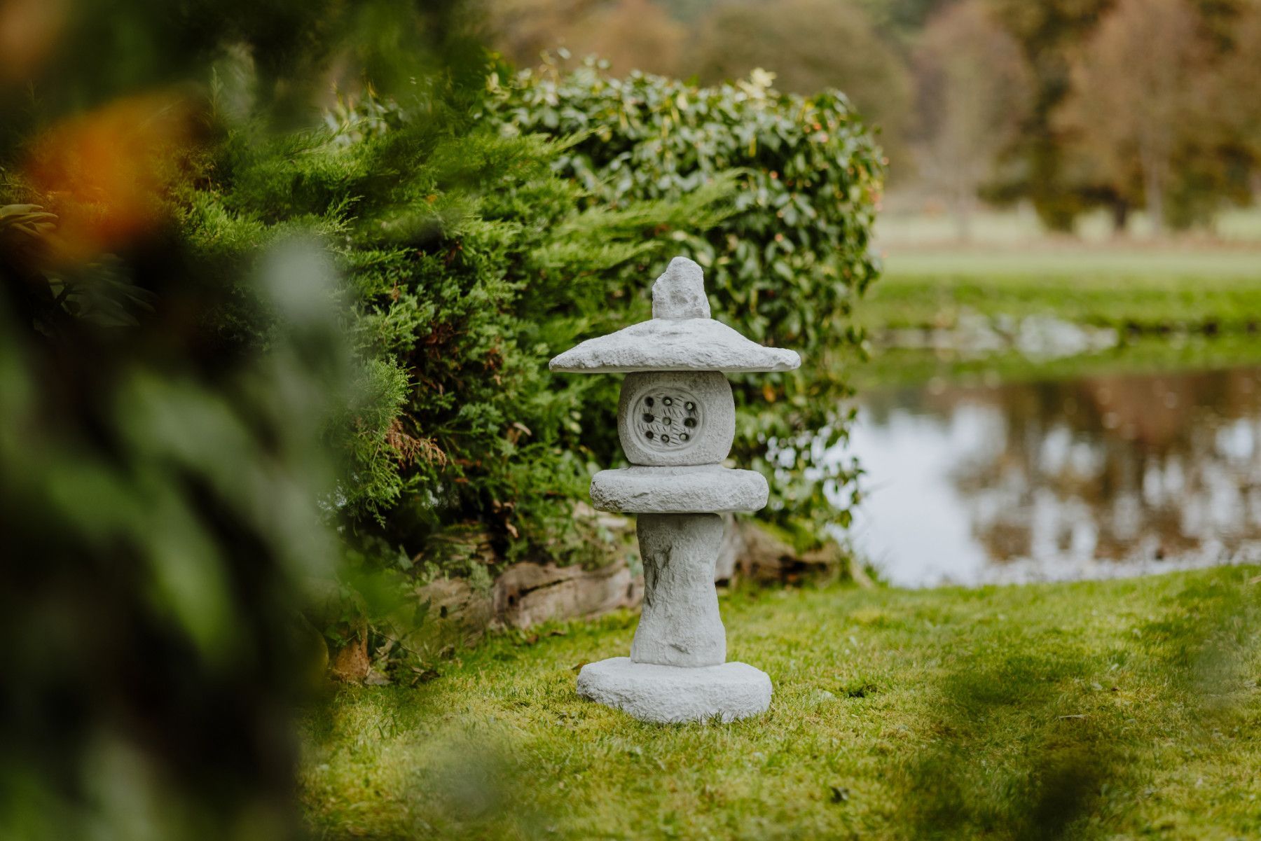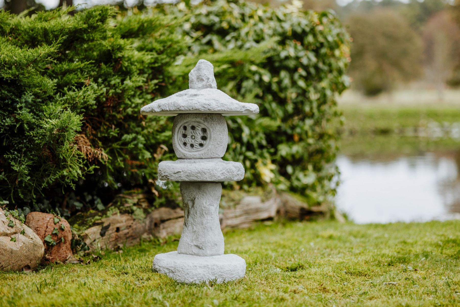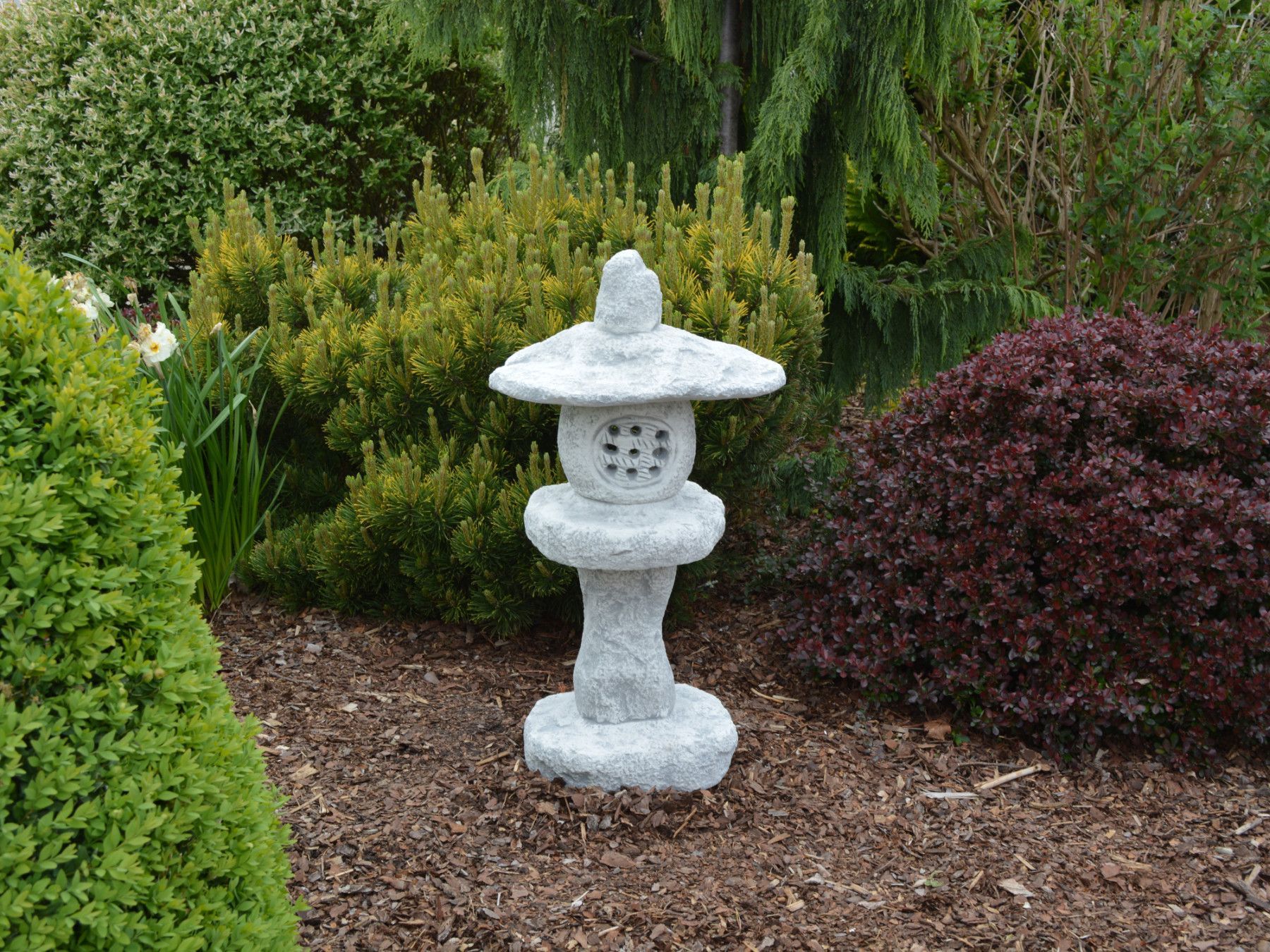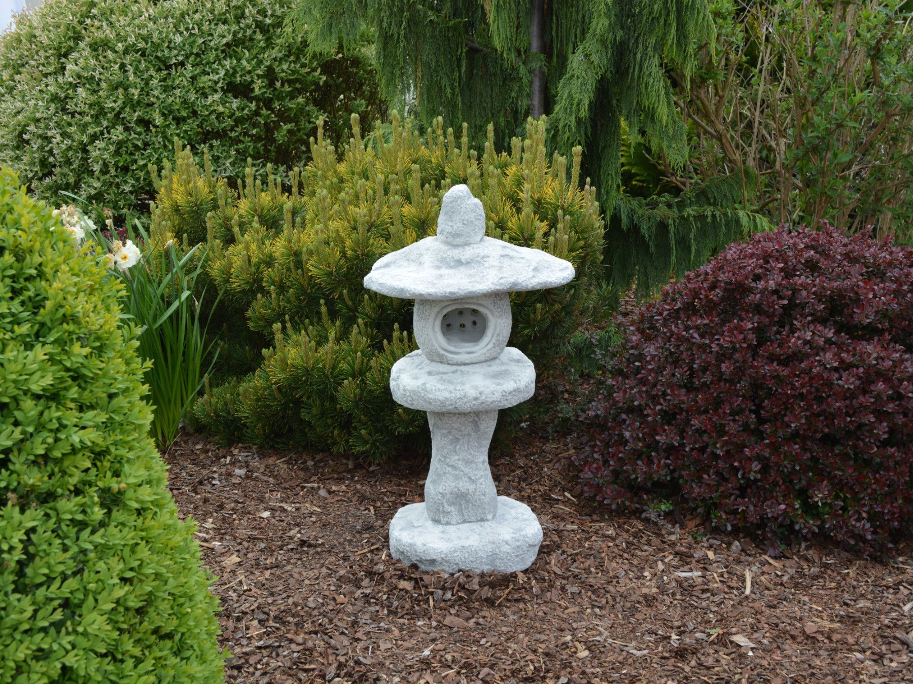 Massive japanische Steinlaterne Steinlampe Tachi-Gata aus Steinguss frostfest
