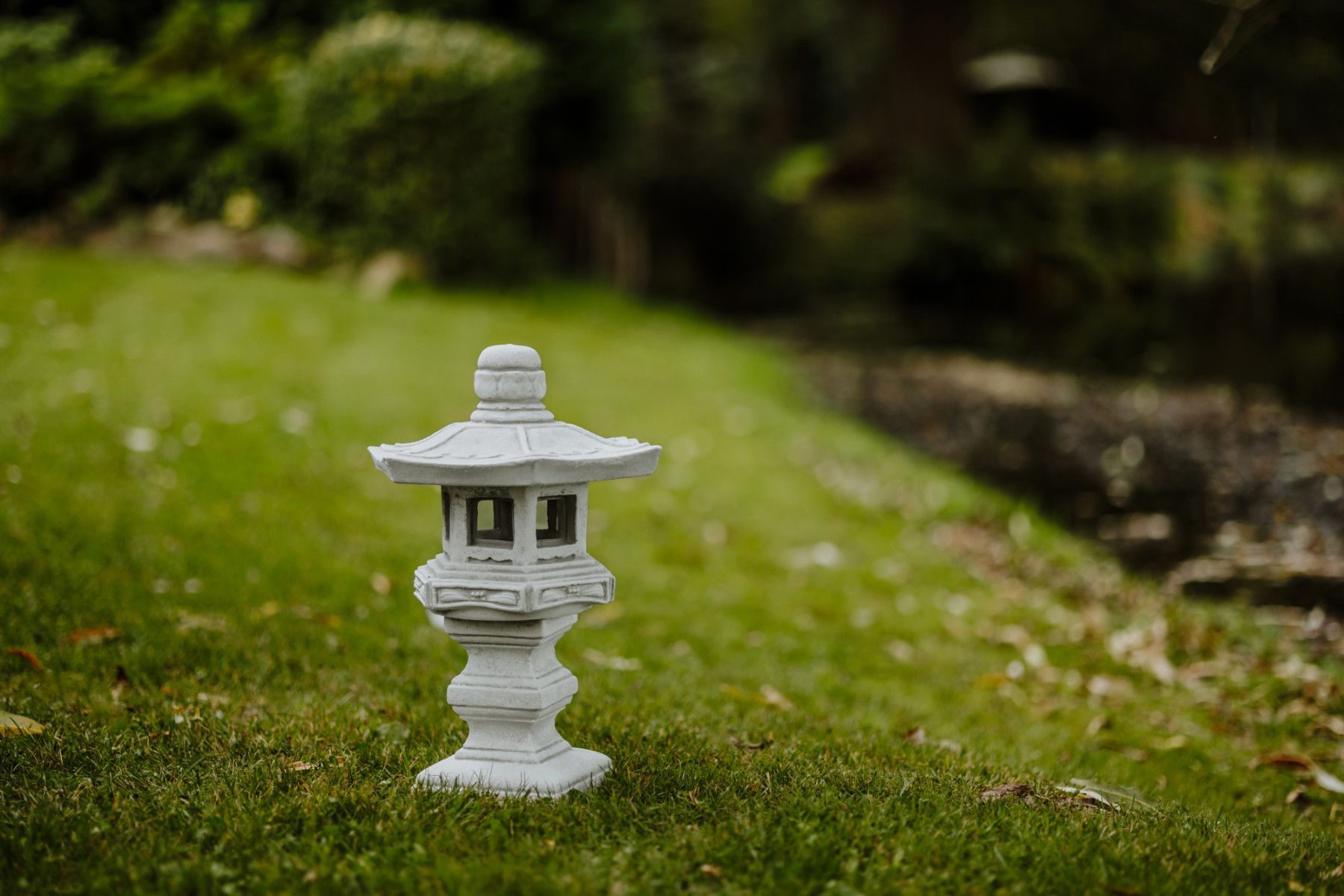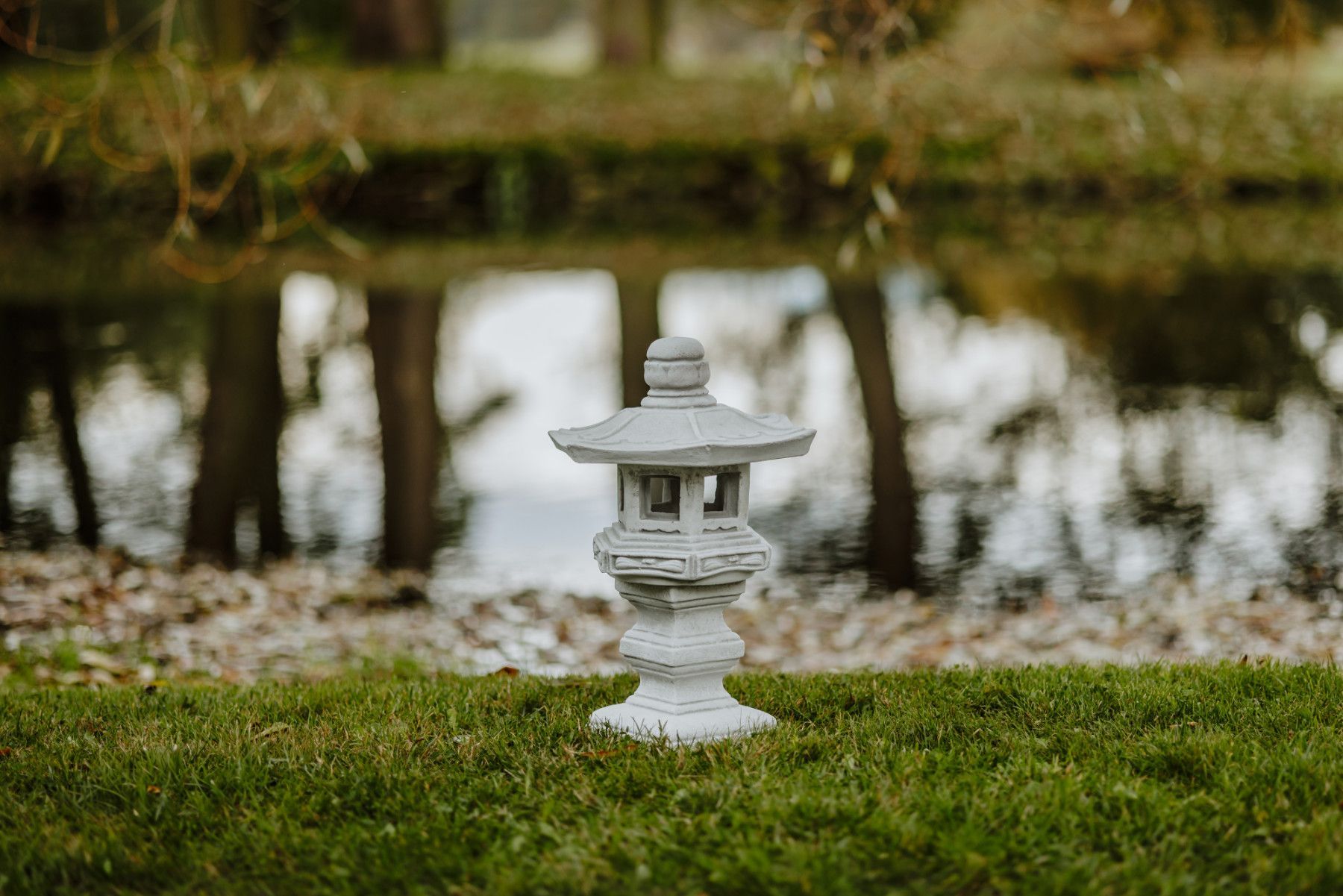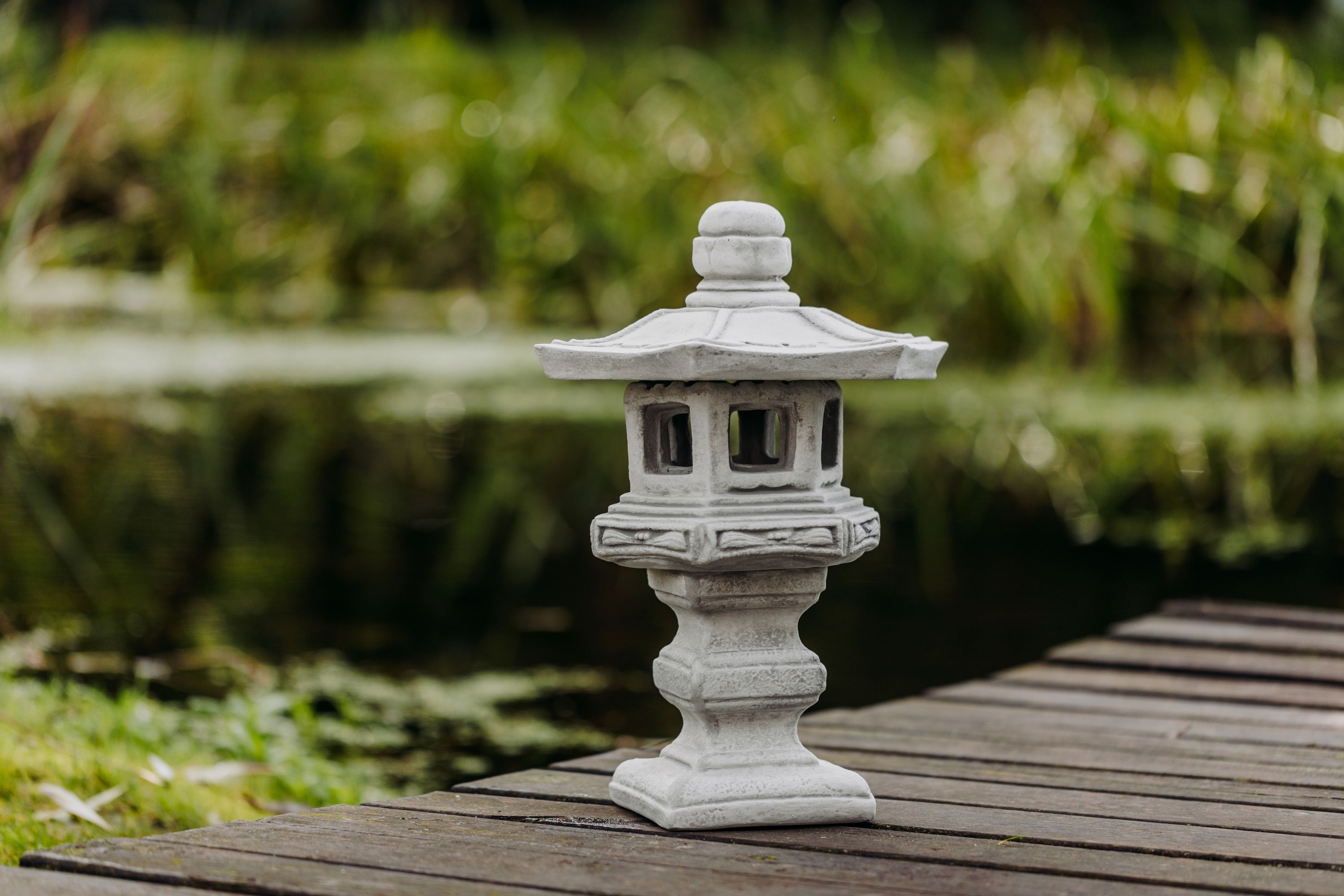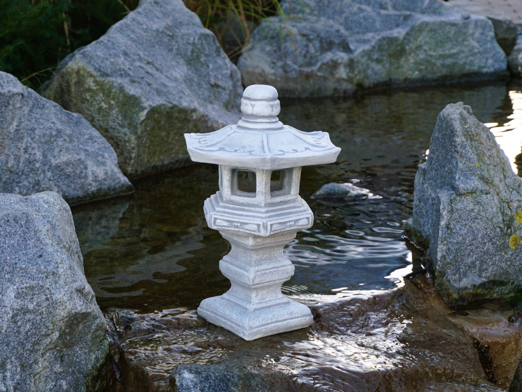 Massive japanische Steinlaterne Tachi-Gata Oki Gata Laterne Steinguss frostfest