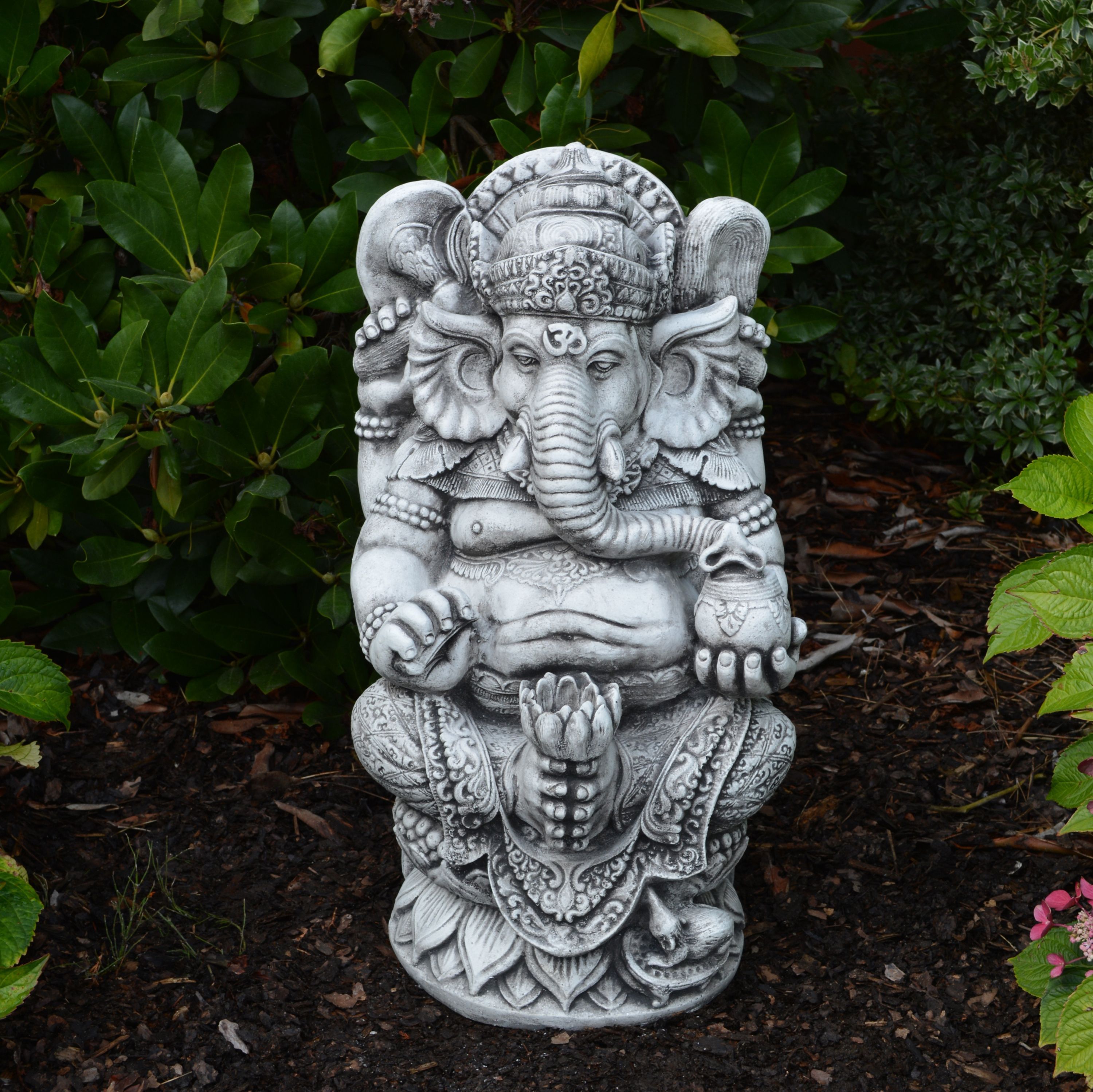 Massive Stein Statue Ganesha - der Göttliche Farbe schwarz Steinguss frostfest