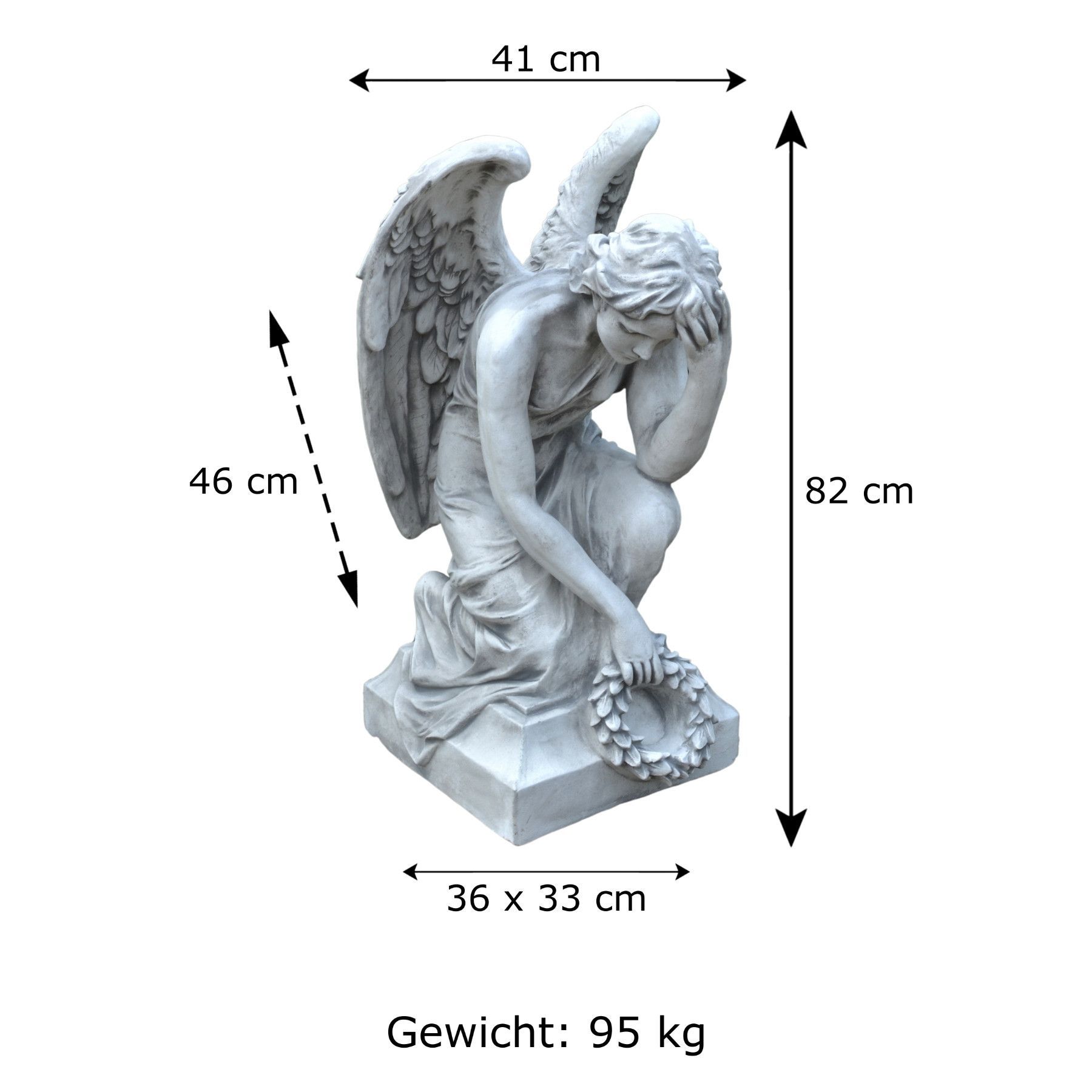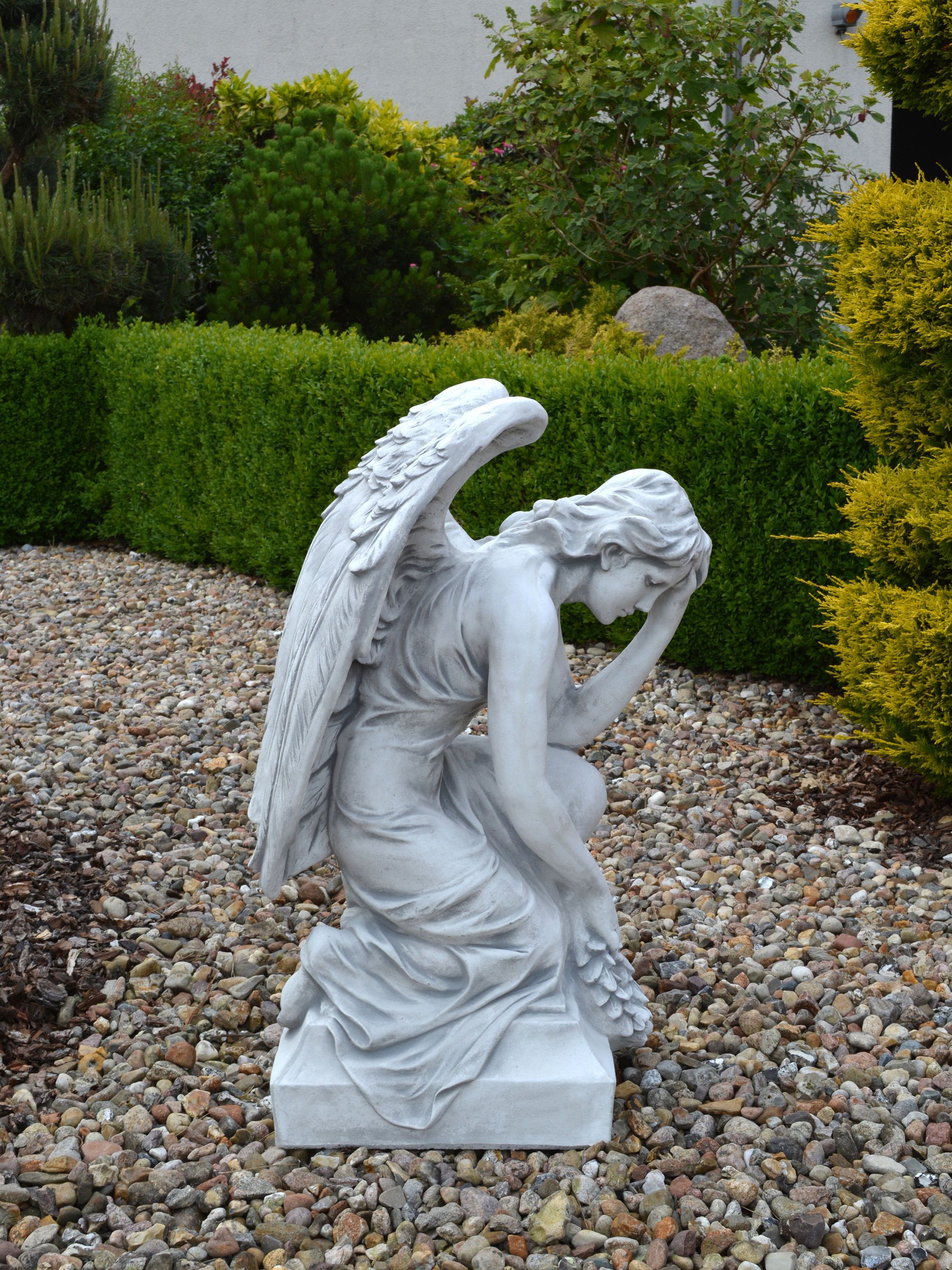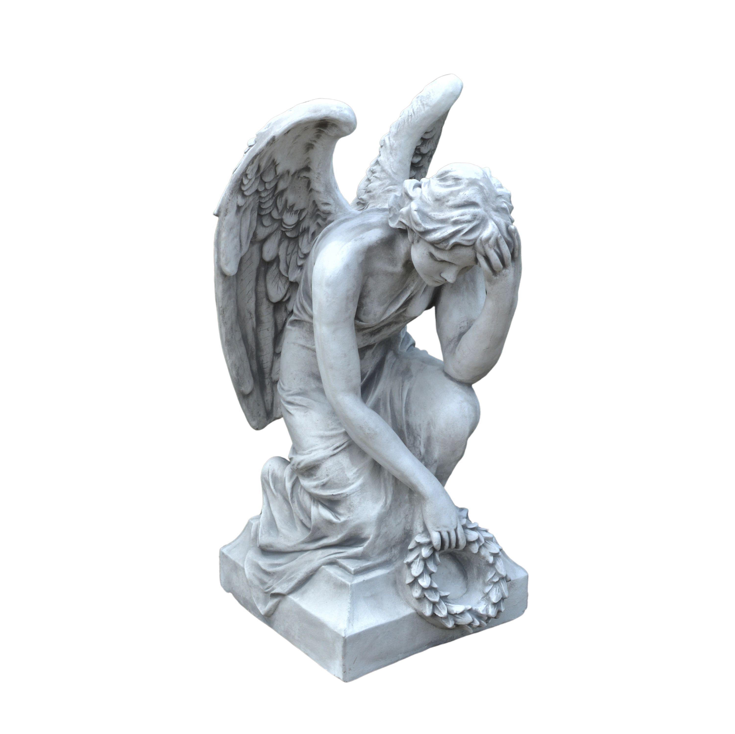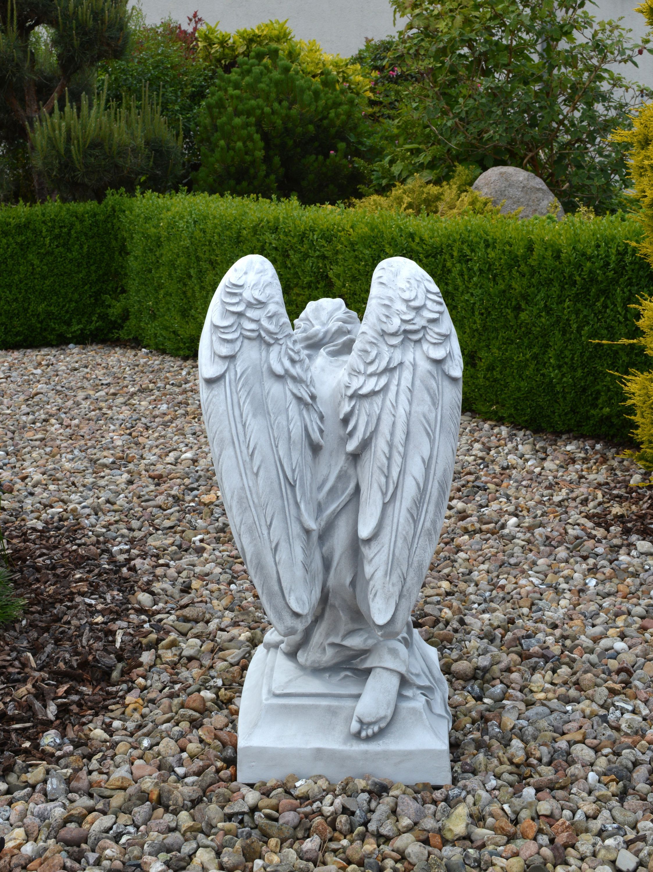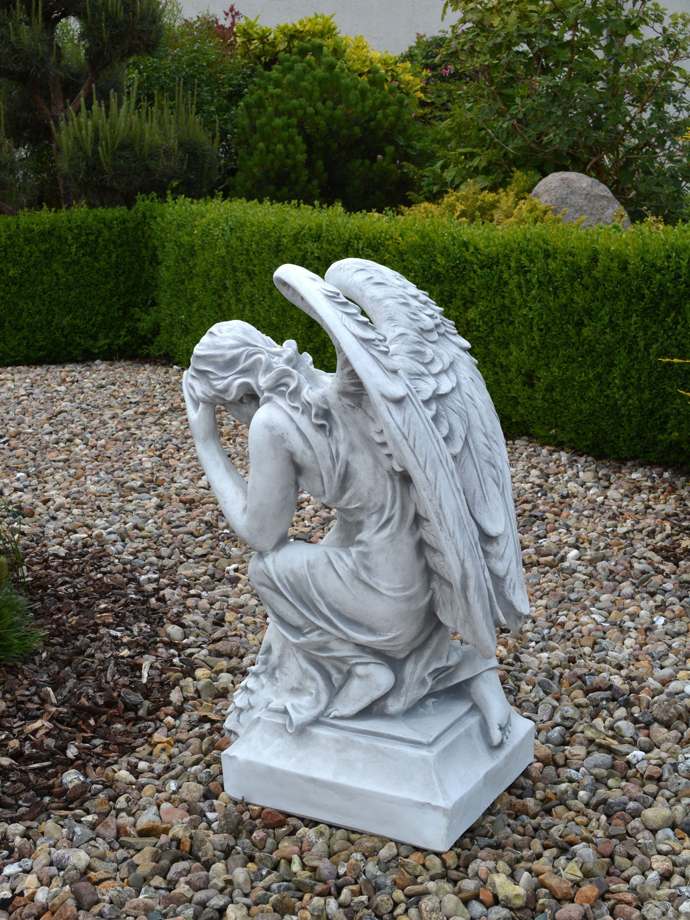Massive Steinfigur Engel Statue auf Sockel aus Steinguss frostfest Grab Garten