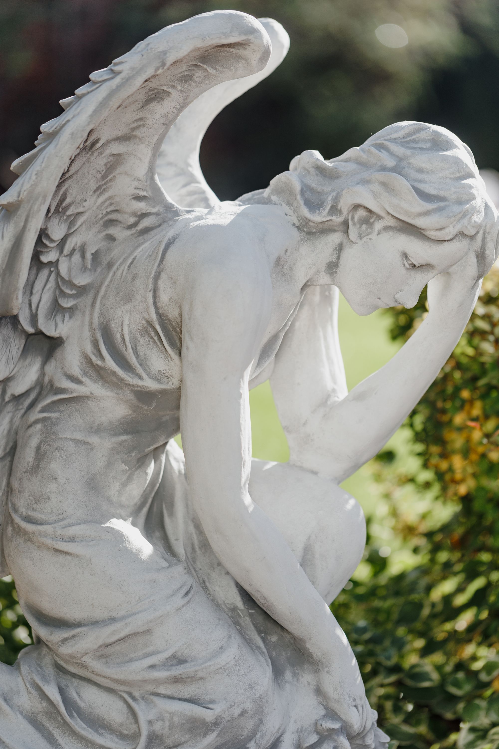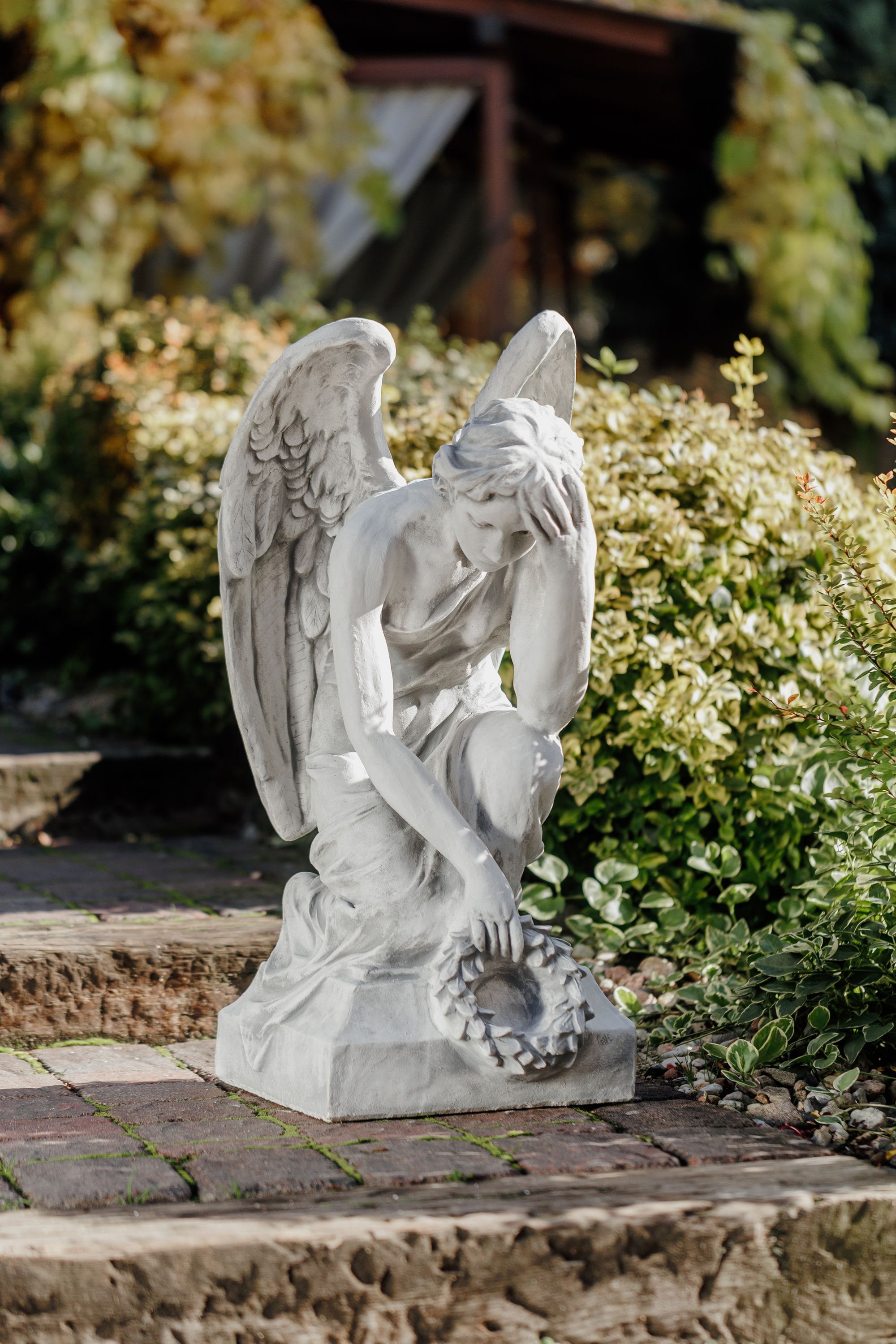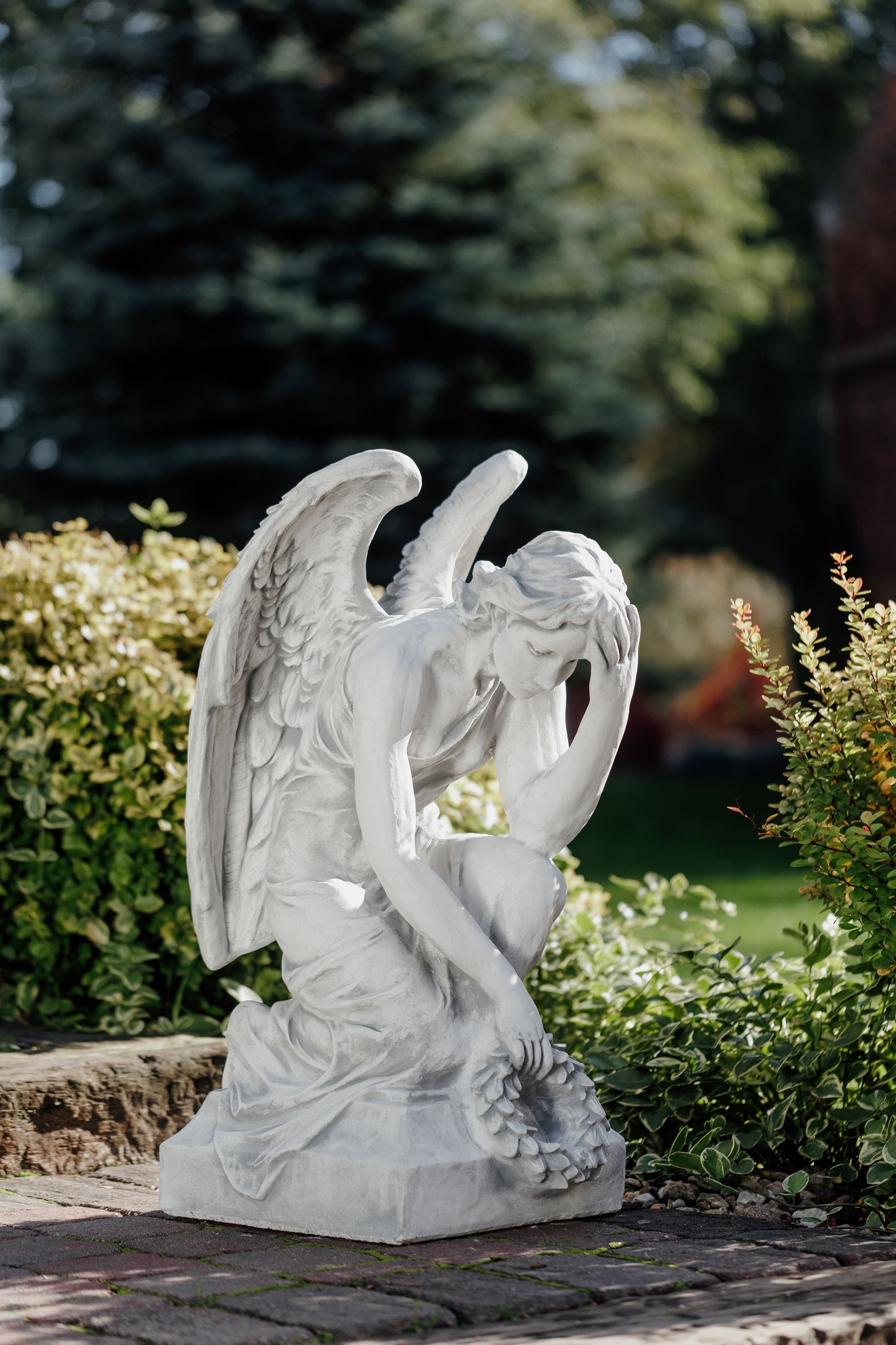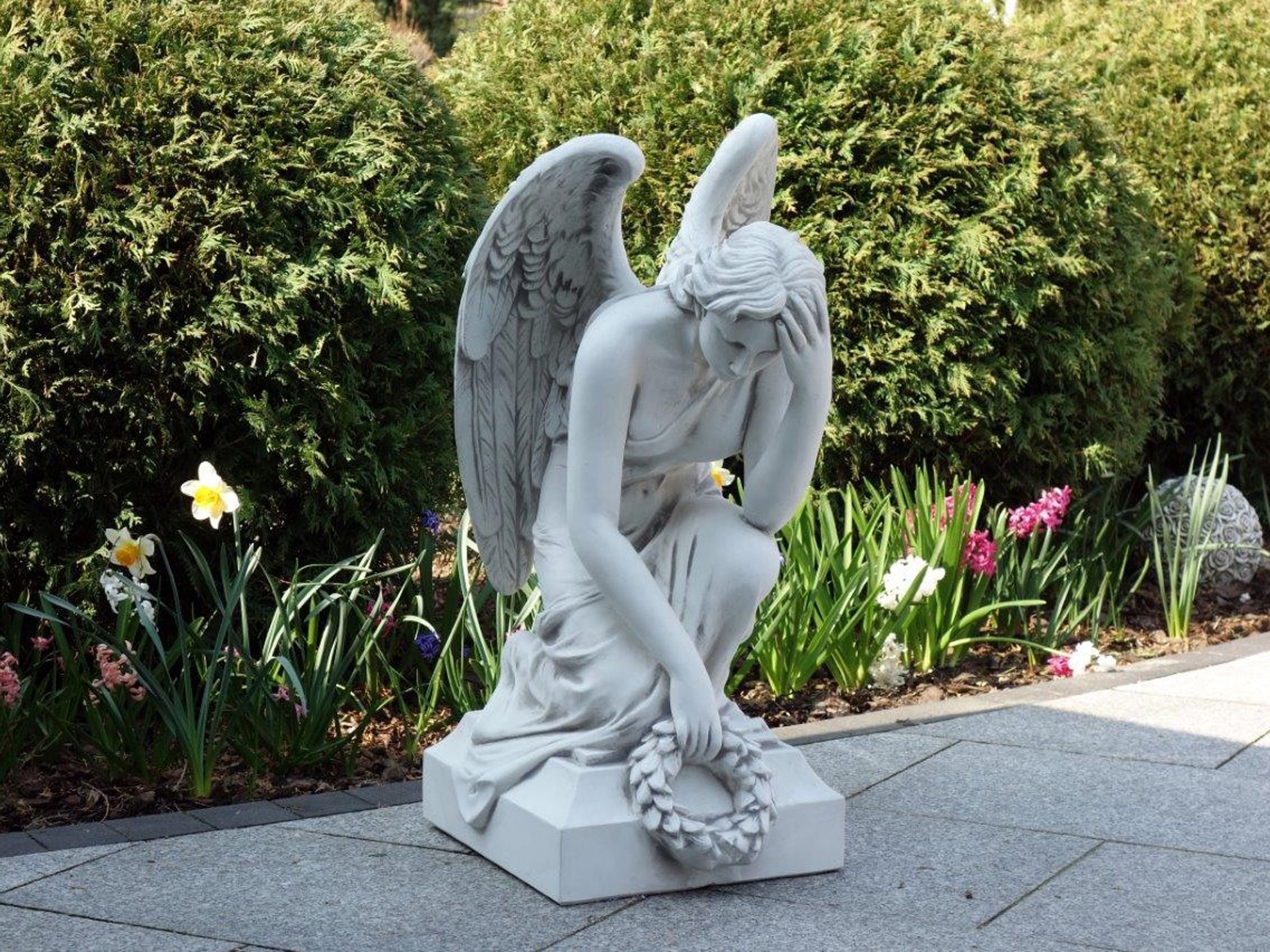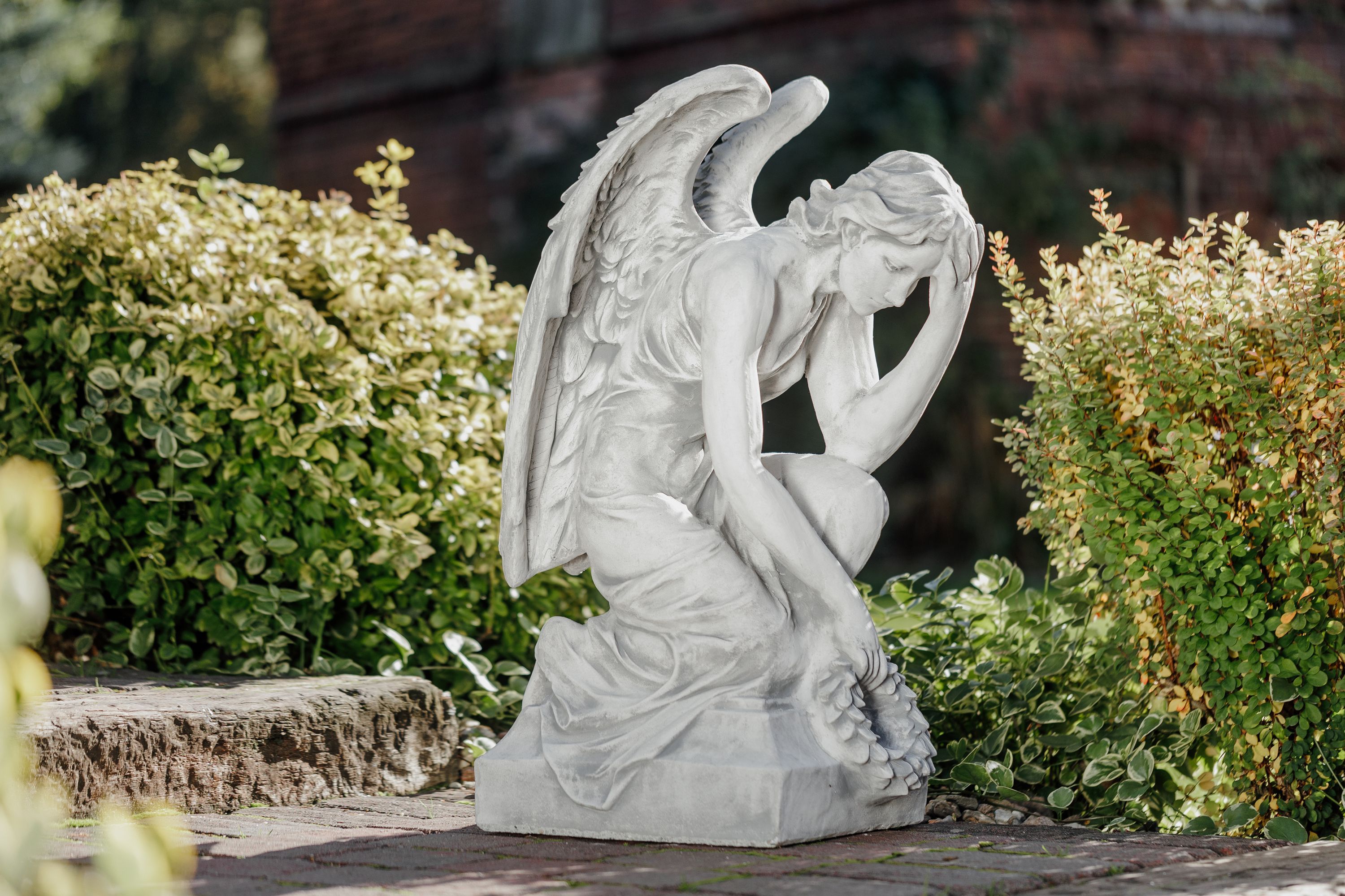 Massive Steinfigur Engel Statue auf Sockel aus Steinguss frostfest Grab Garten