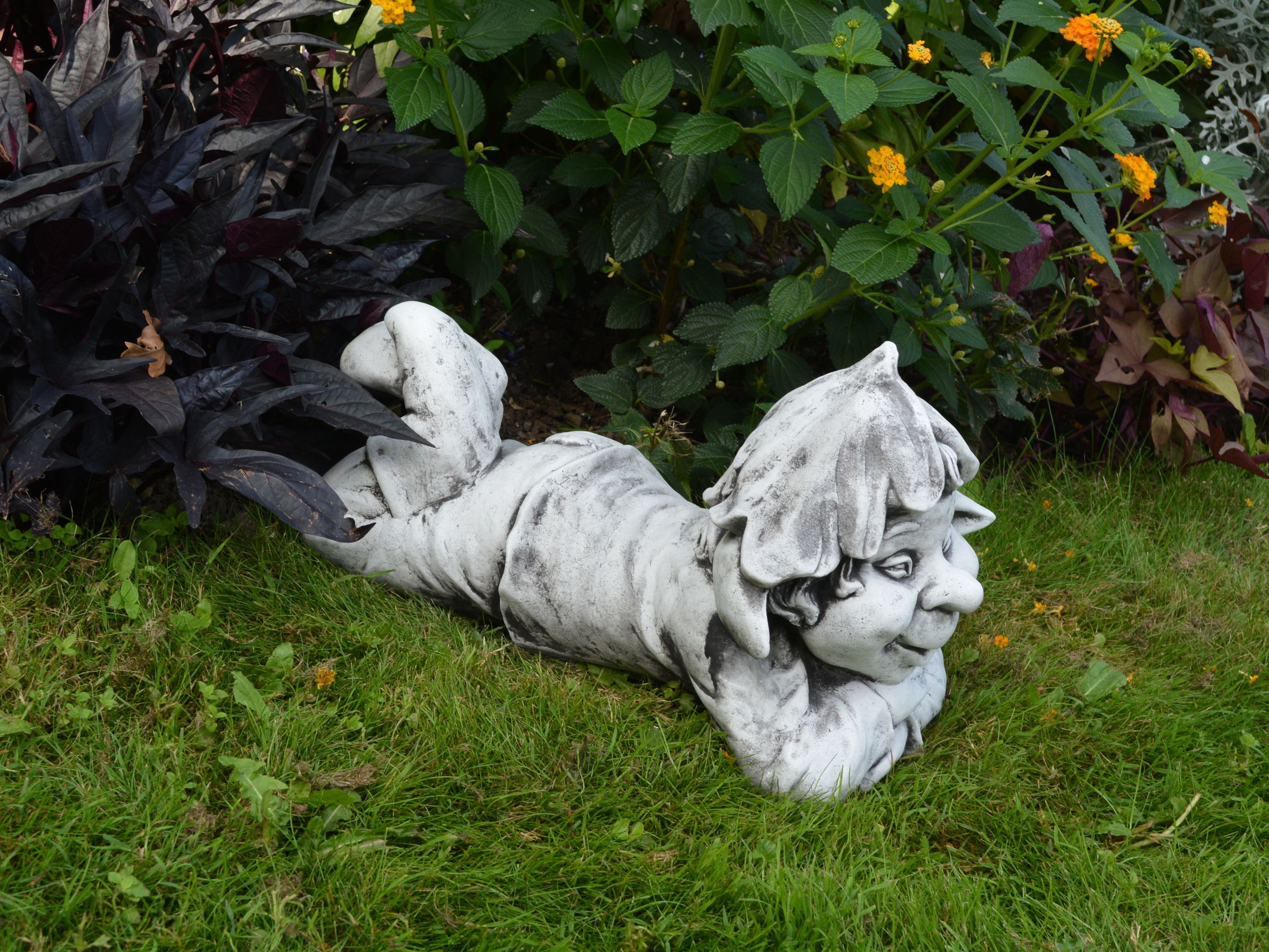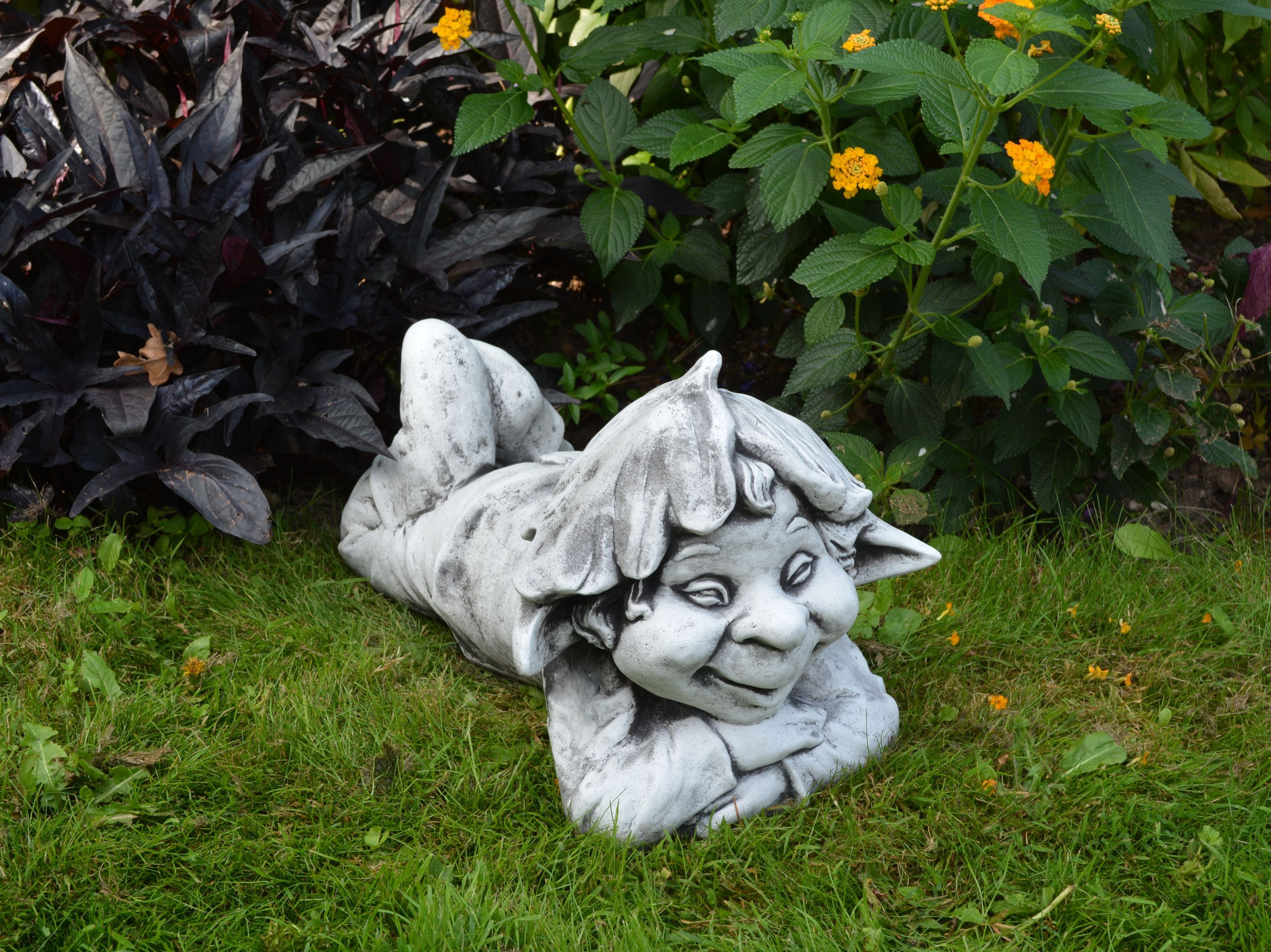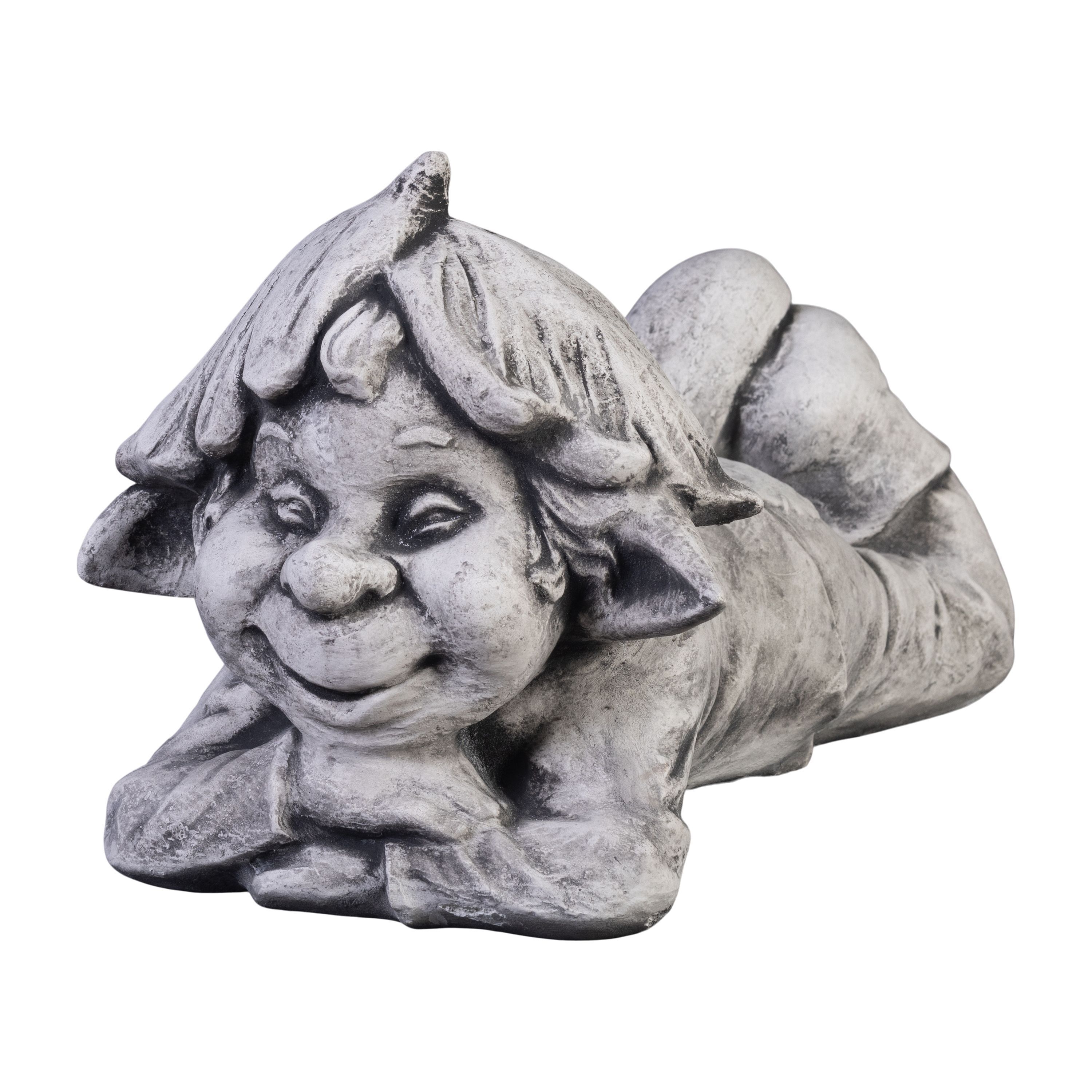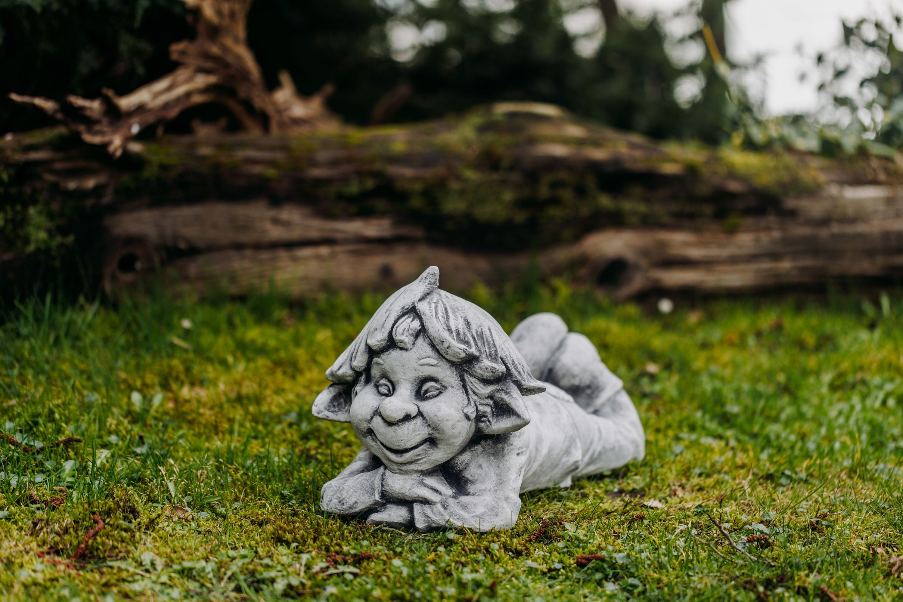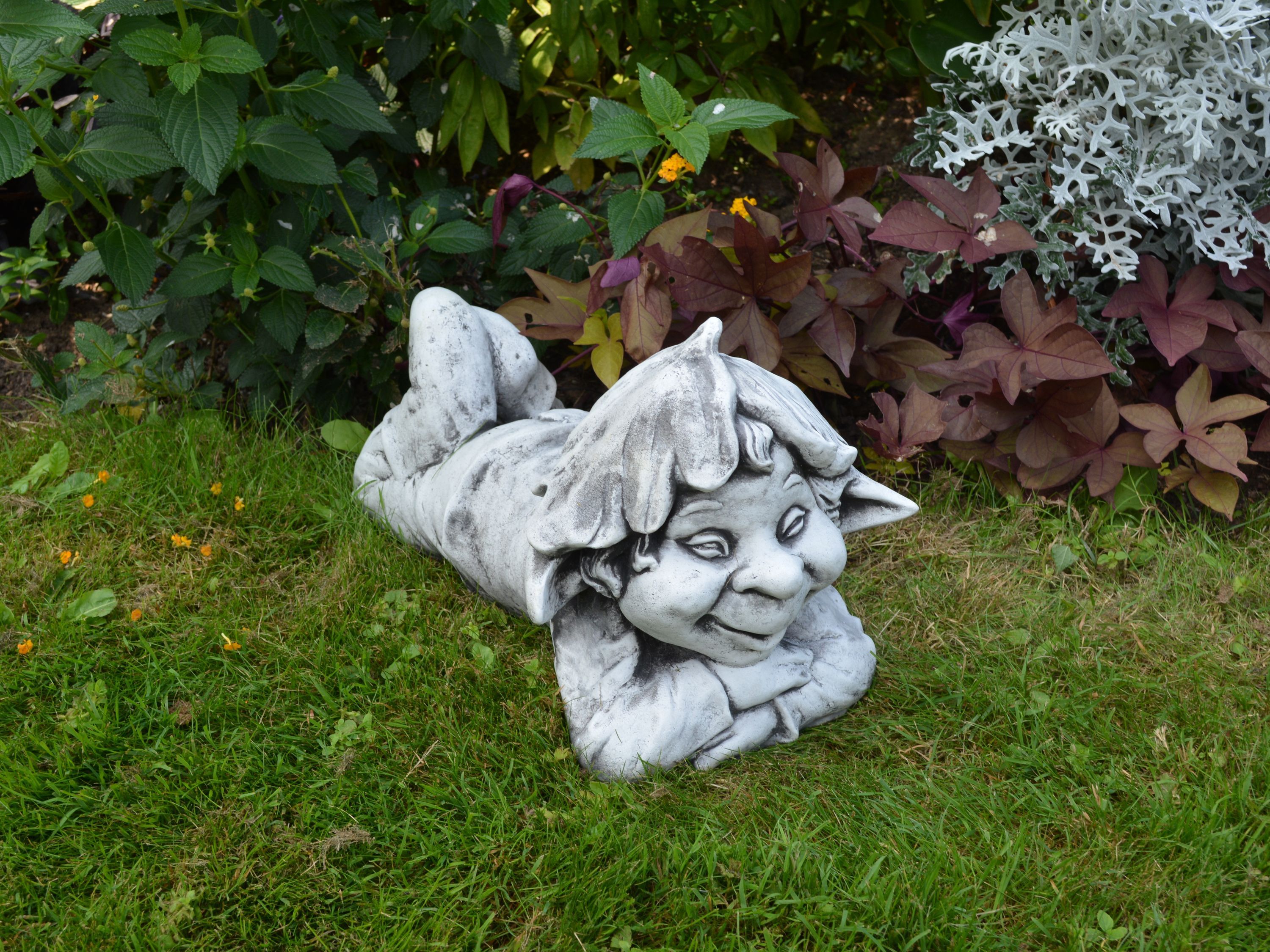Massive Steinfigur Gnom "Faulpelz" Troll Wichtel Kobold aus Steinguss frostfest