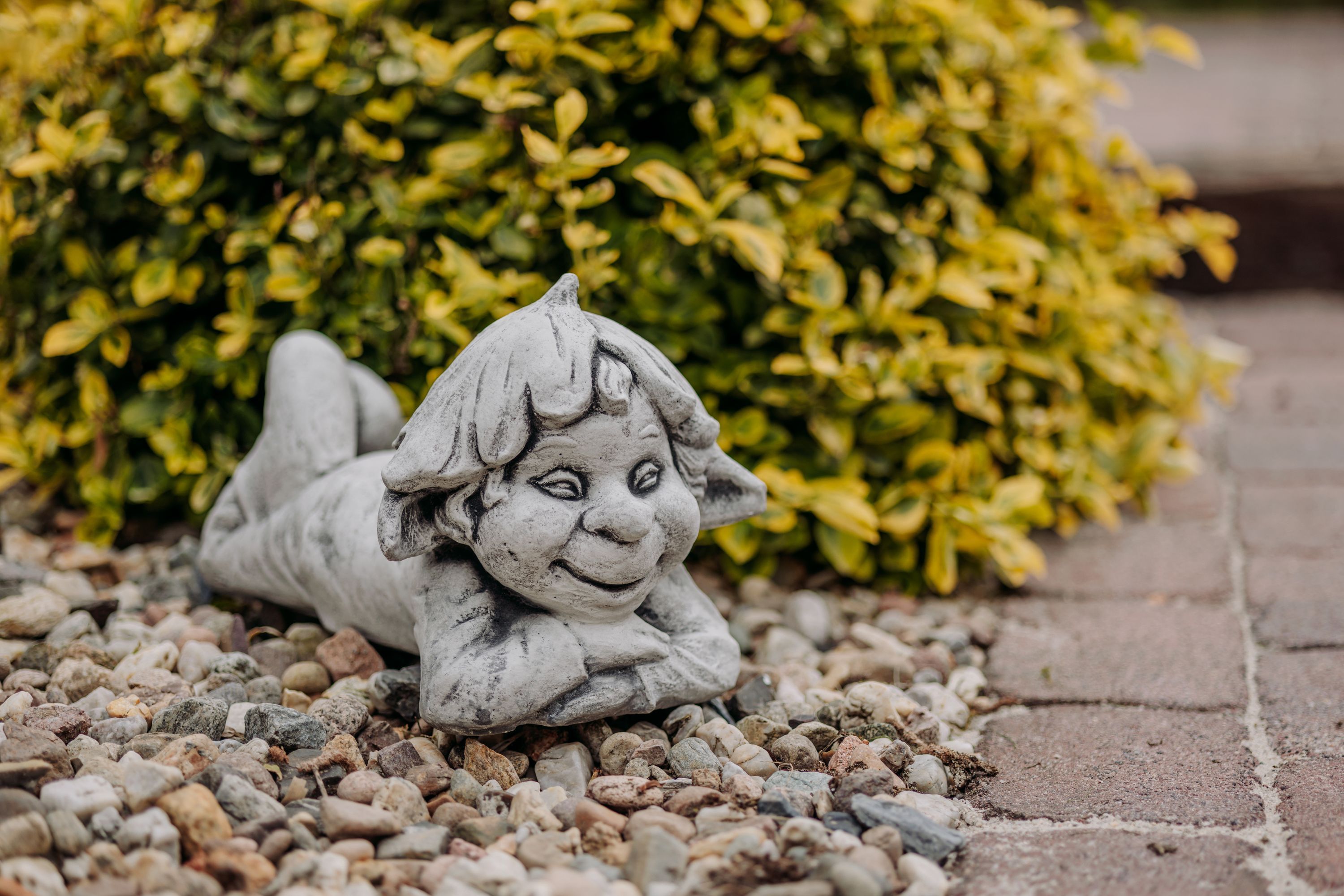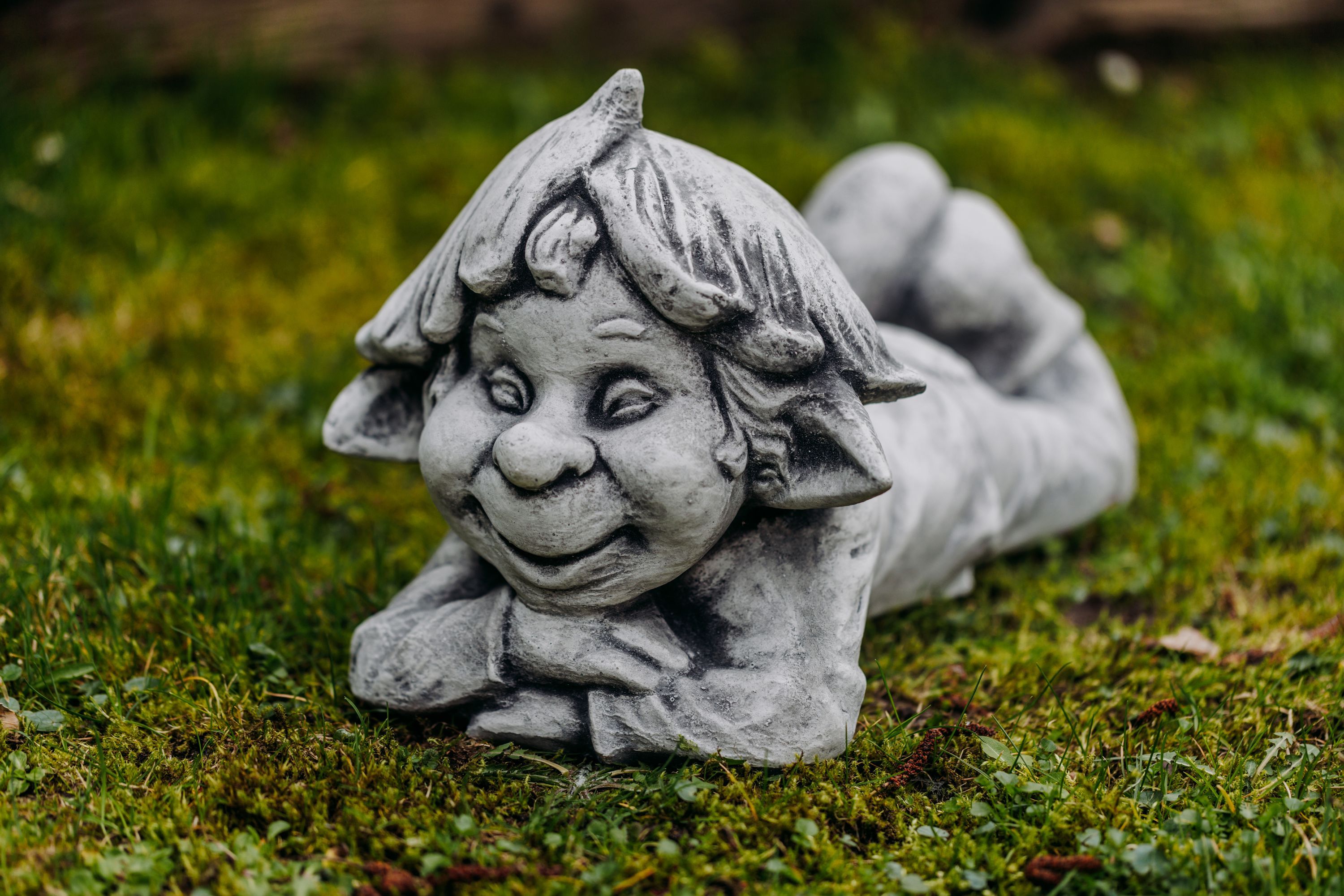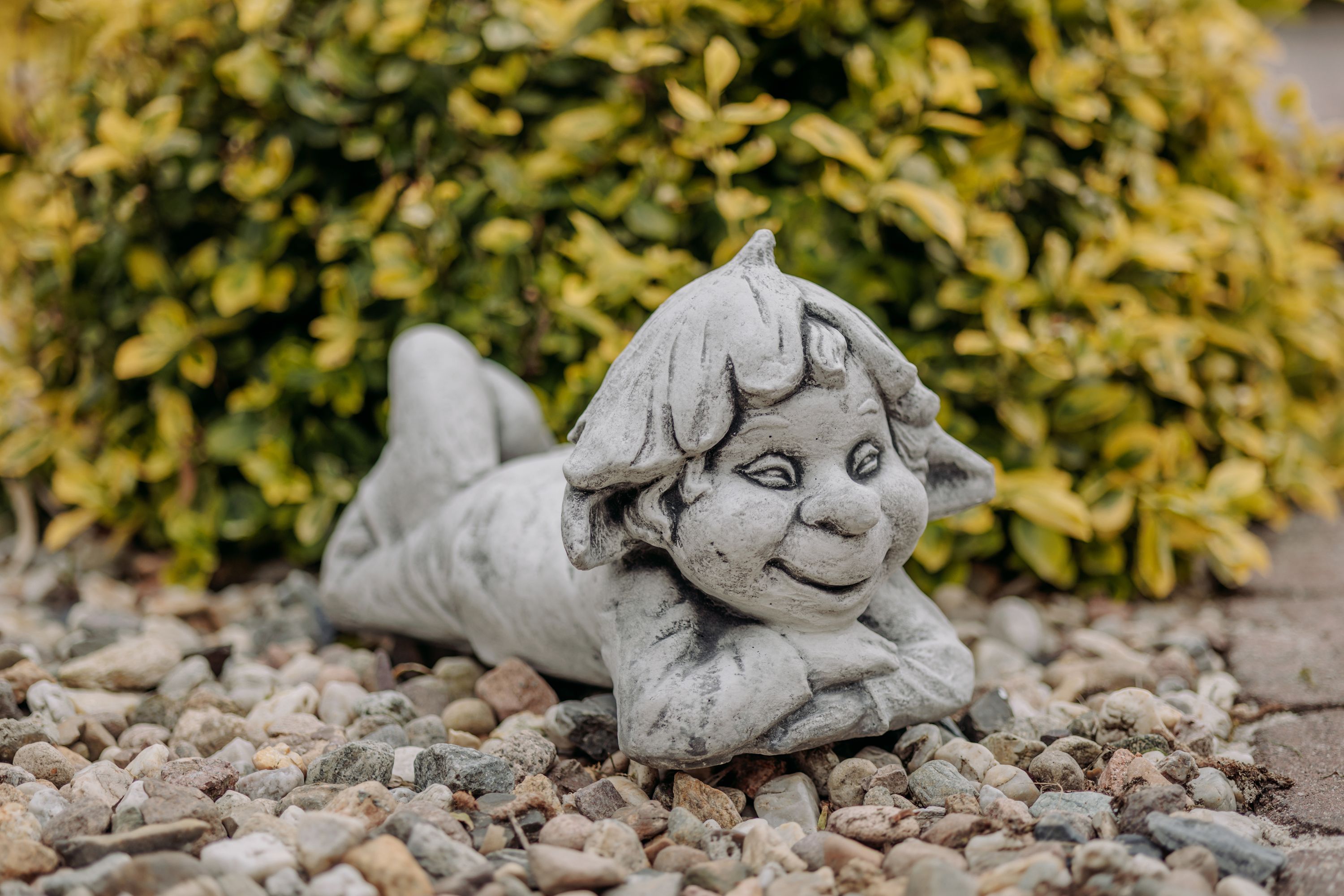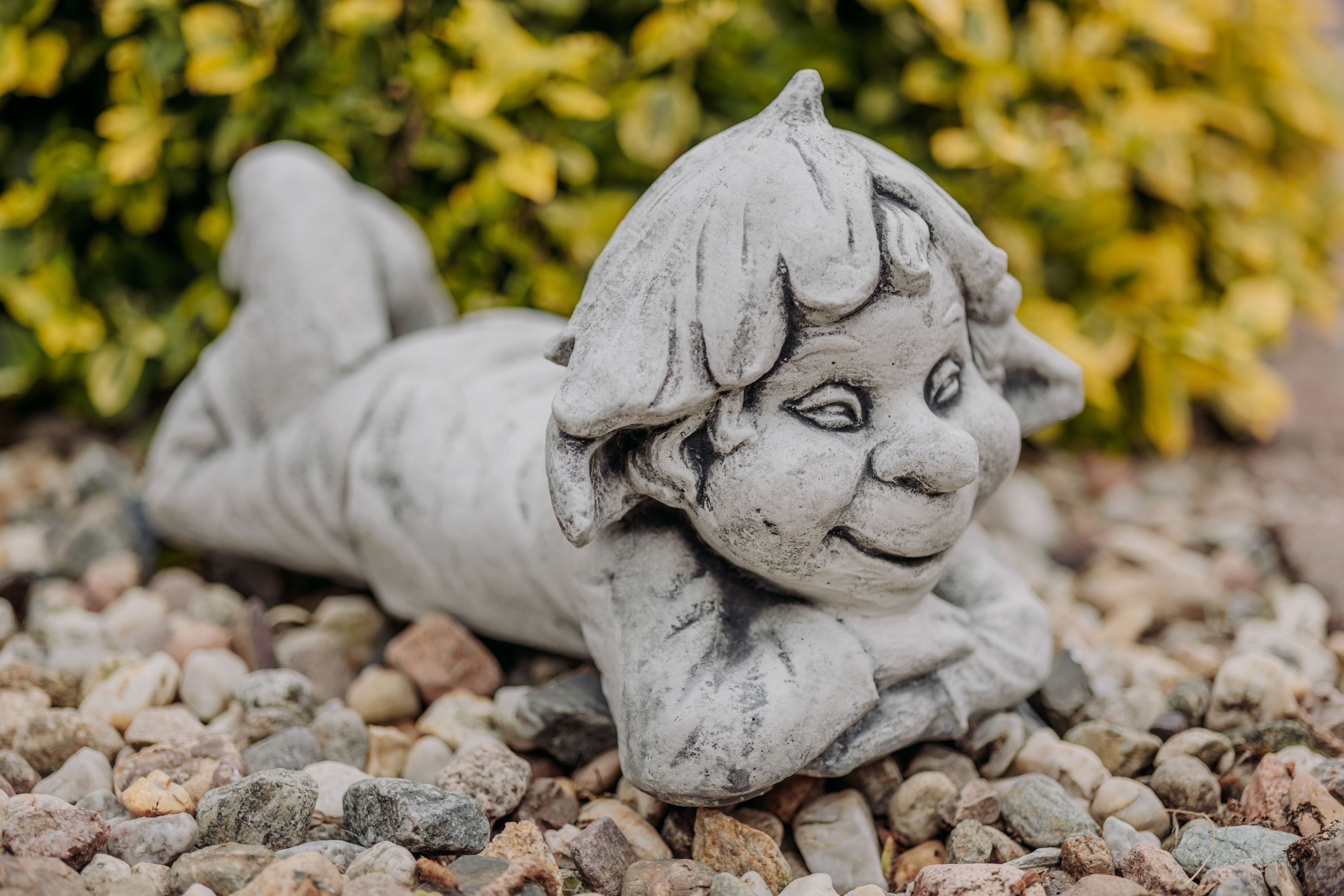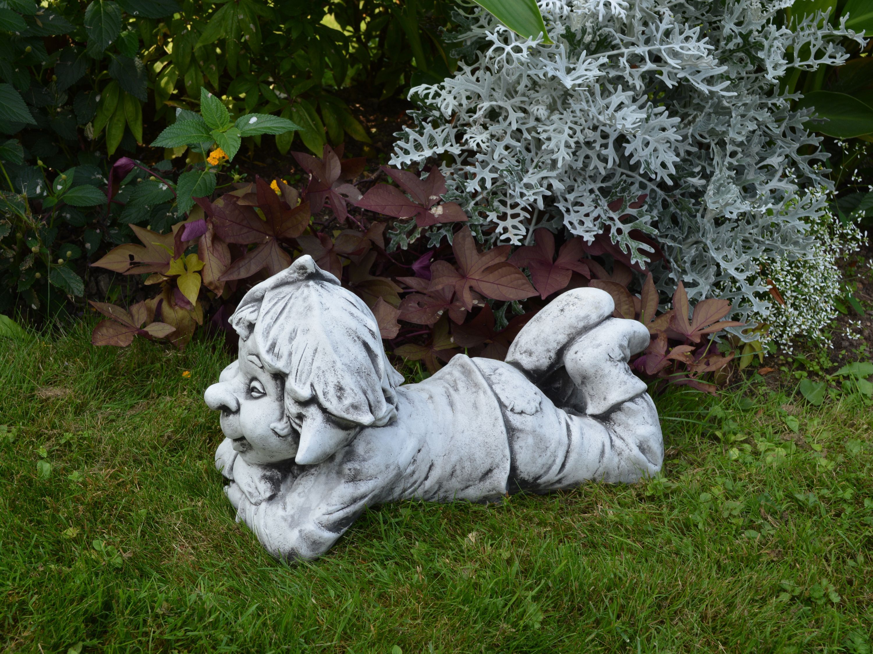 Massive Steinfigur Gnom "Faulpelz" Troll Wichtel Kobold aus Steinguss frostfest
