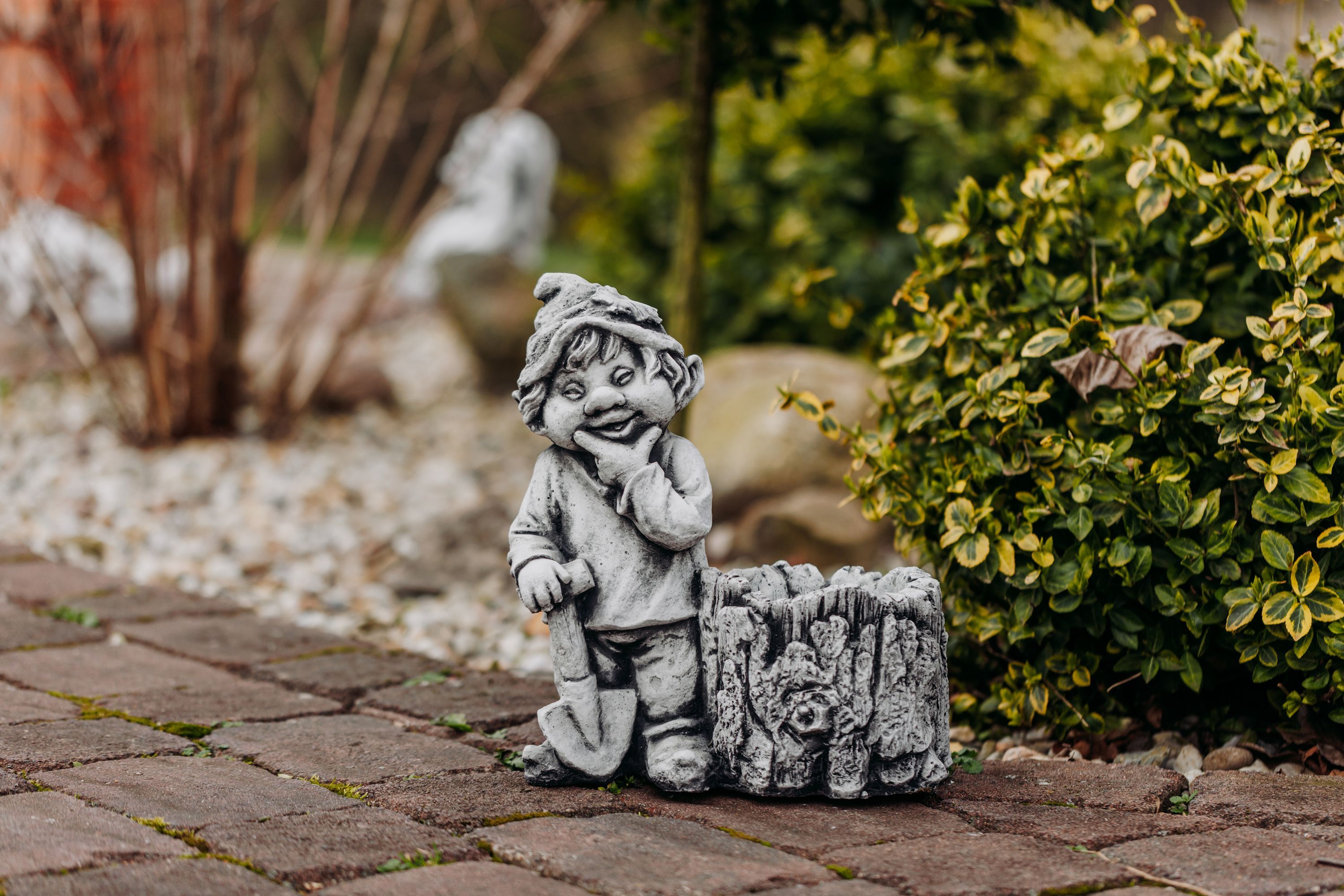 Massive Steinfigur Gnom "Ich mag den Wald" Troll Wichtel aus Steinguss frostfest