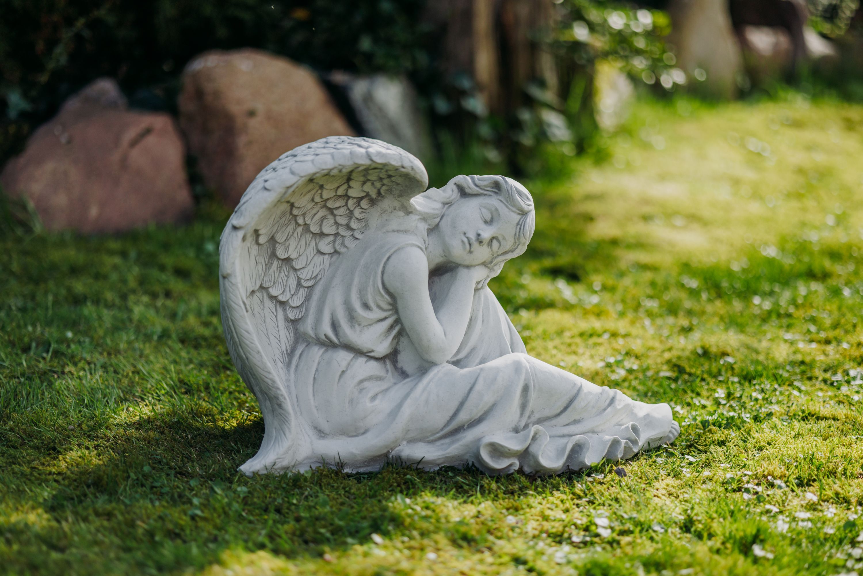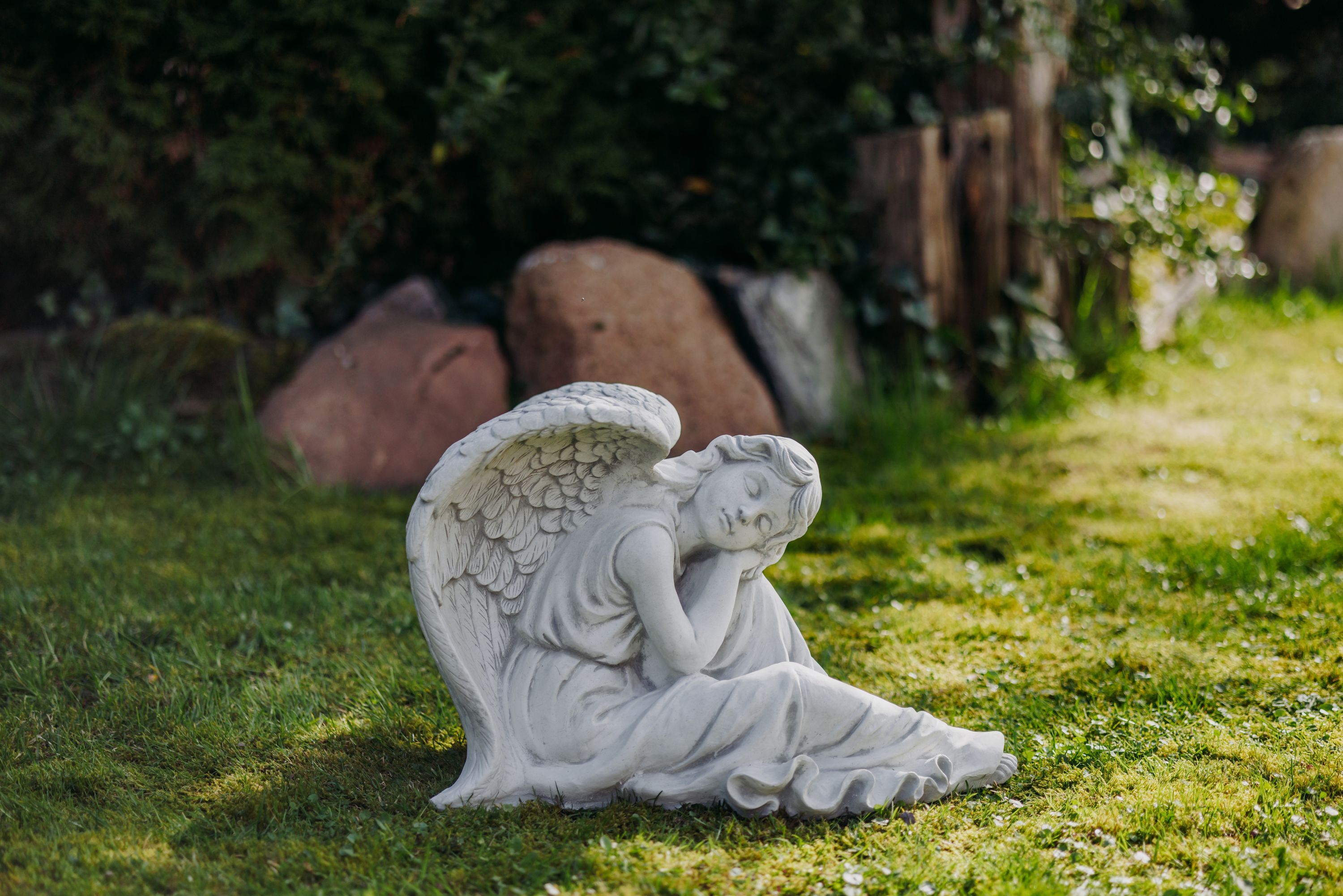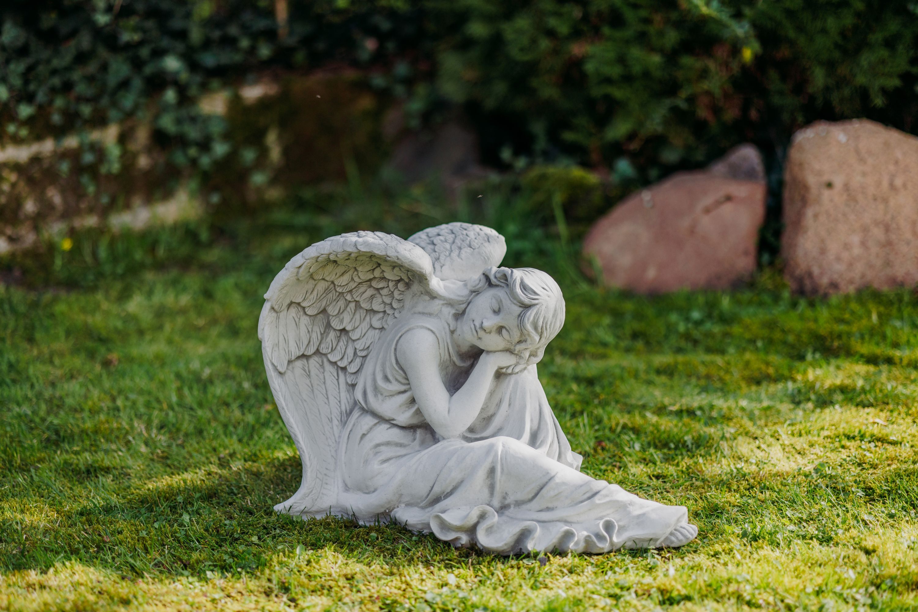 Massive Steinfigur groß Engel Statue aus Steinguss frostsicher Grabschmuck