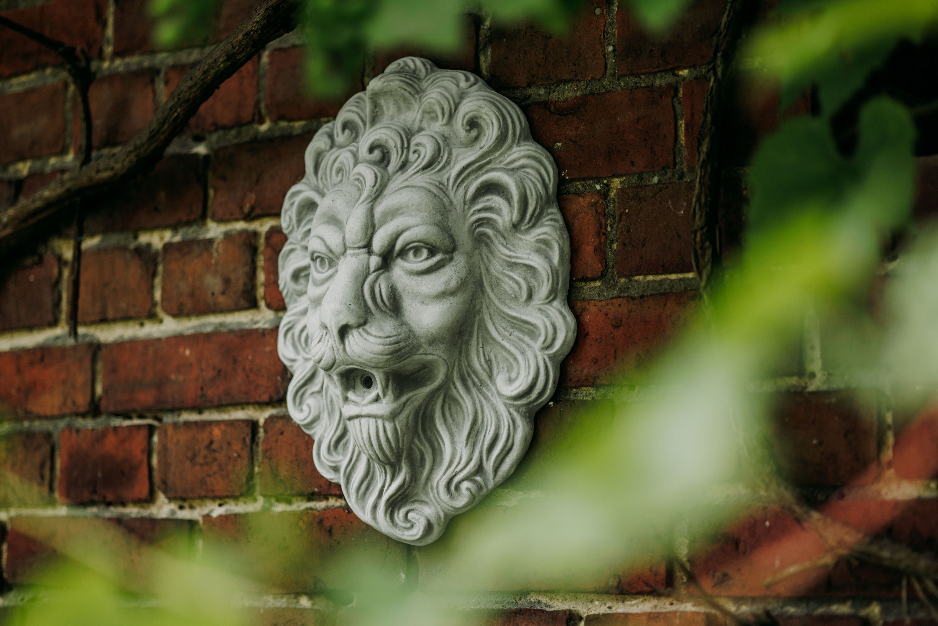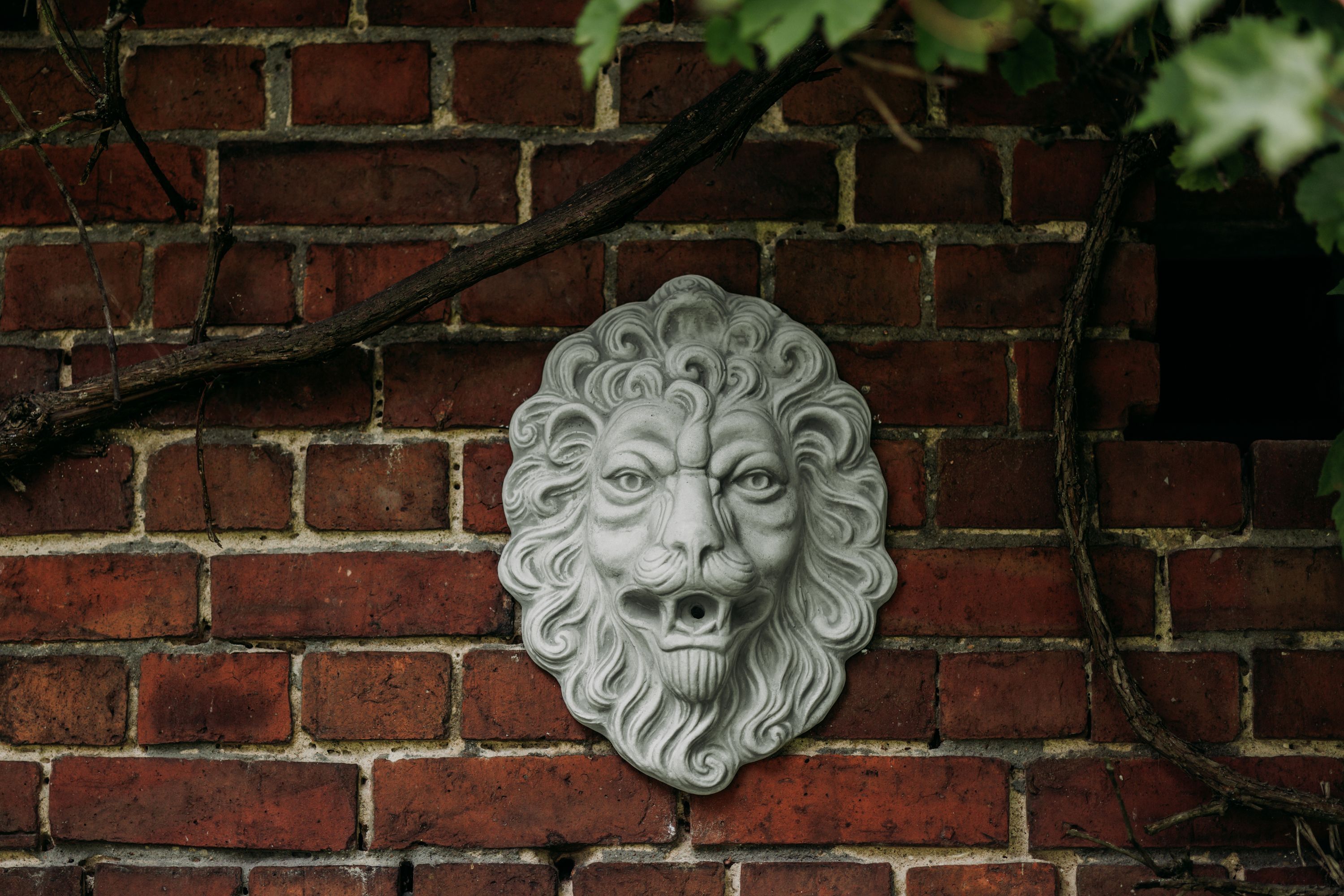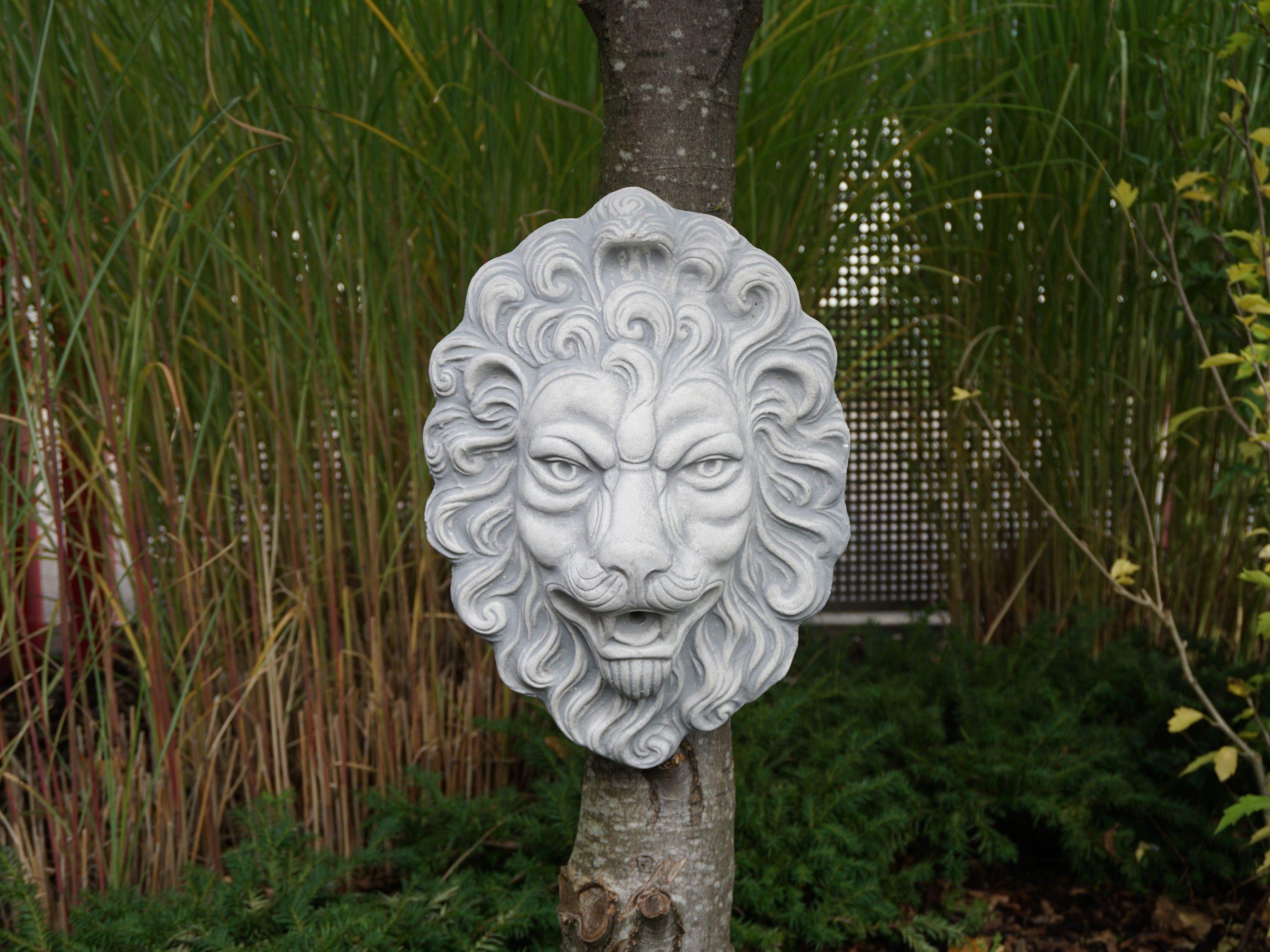 Massive Steinfigur große Wanddeko Löwenkopf Löwen Raumdeko Steinguss frostfest