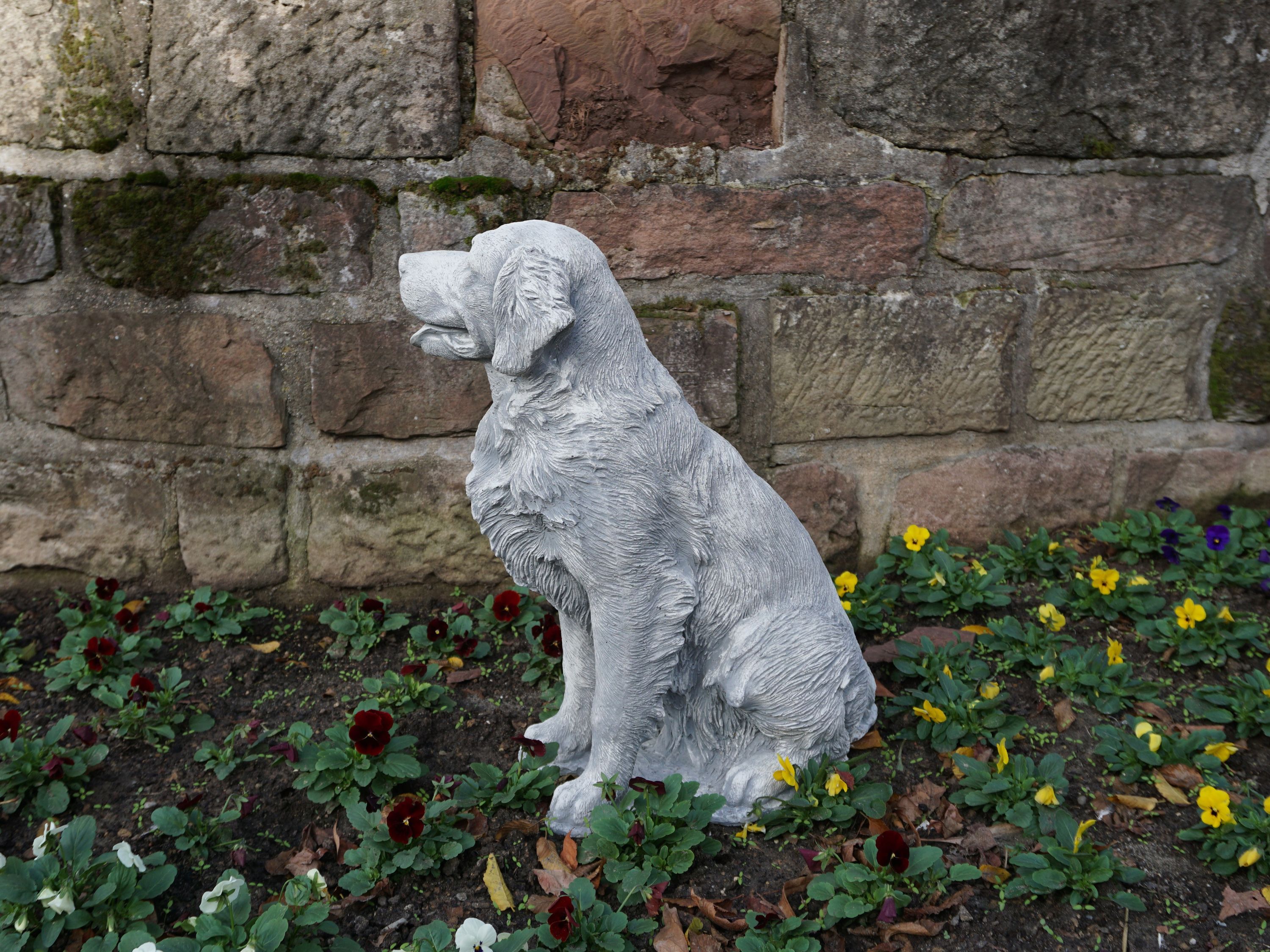 Massive Steinfigur Hund Statue Golden Retriever 53 cm aus Steinguss frostsicher