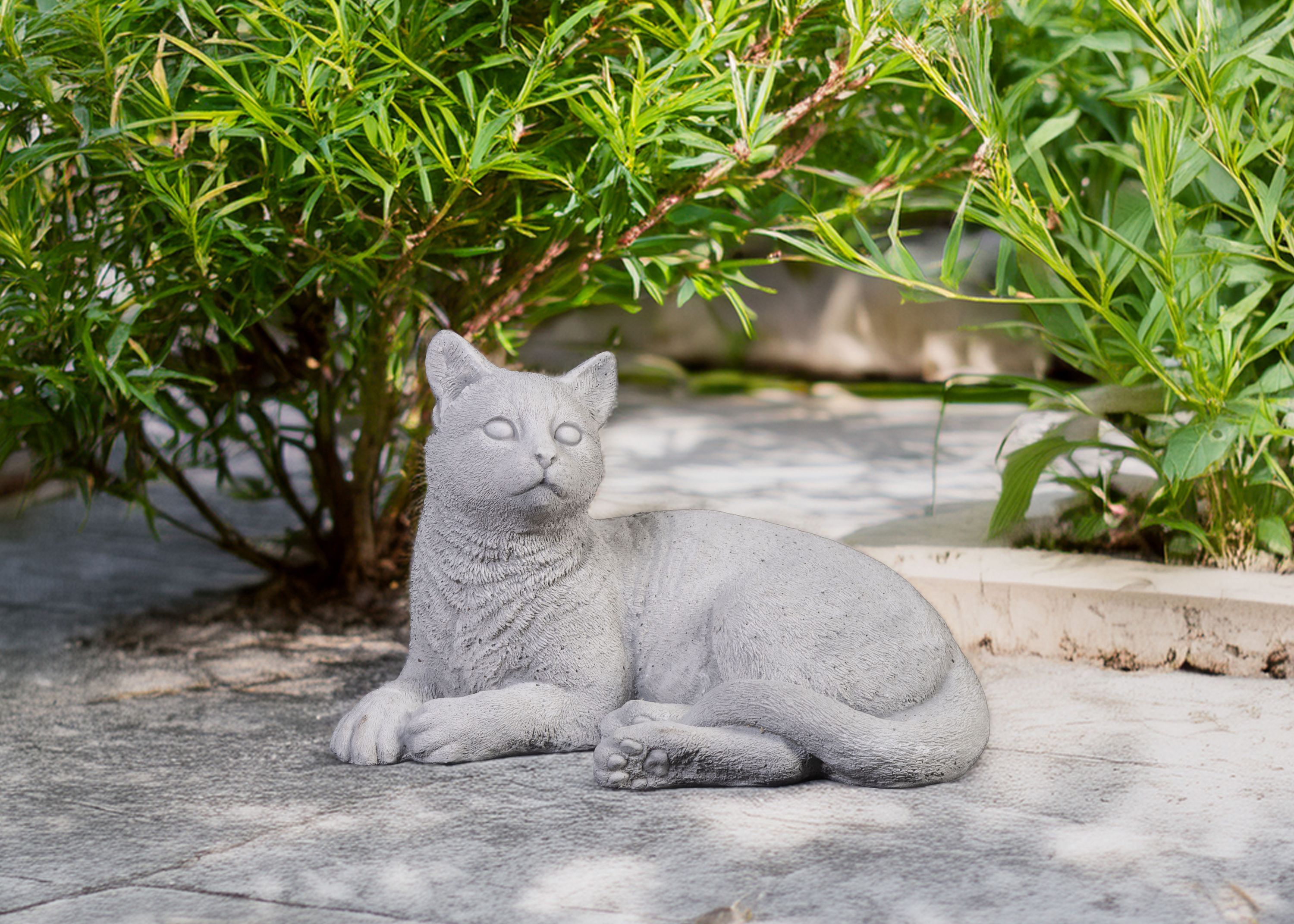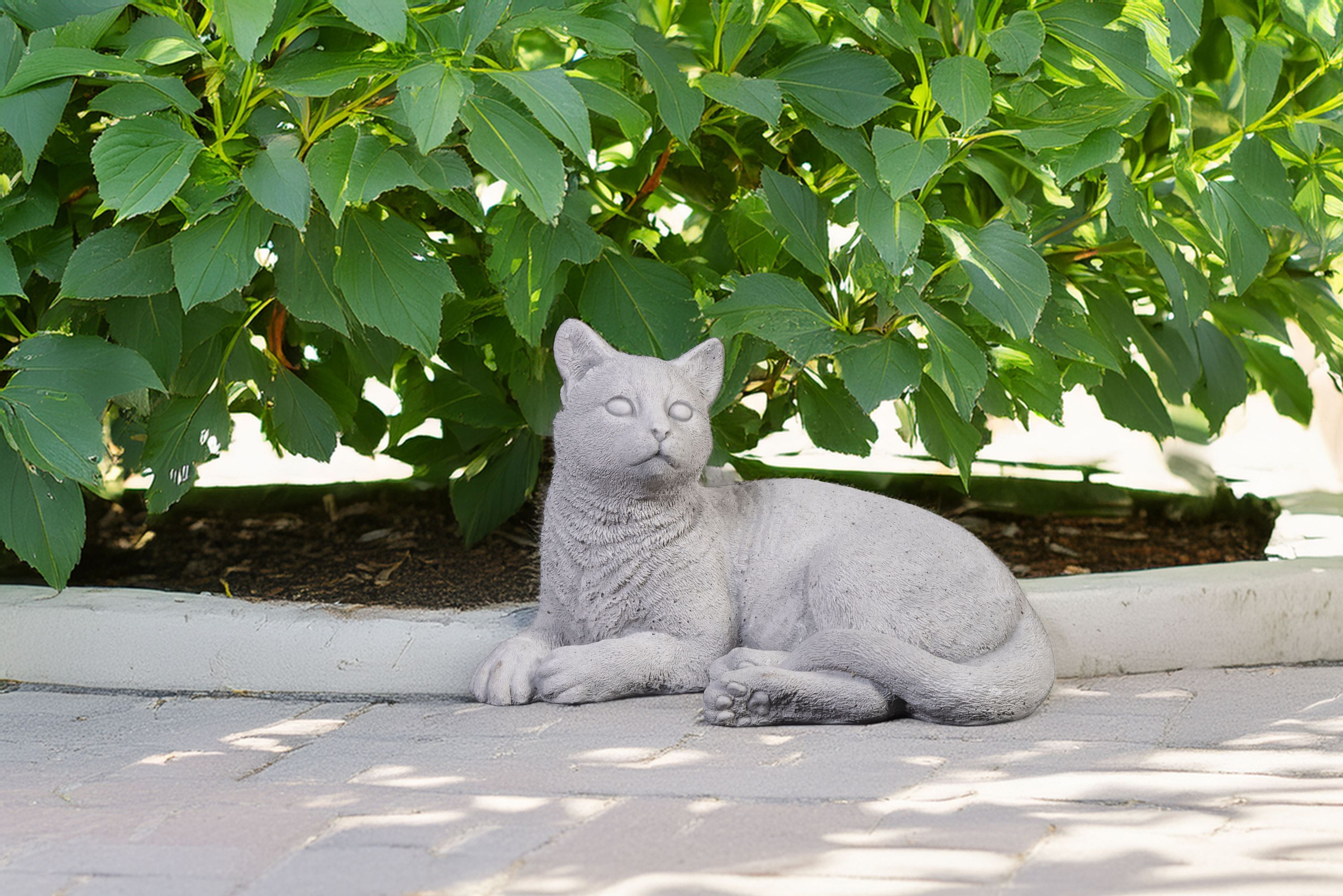 Massive Steinfigur Katze liegend Kater Kätzchen Tierfigur Steinguss frostfest