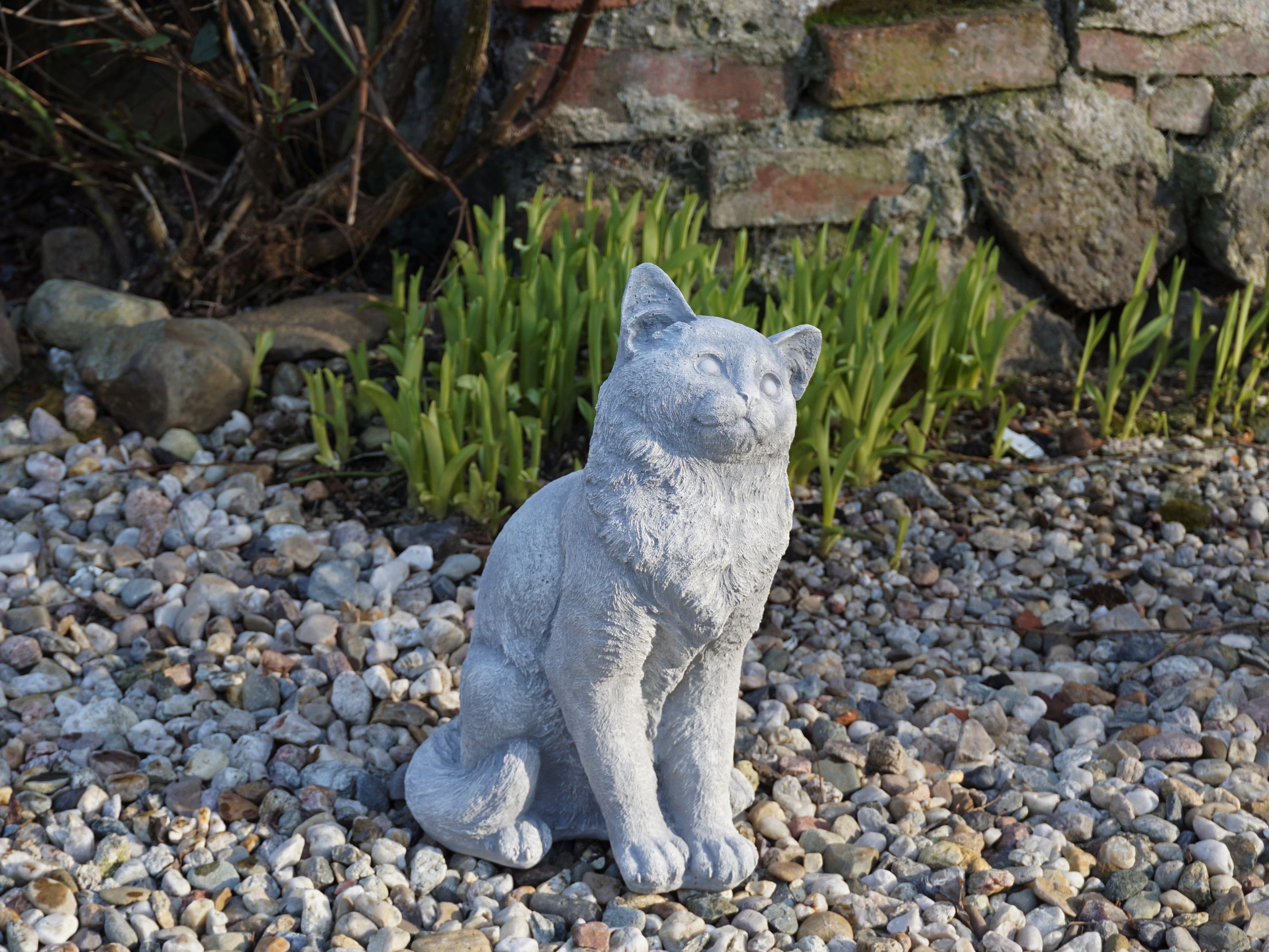 Massive Steinfigur Katze sitzend Kater aus Steinguss frostsicher (Gr. 40 cm)