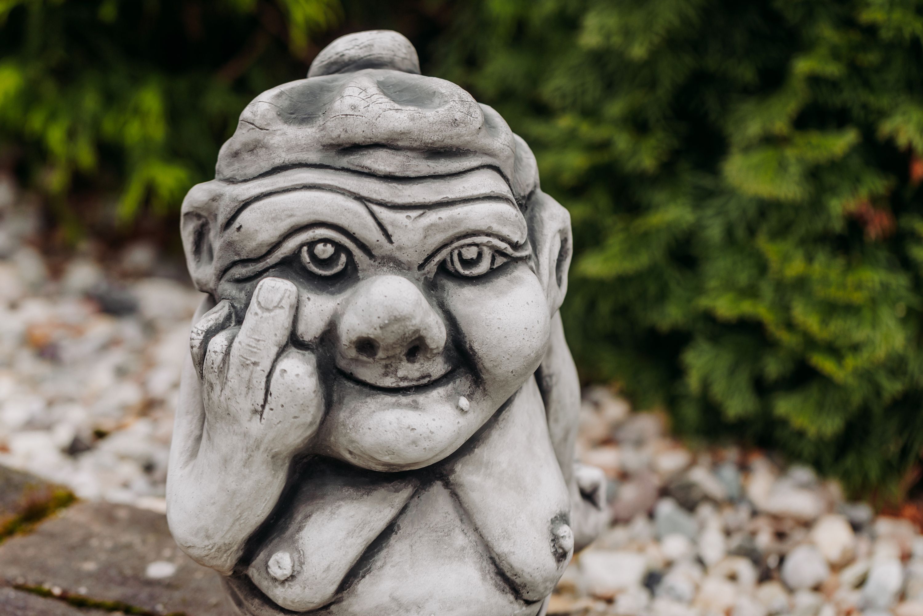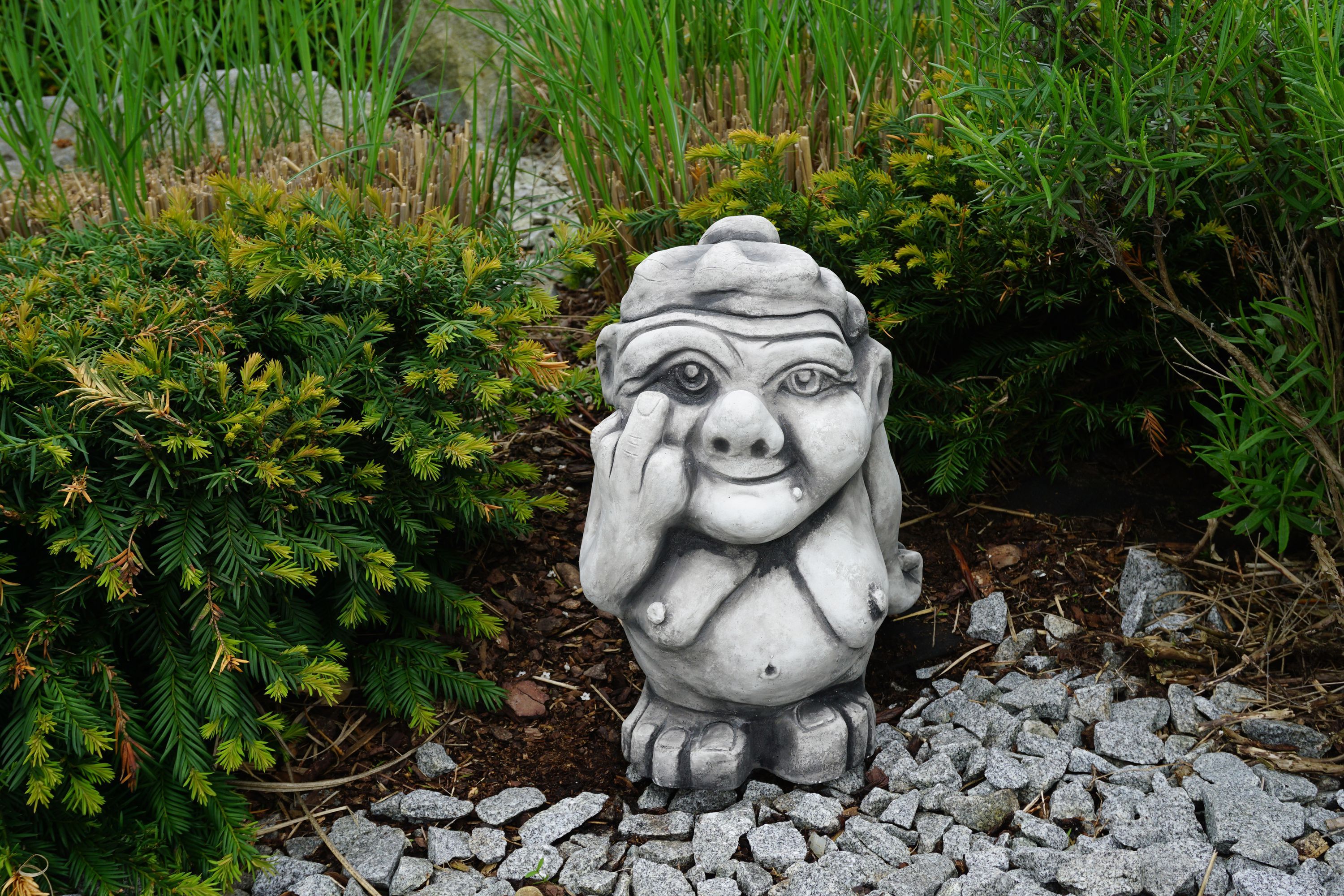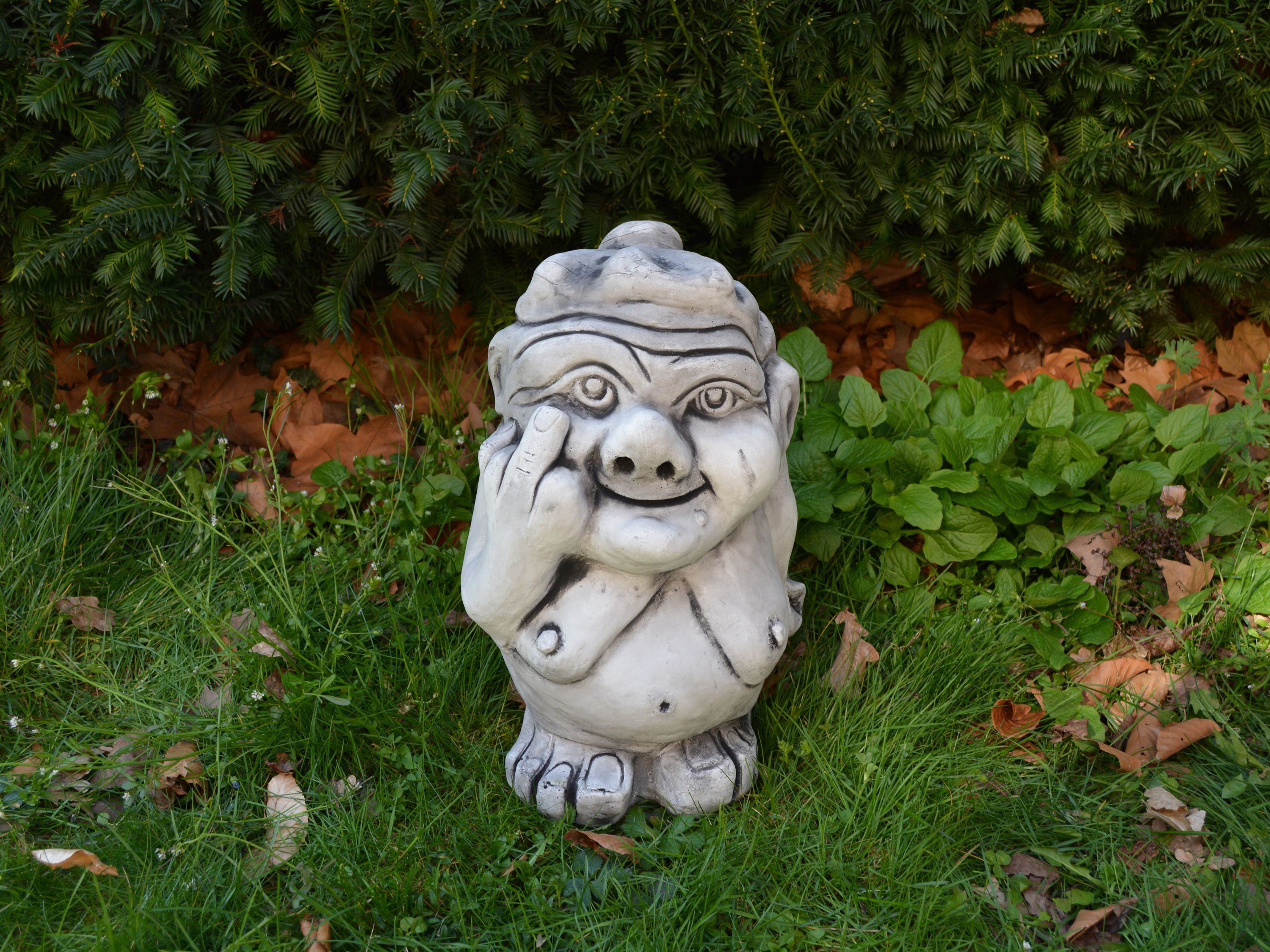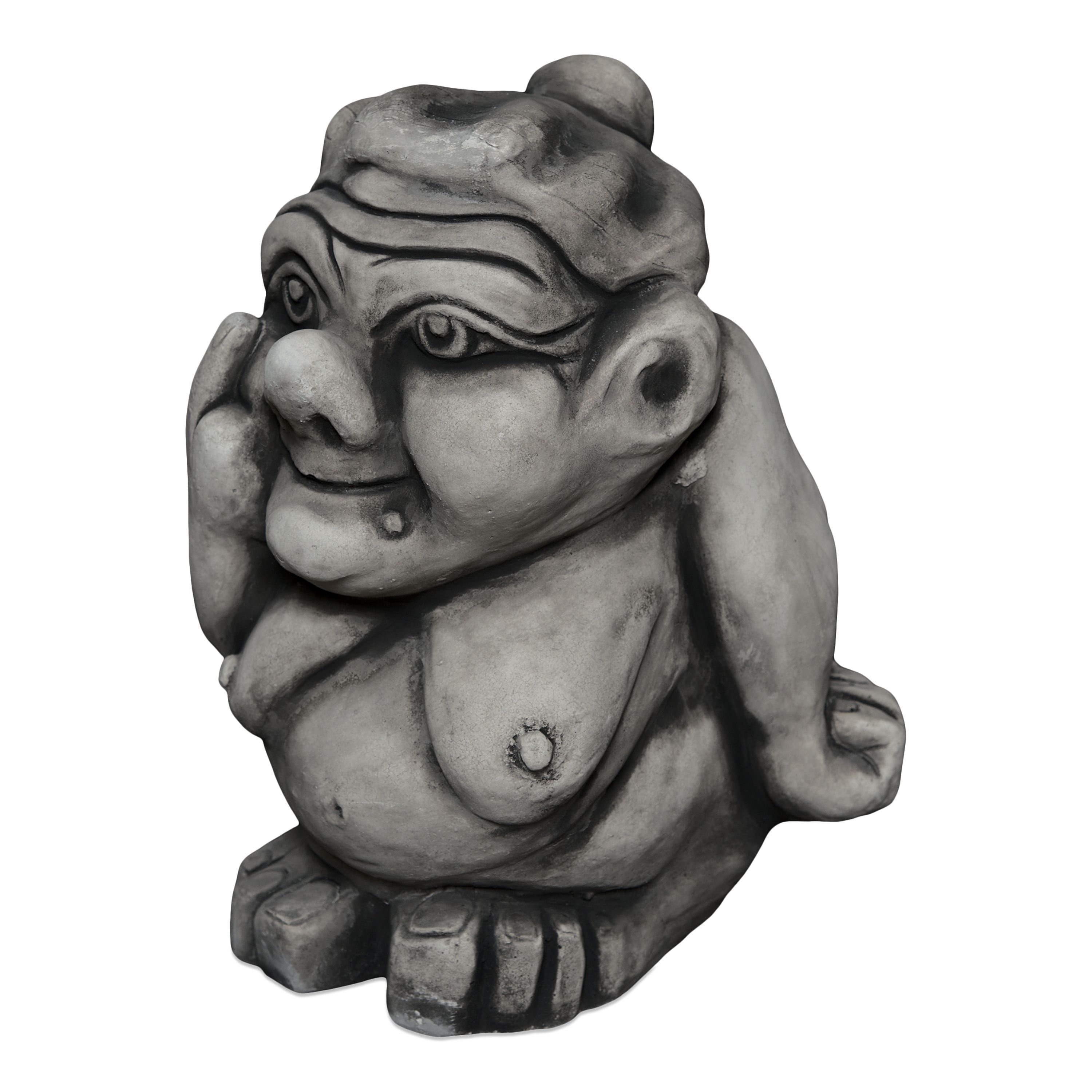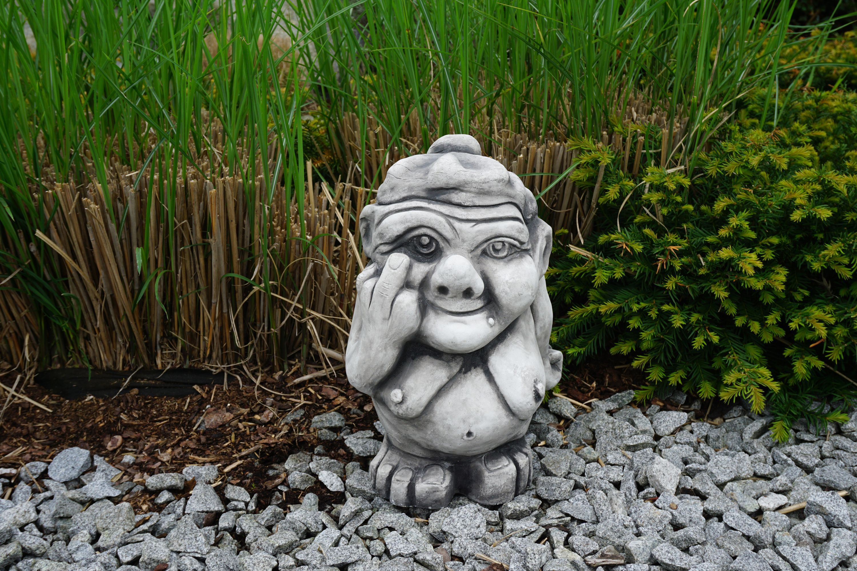 Massive Steinfigur lustiger XXL Troll Oma mit Mittelfinger Steinguss frostfest