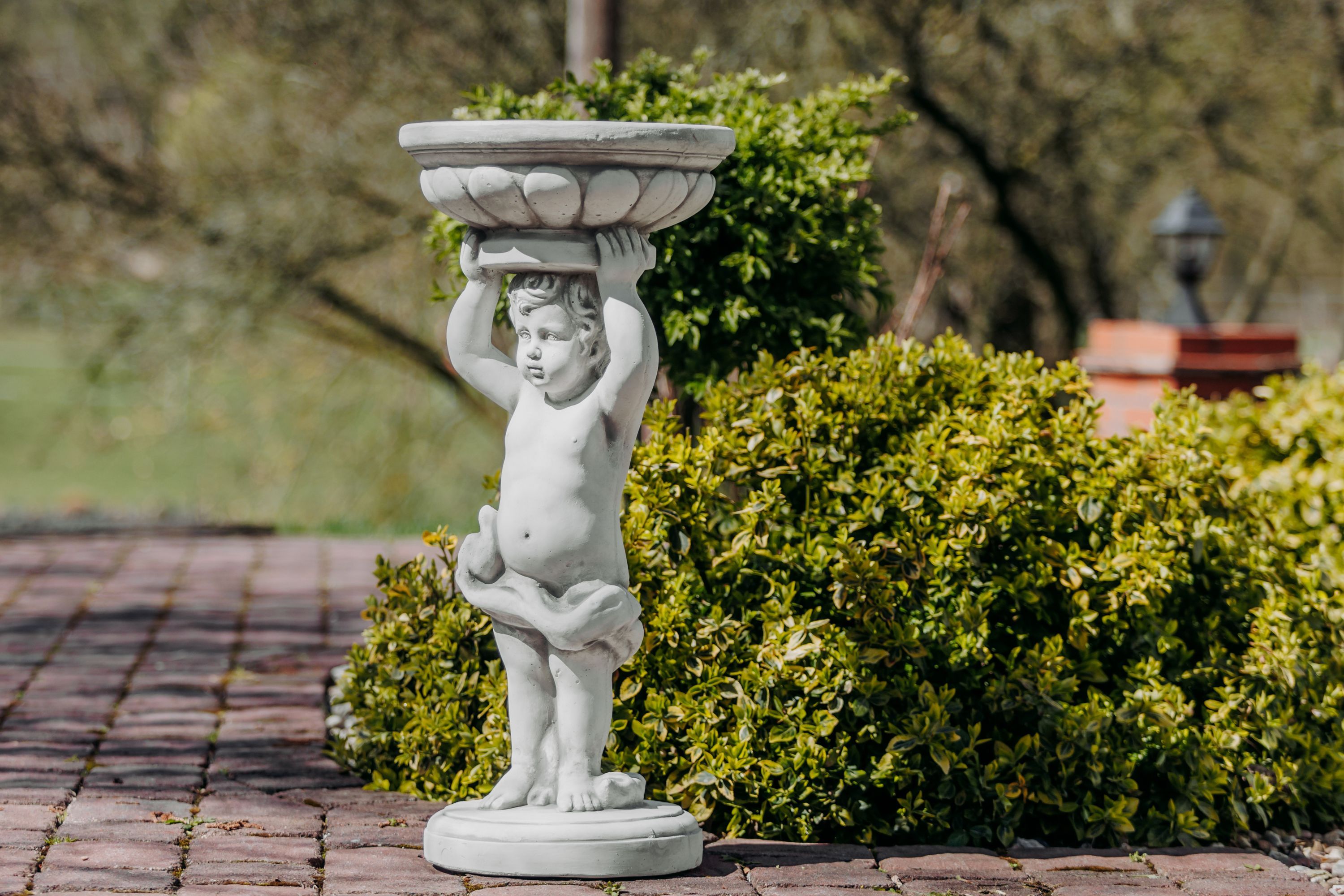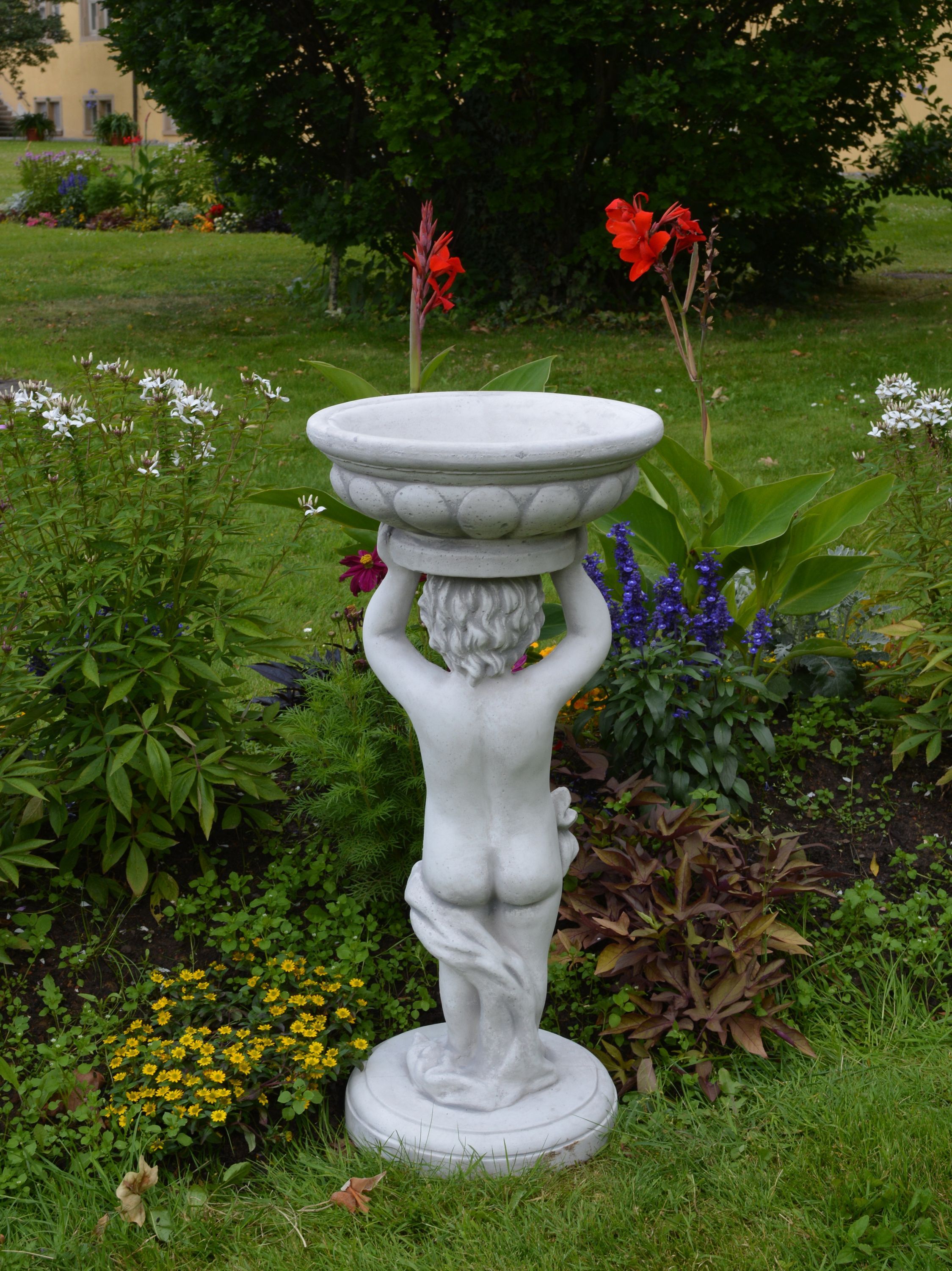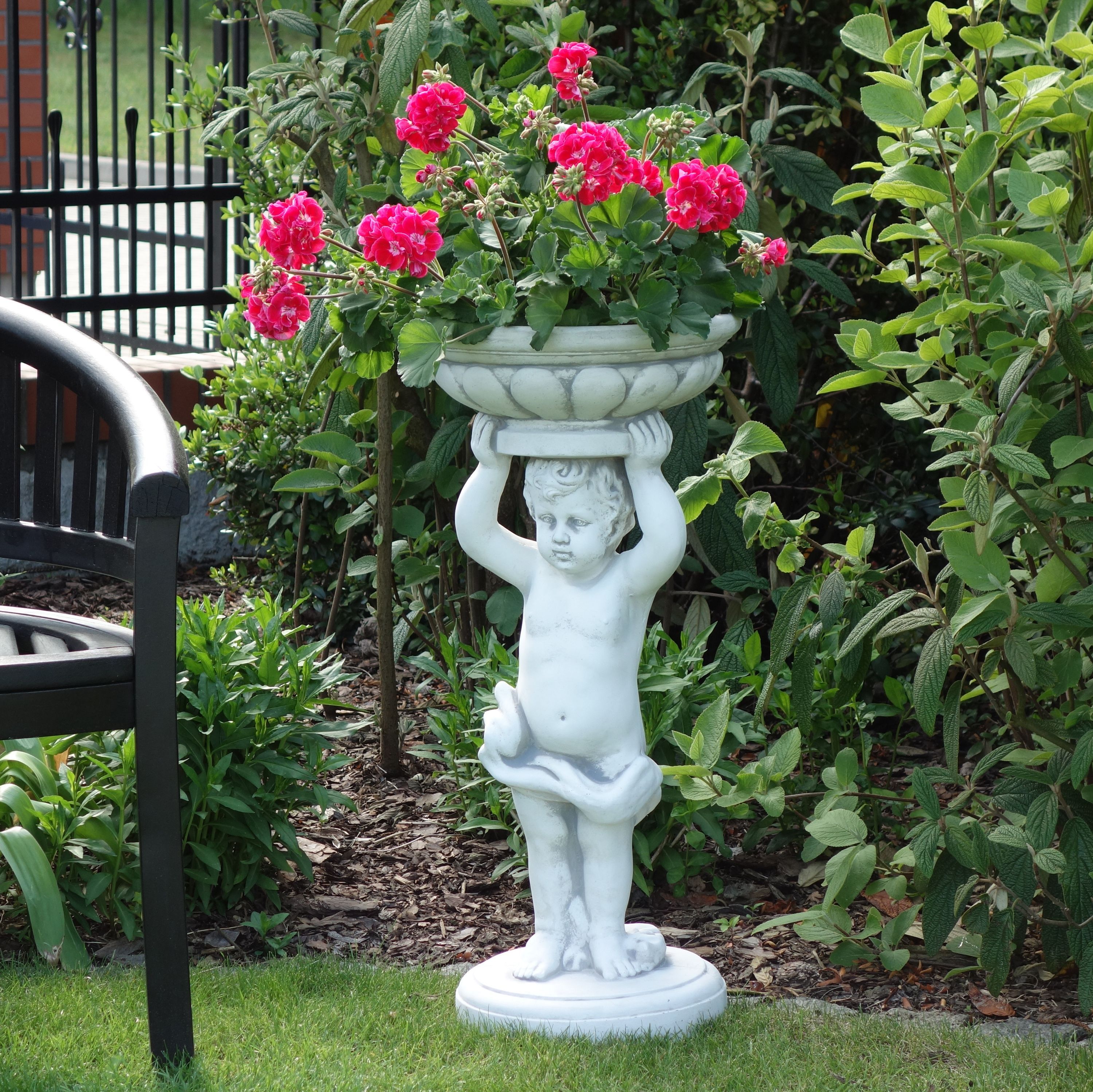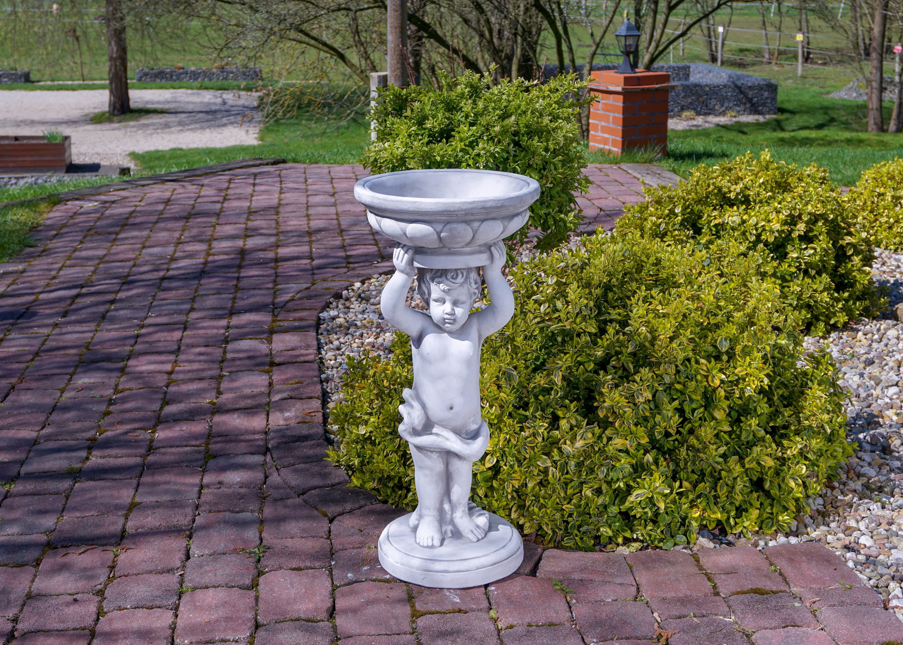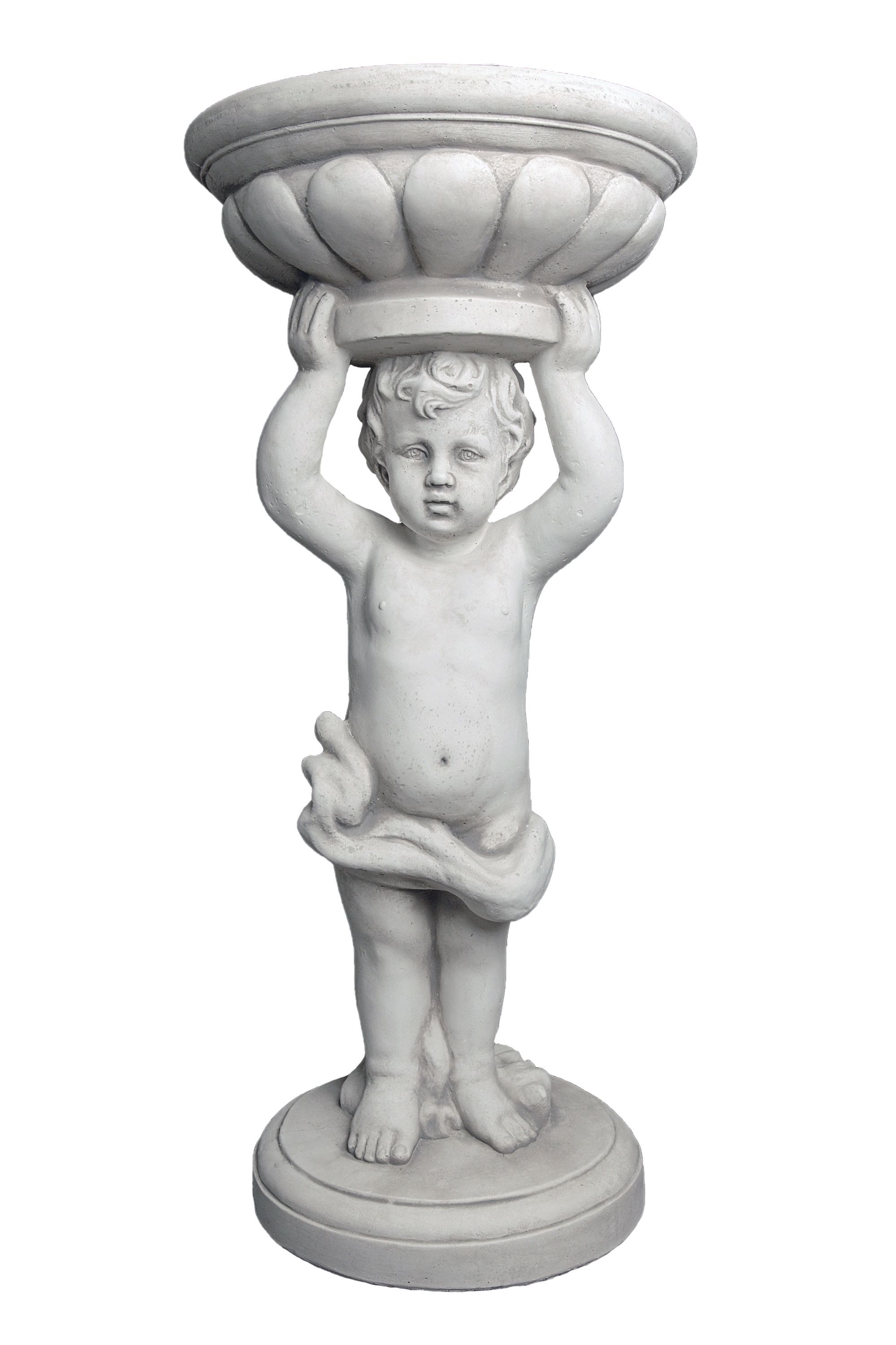 Massive Steinfigur Statue Blumensäule mit Junge Pflanzgefäß Steinguss frostfest