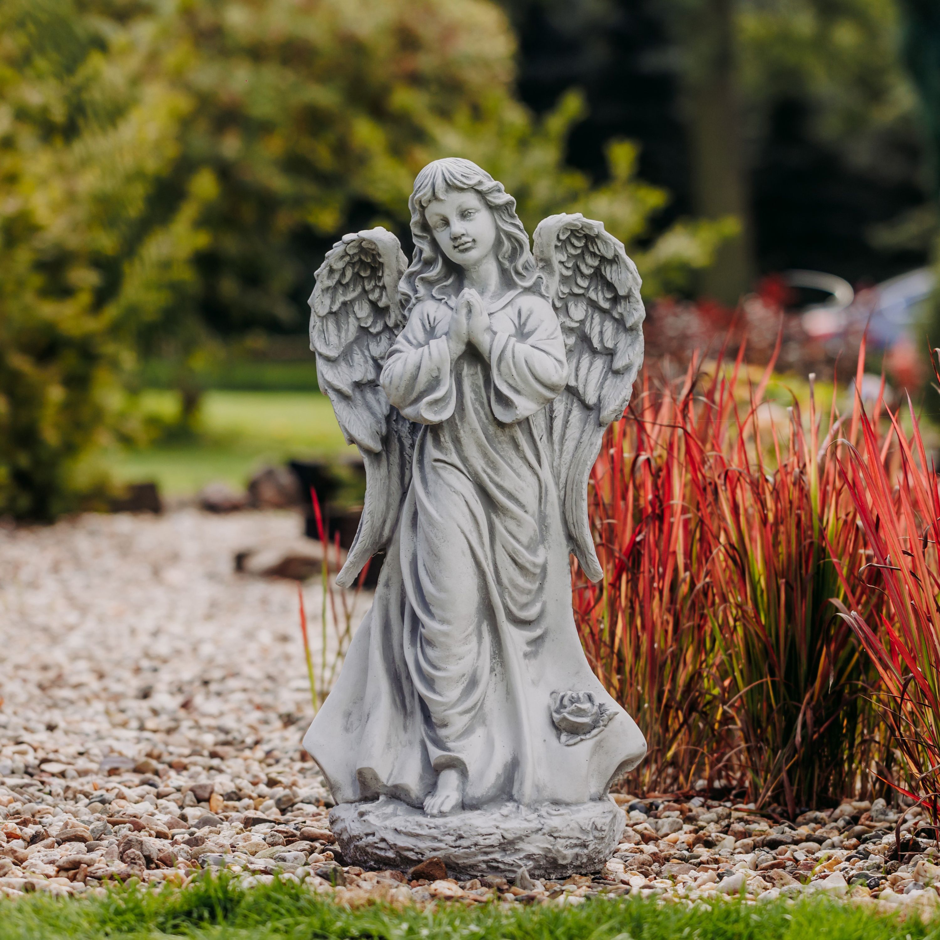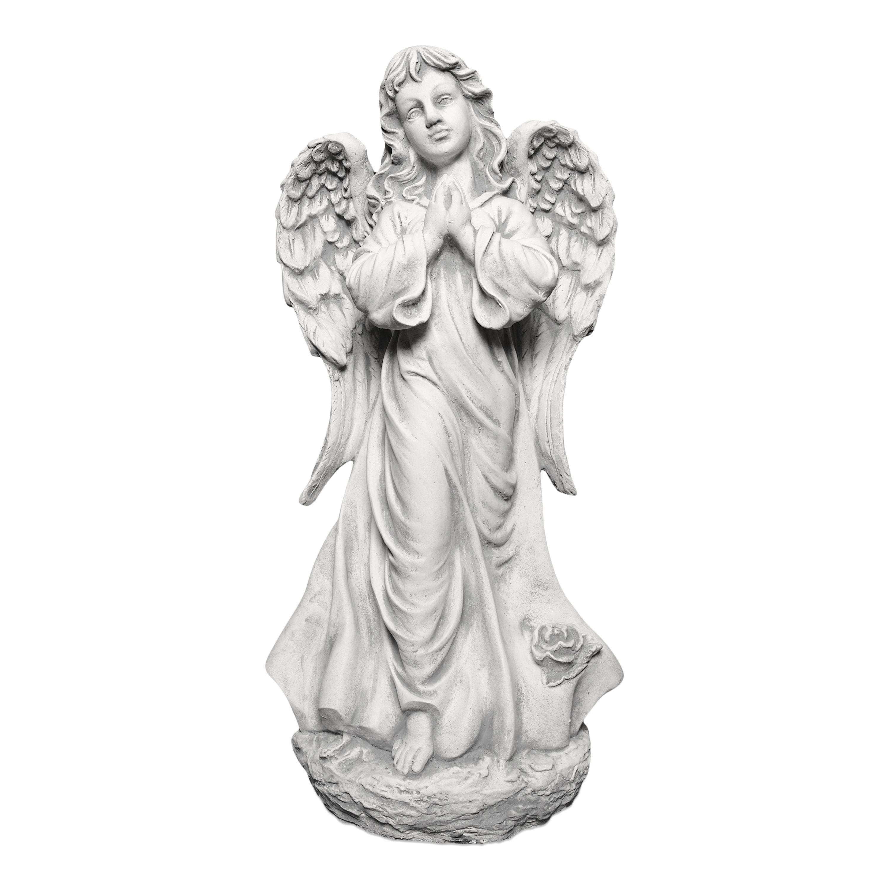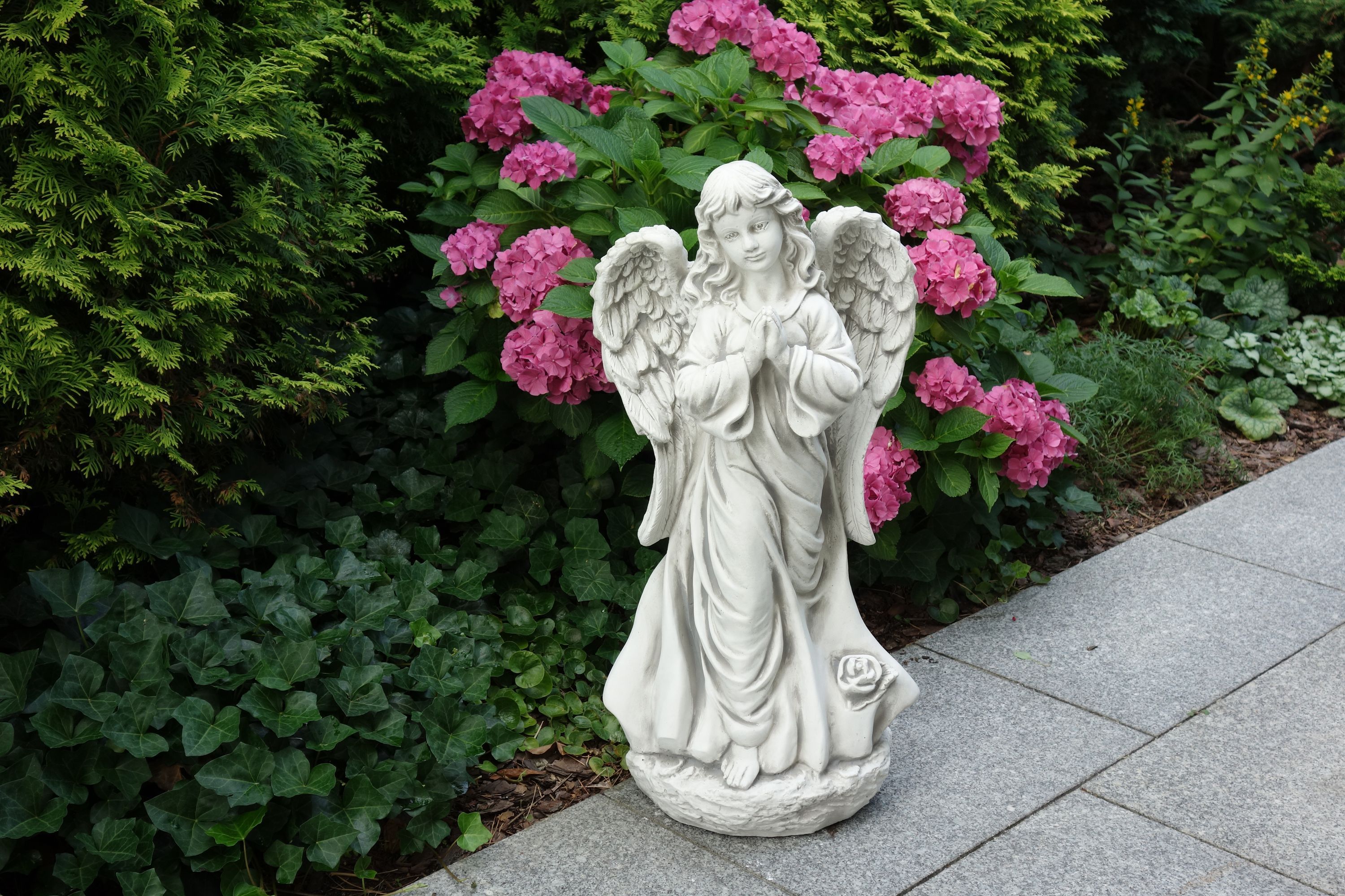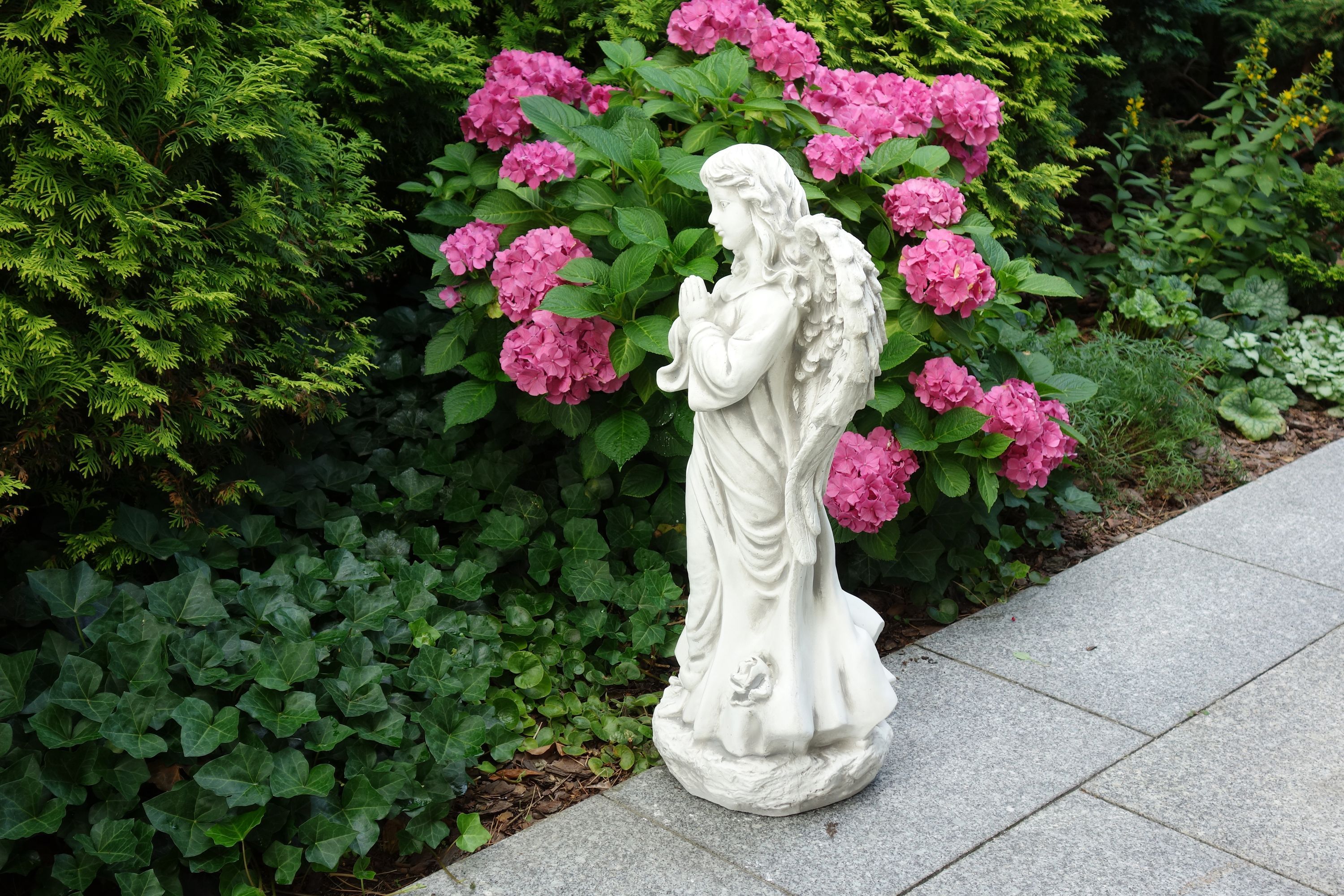 Massive Steinfigur Statue Engel auf Fels Grabdeko Gartendeko Steinguss frostfest