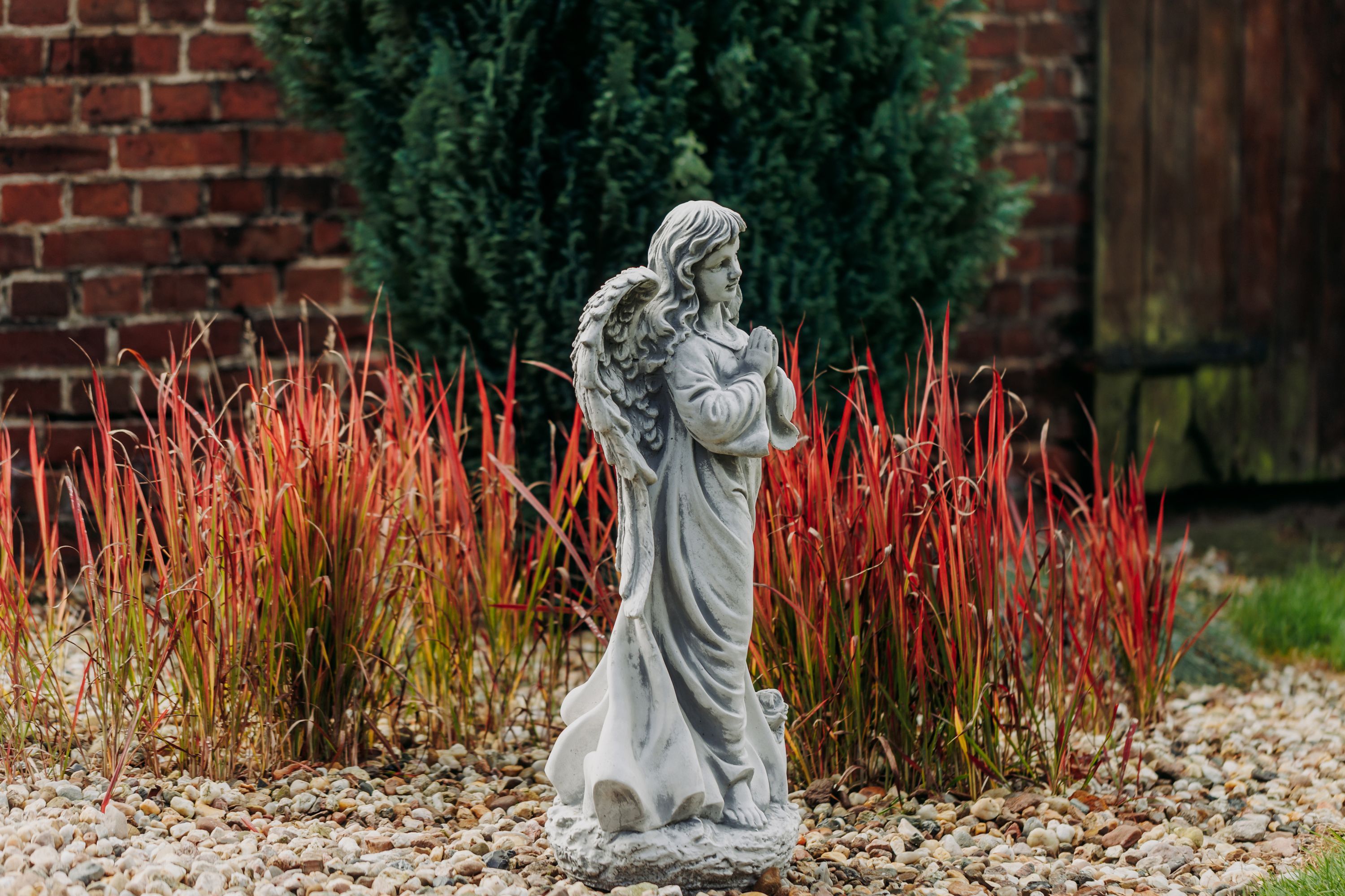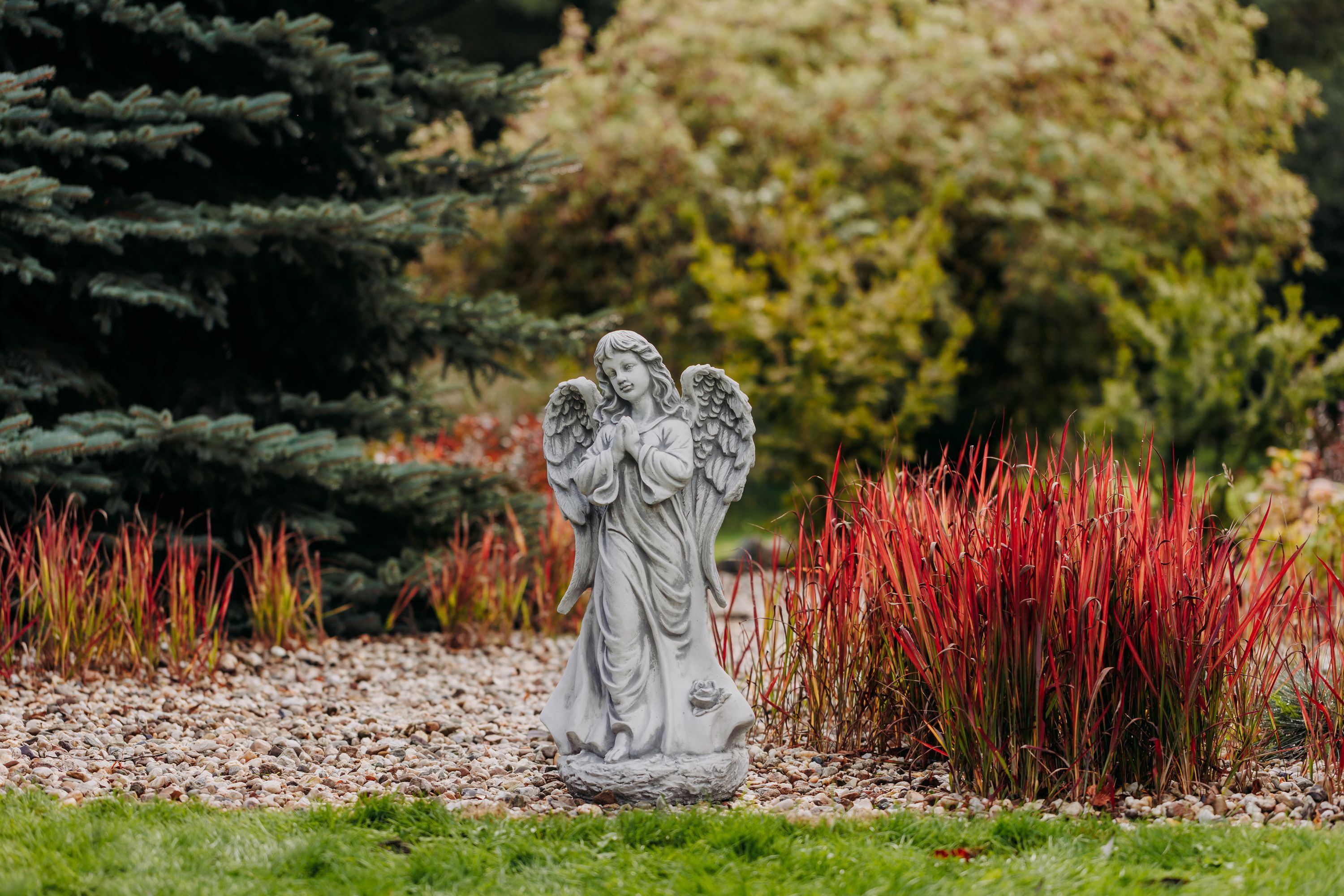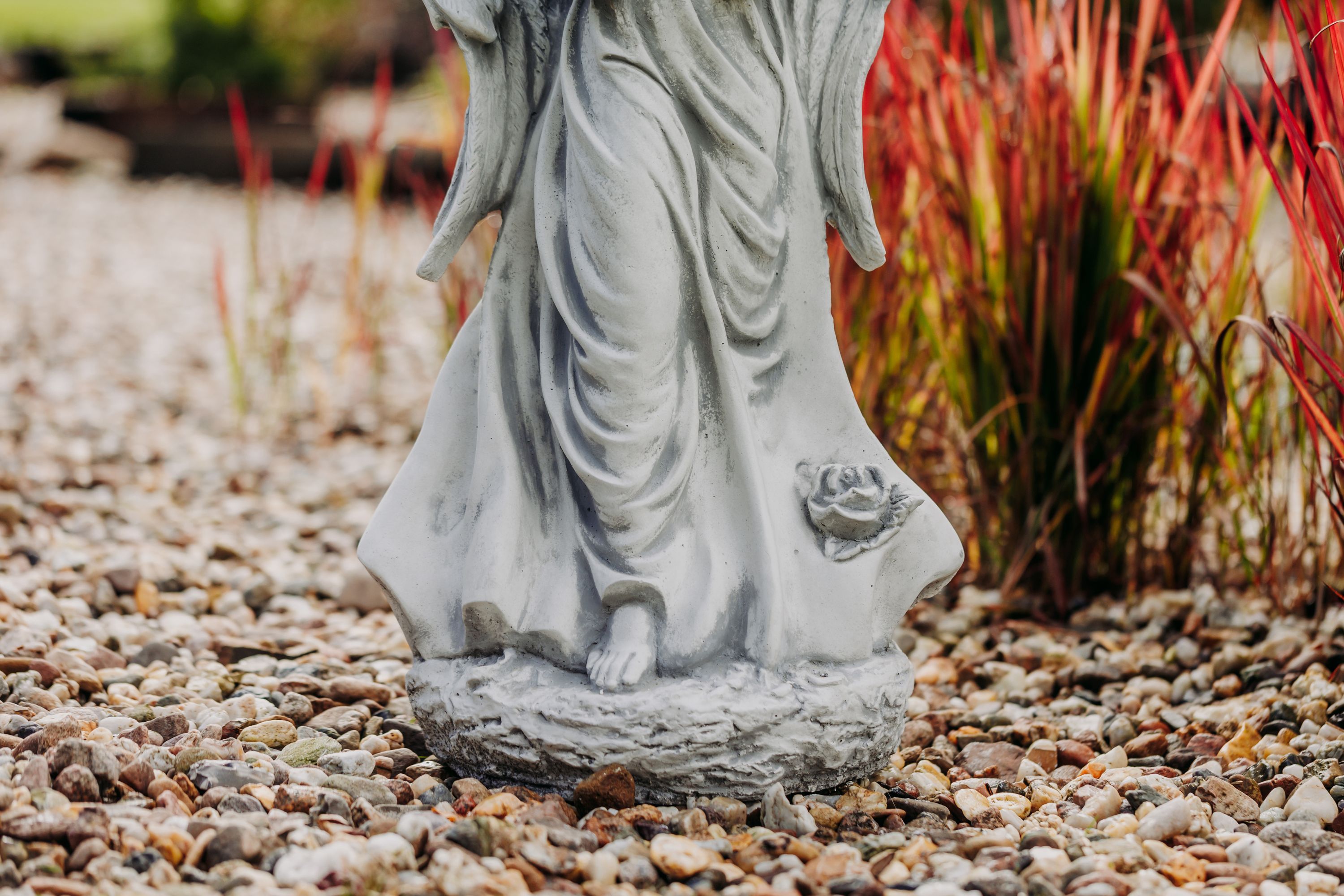 Massive Steinfigur Statue Engel auf Fels Grabdeko Gartendeko Steinguss frostfest