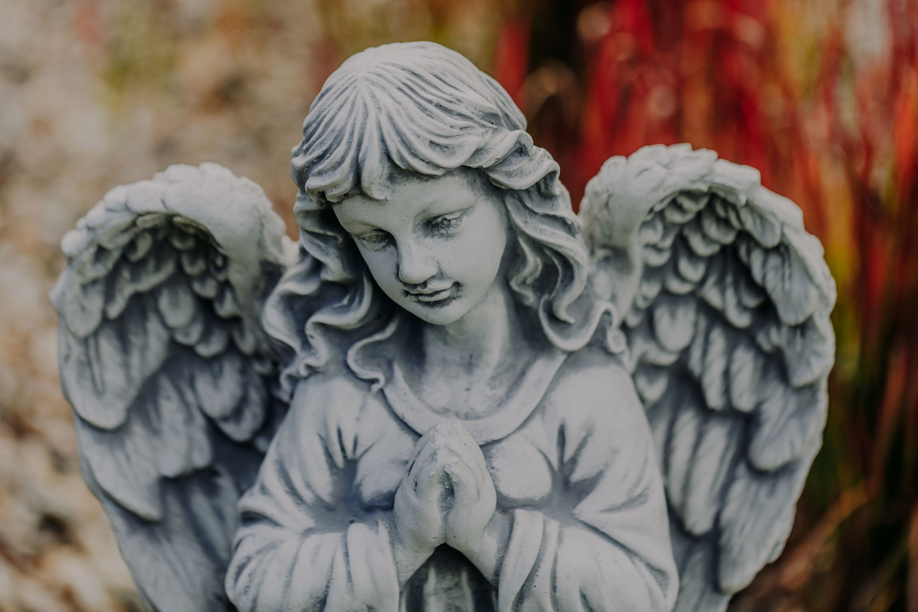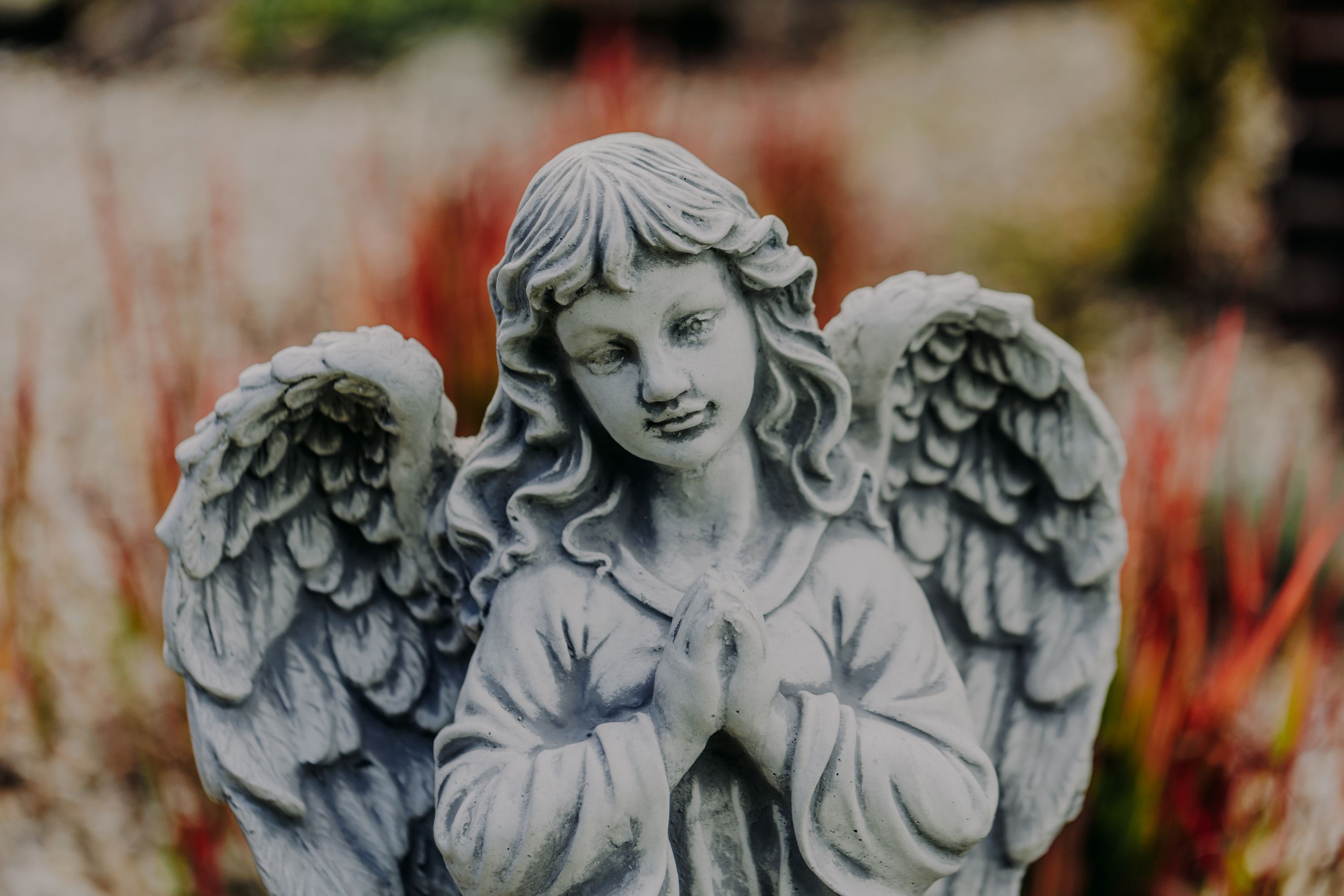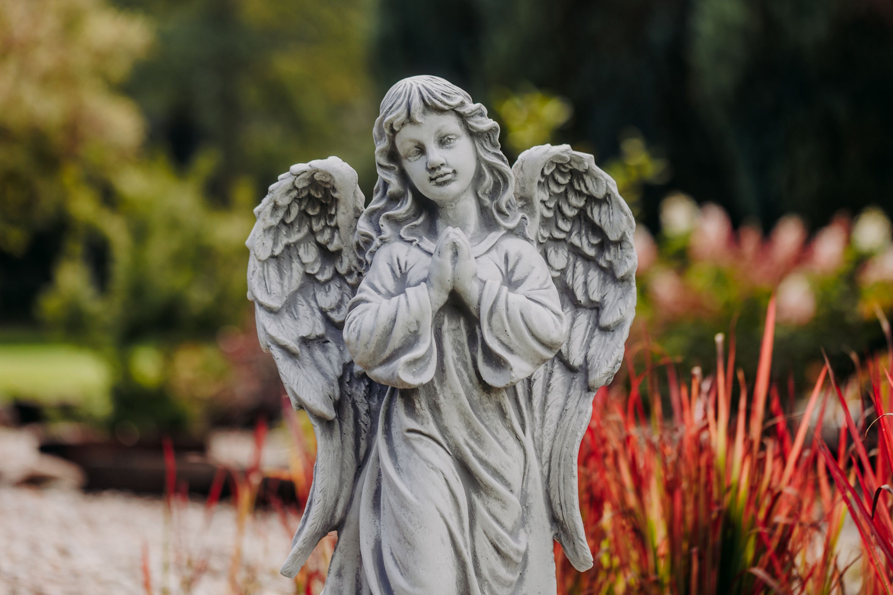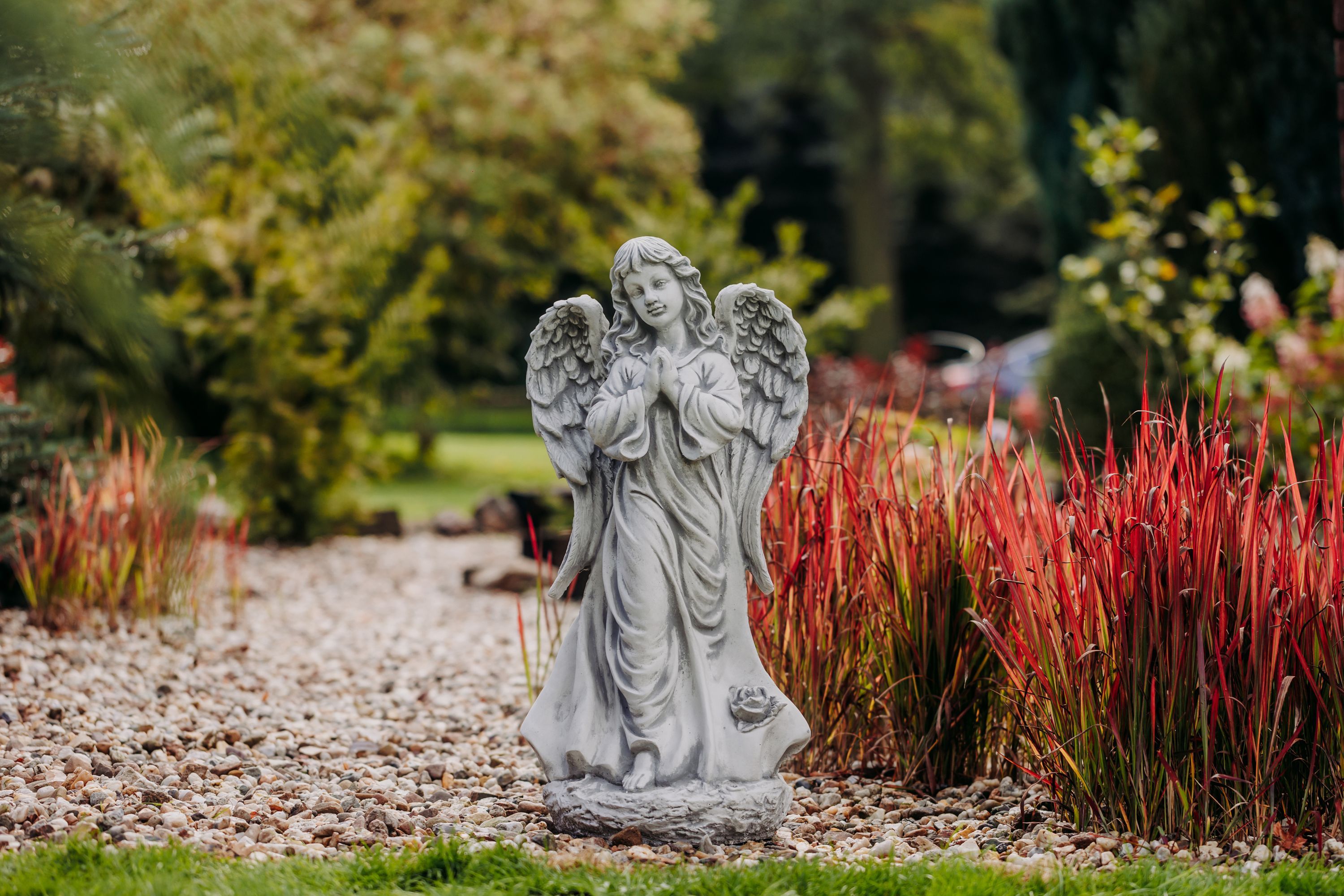 Massive Steinfigur Statue Engel auf Fels Grabdeko Gartendeko Steinguss frostfest