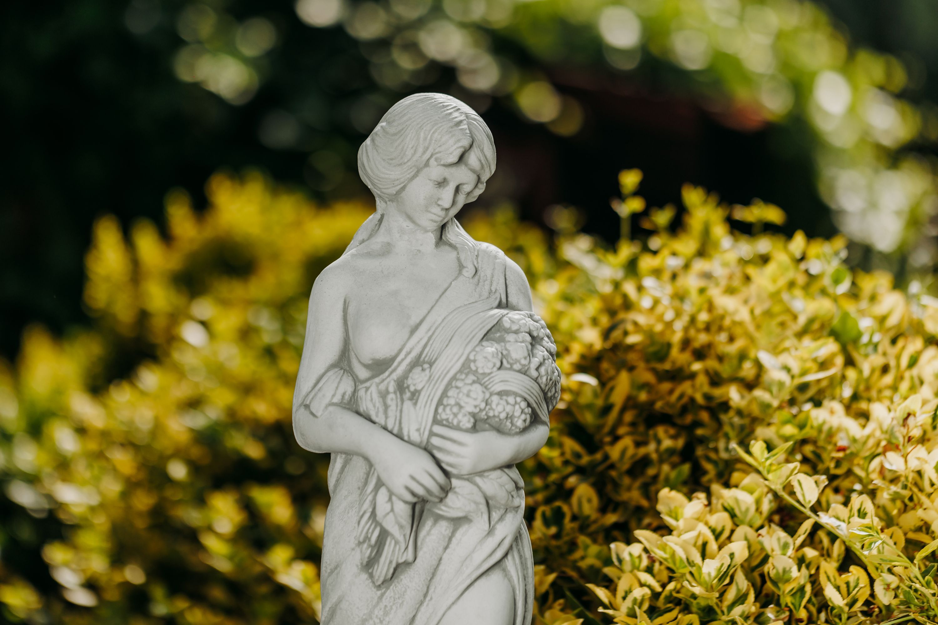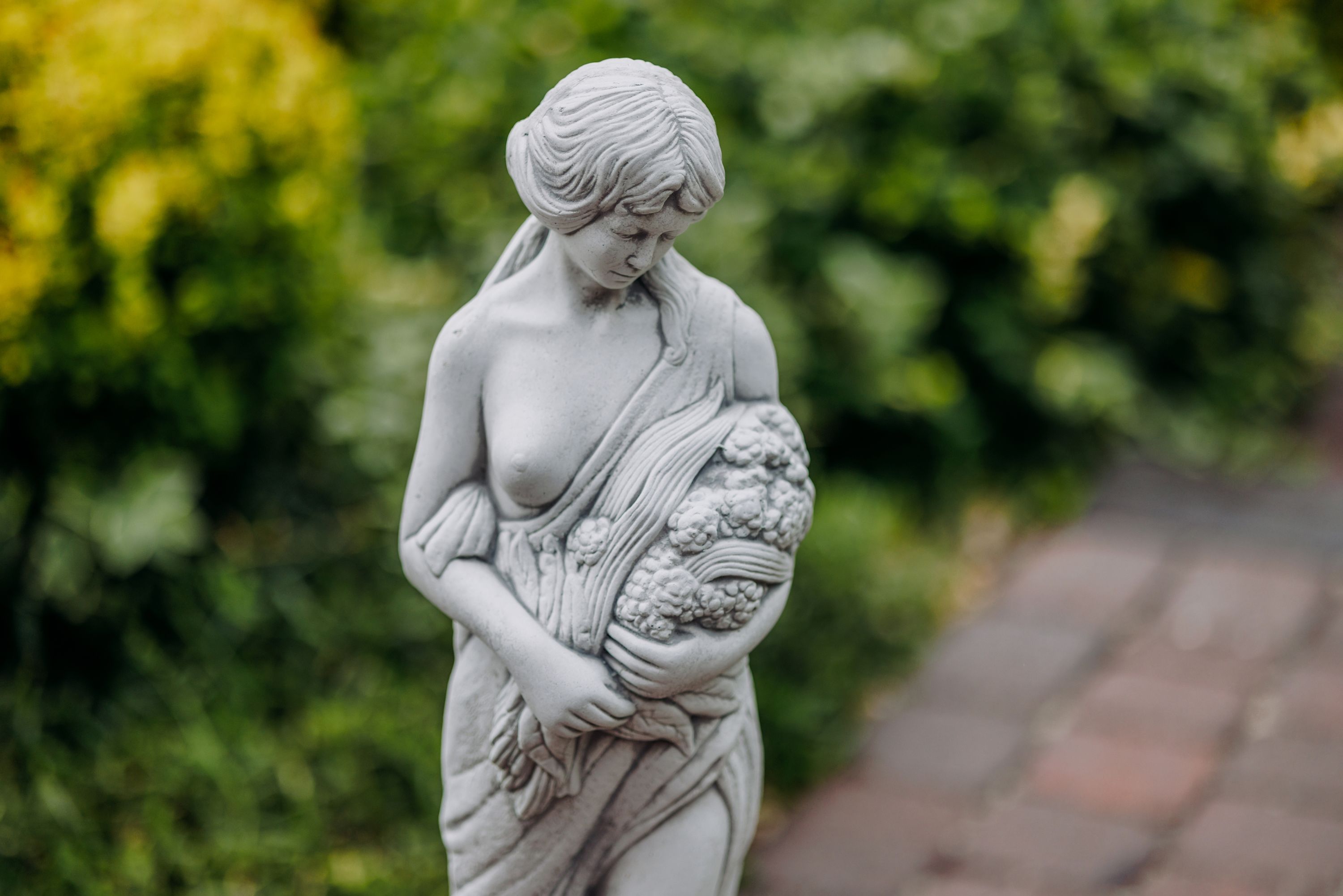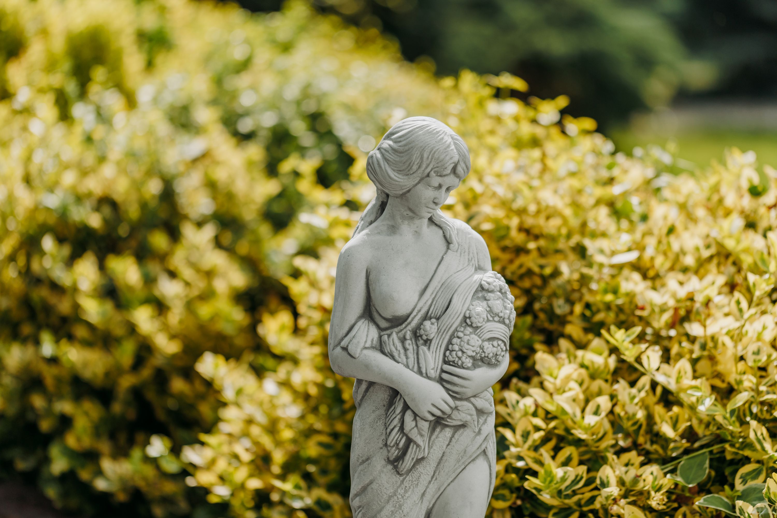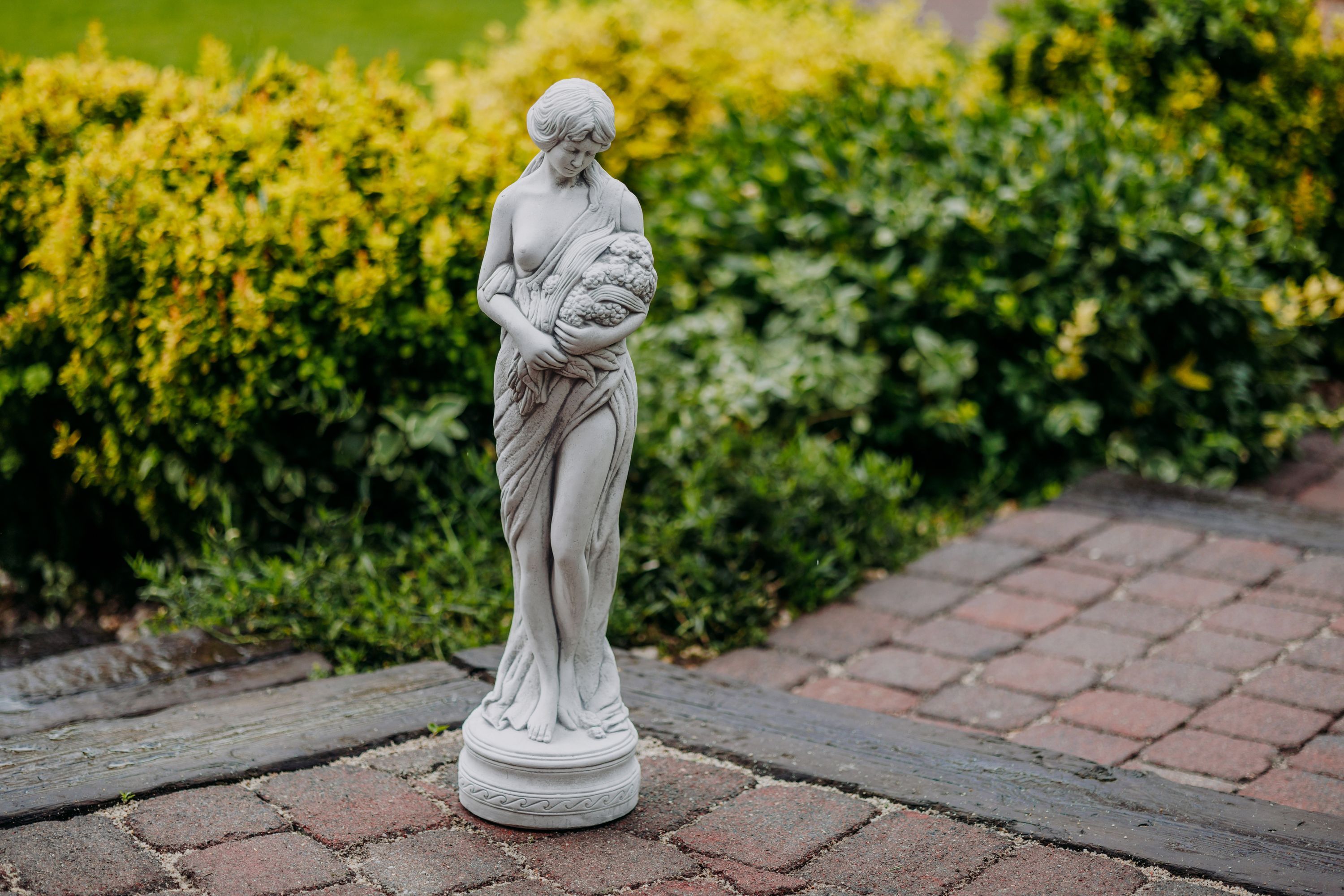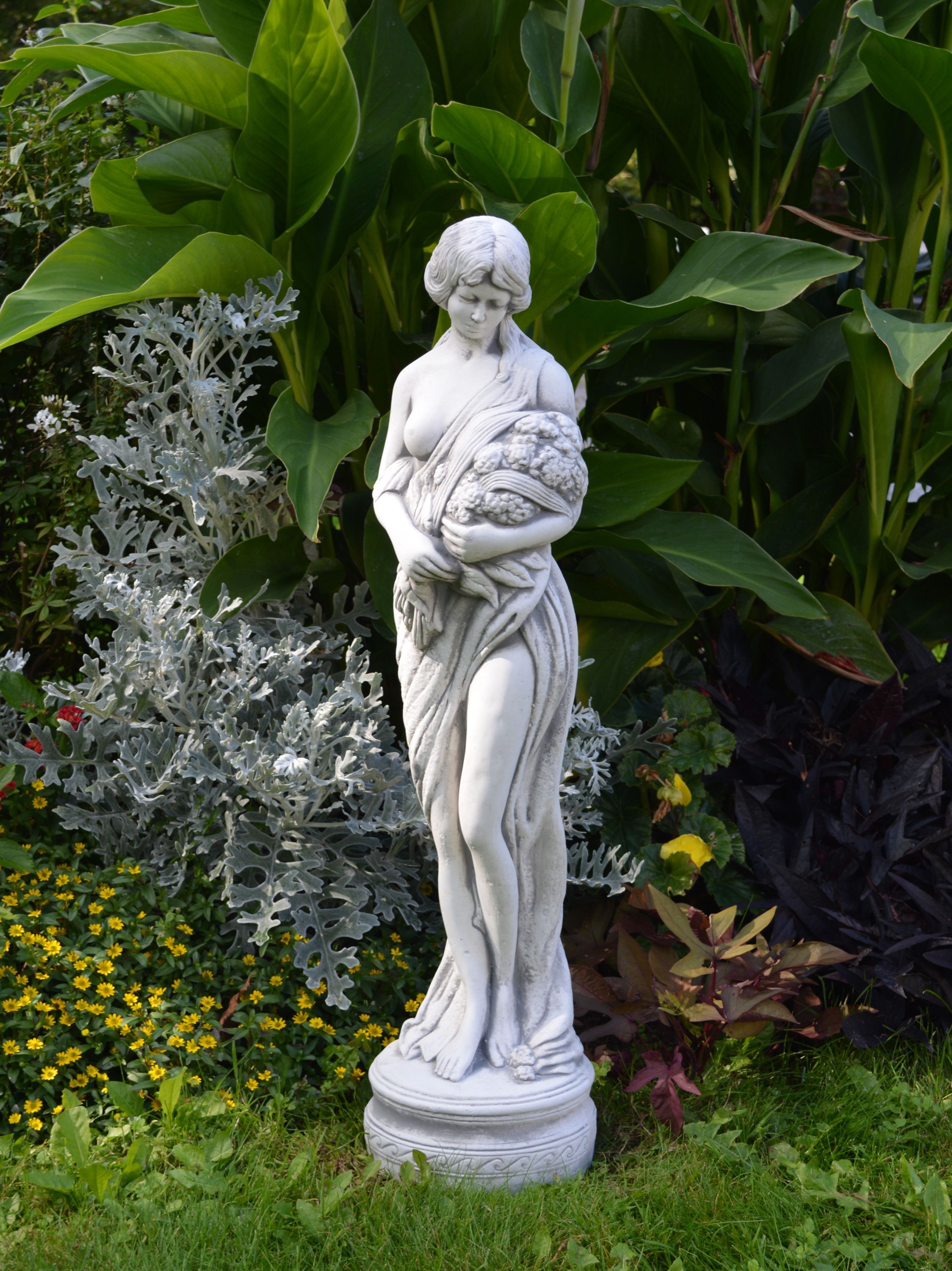 Massive Steinfigur Statue Frau Motiv Frühling antik aus Steinguss frostfest
