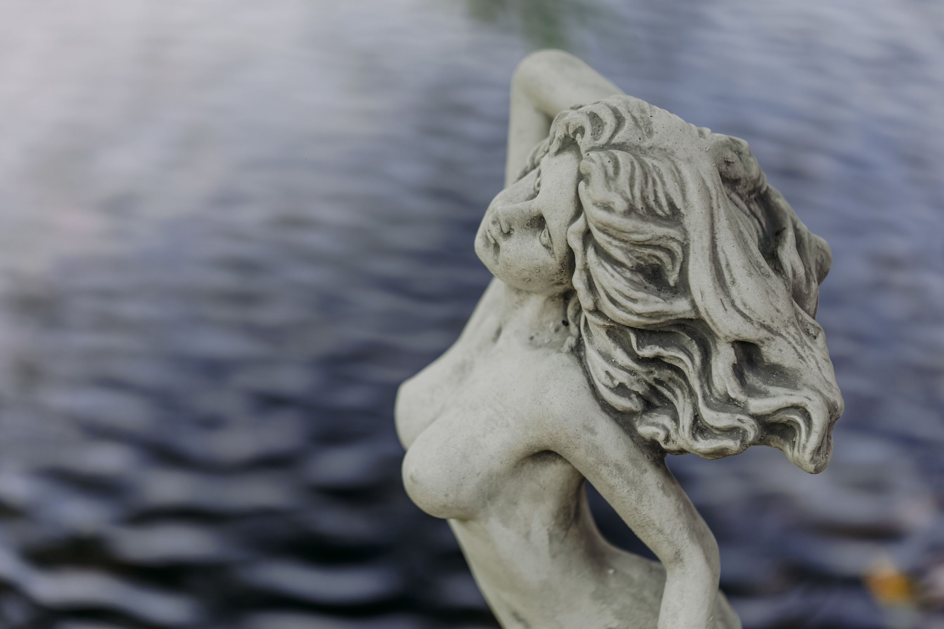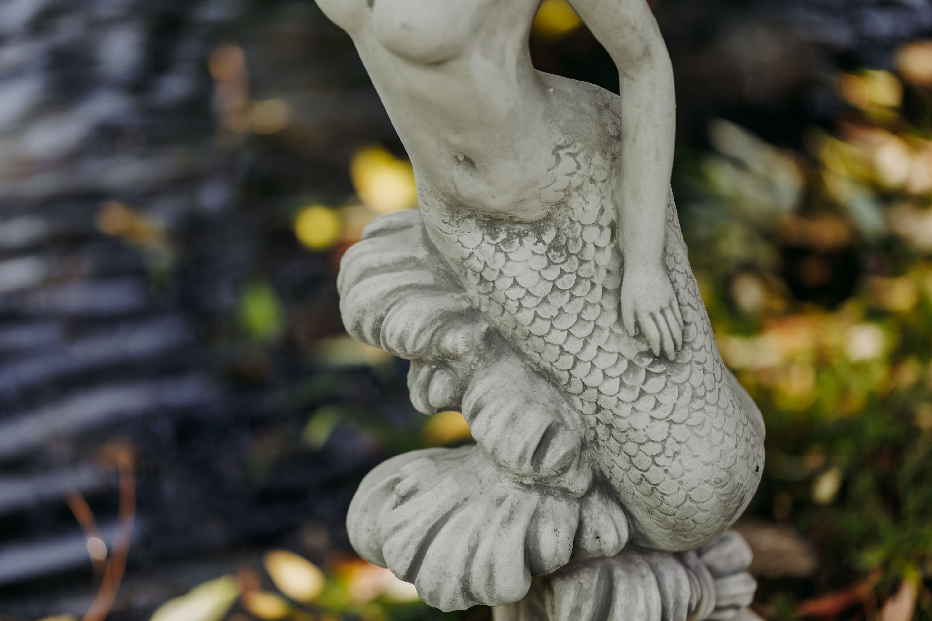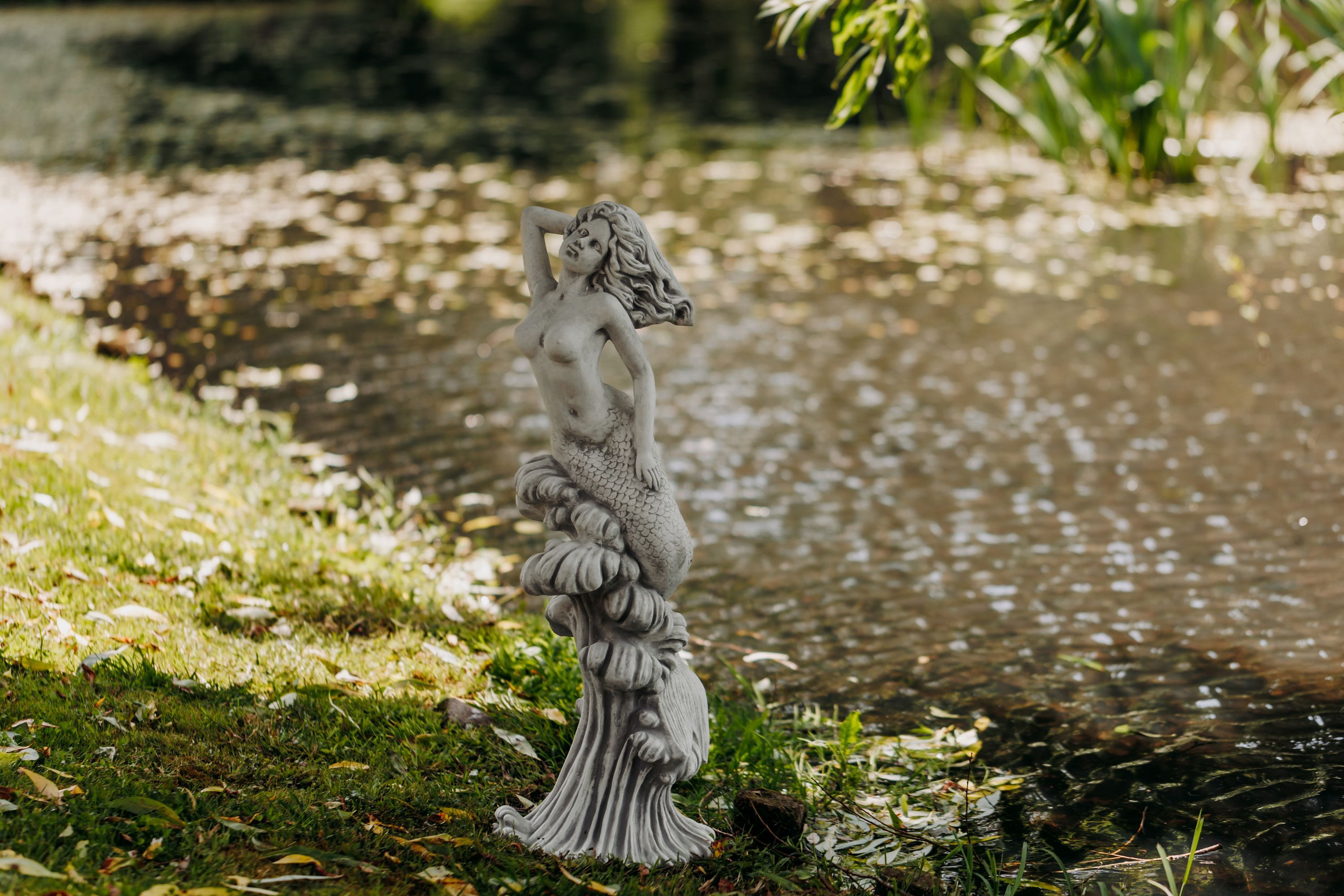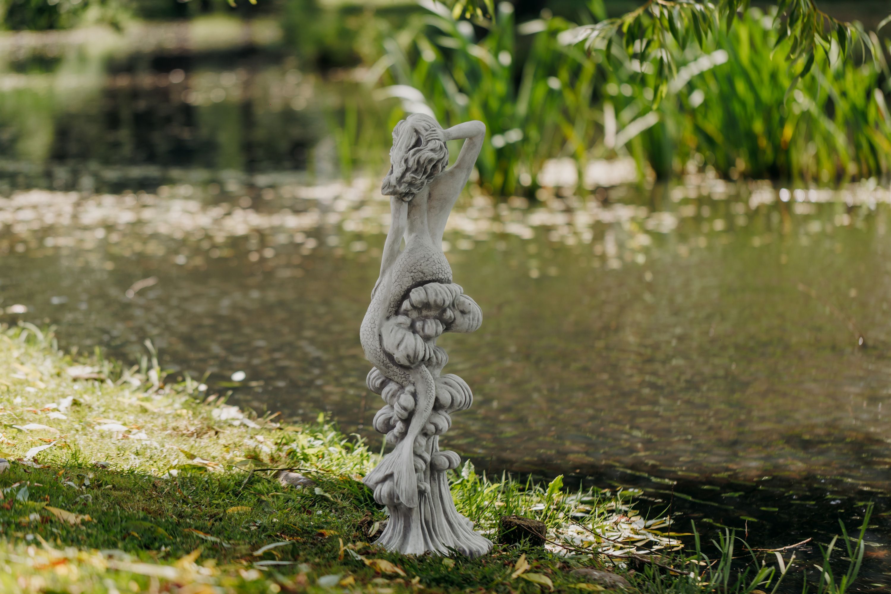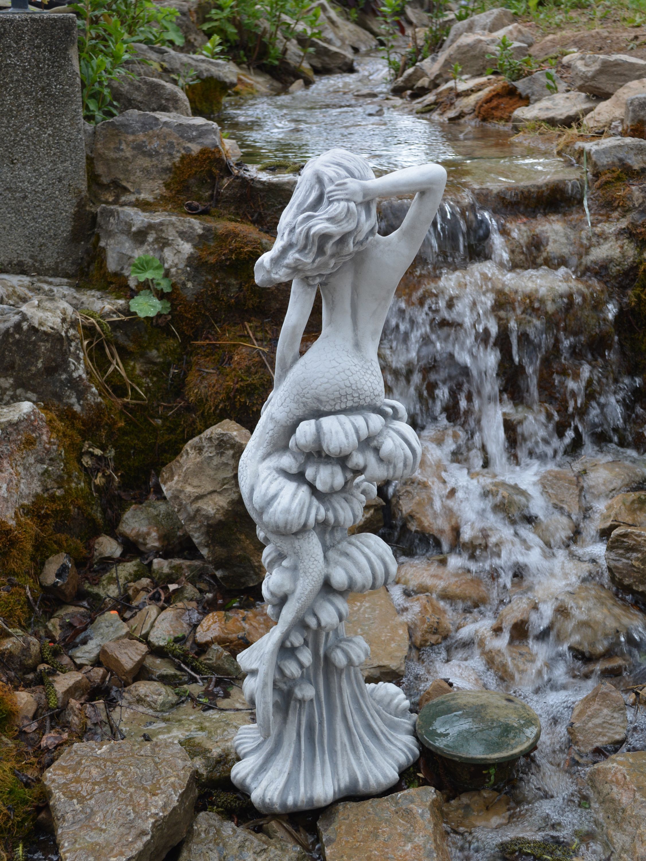 Massive Steinfigur Statue Meerjungfrau auf Welle Nixe aus Steinguss frostfest