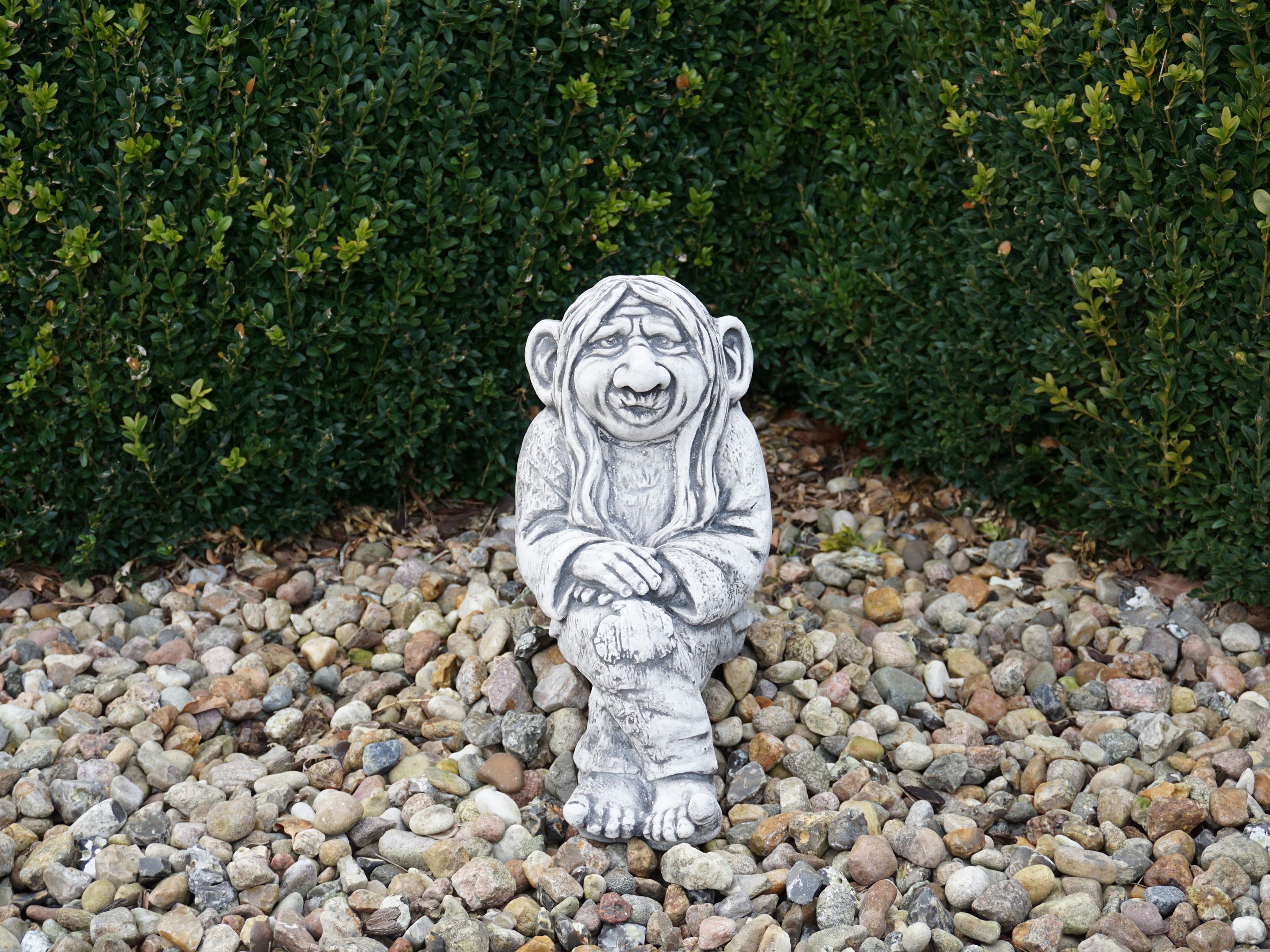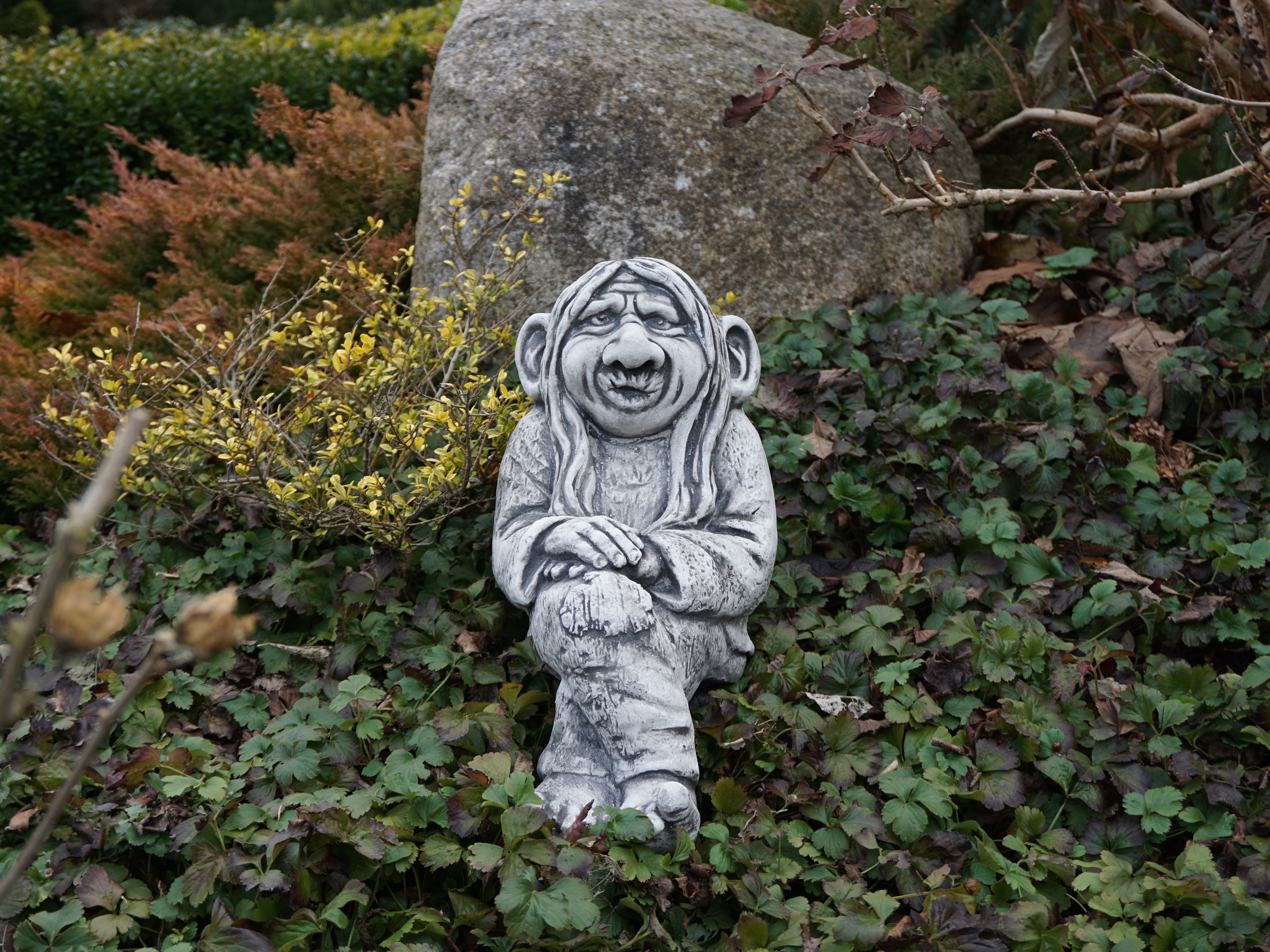 Massive Steinfigur Wichtel Naturgeist Kantensitzer Zauberer Steinguss frostfest
