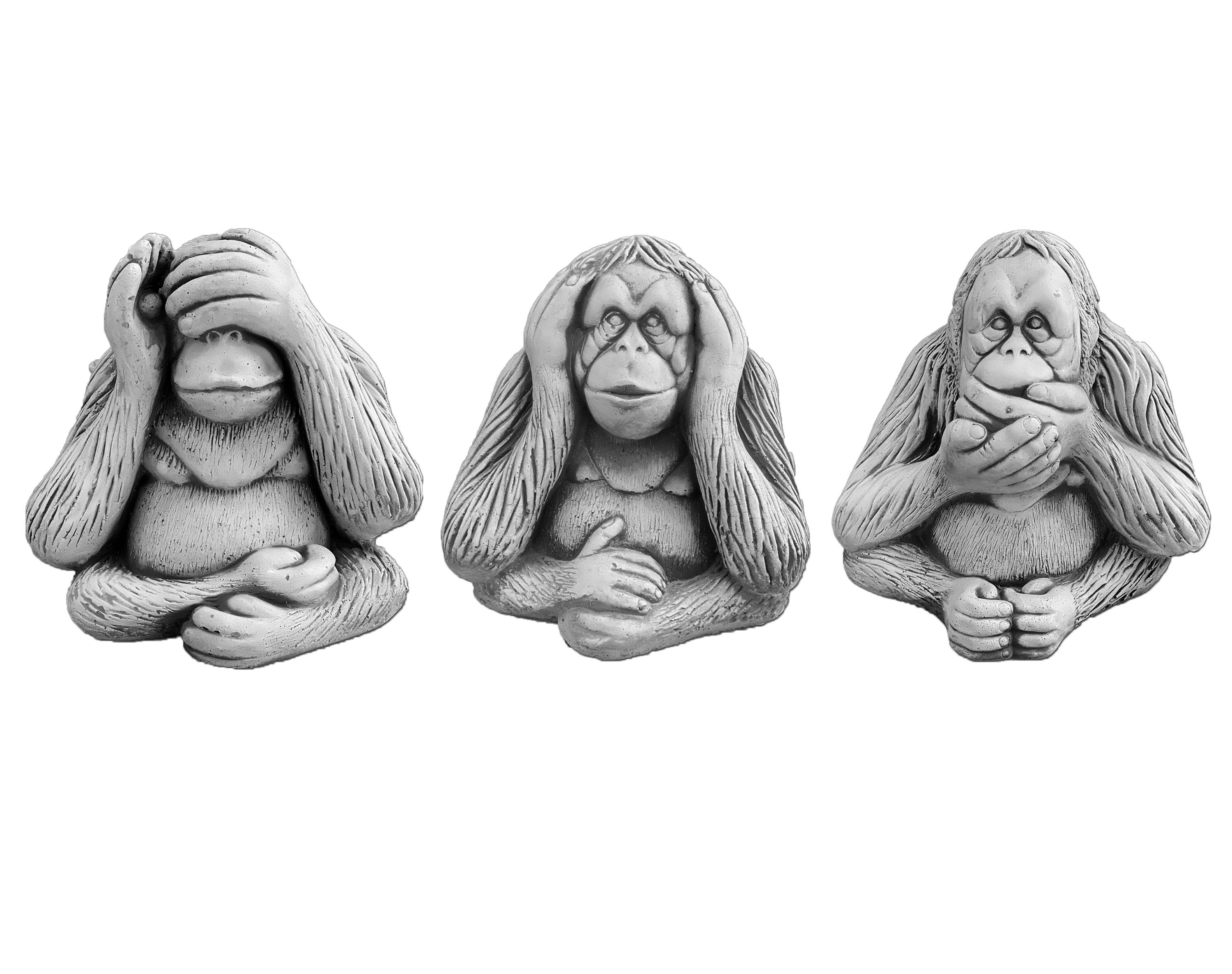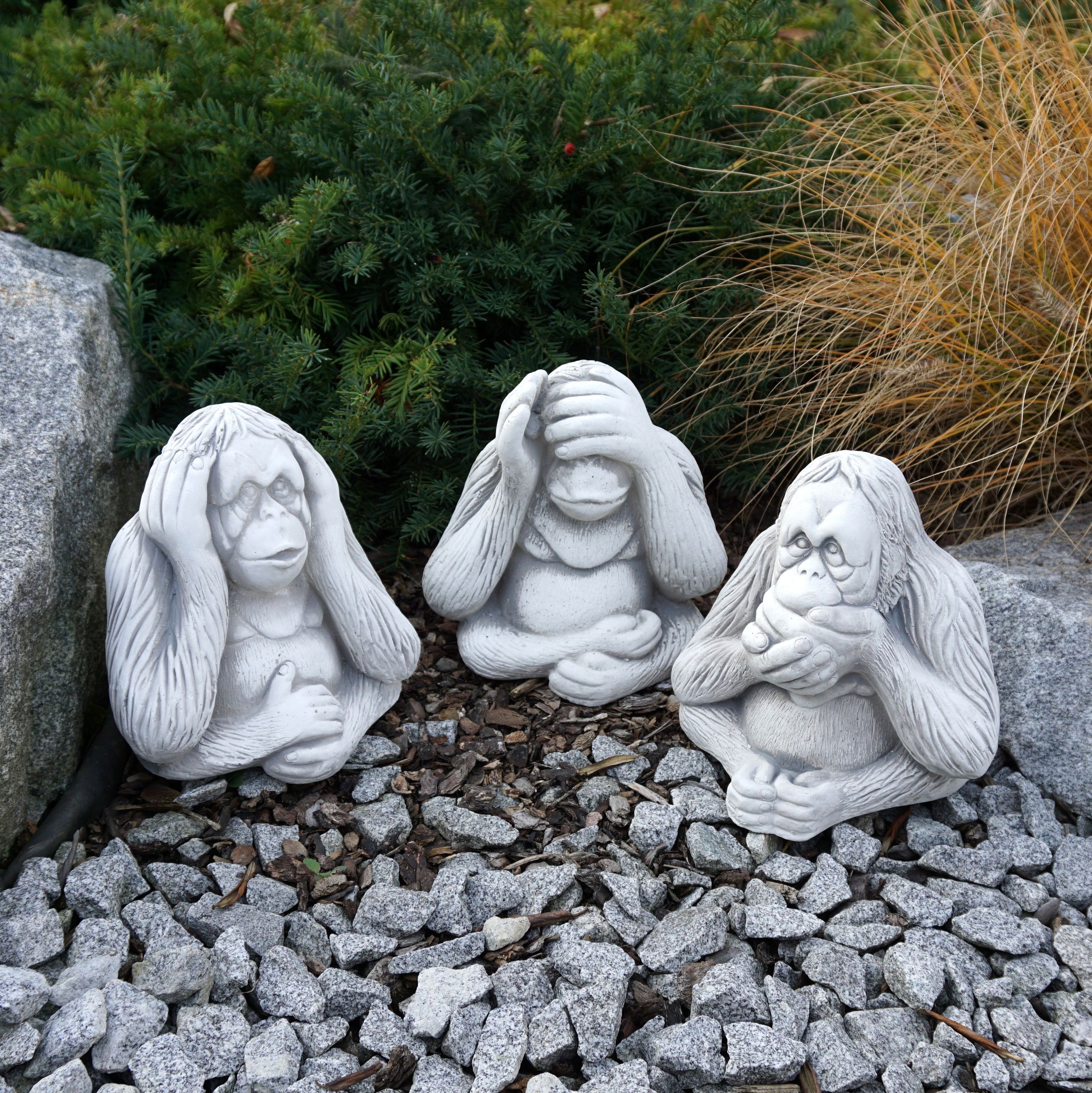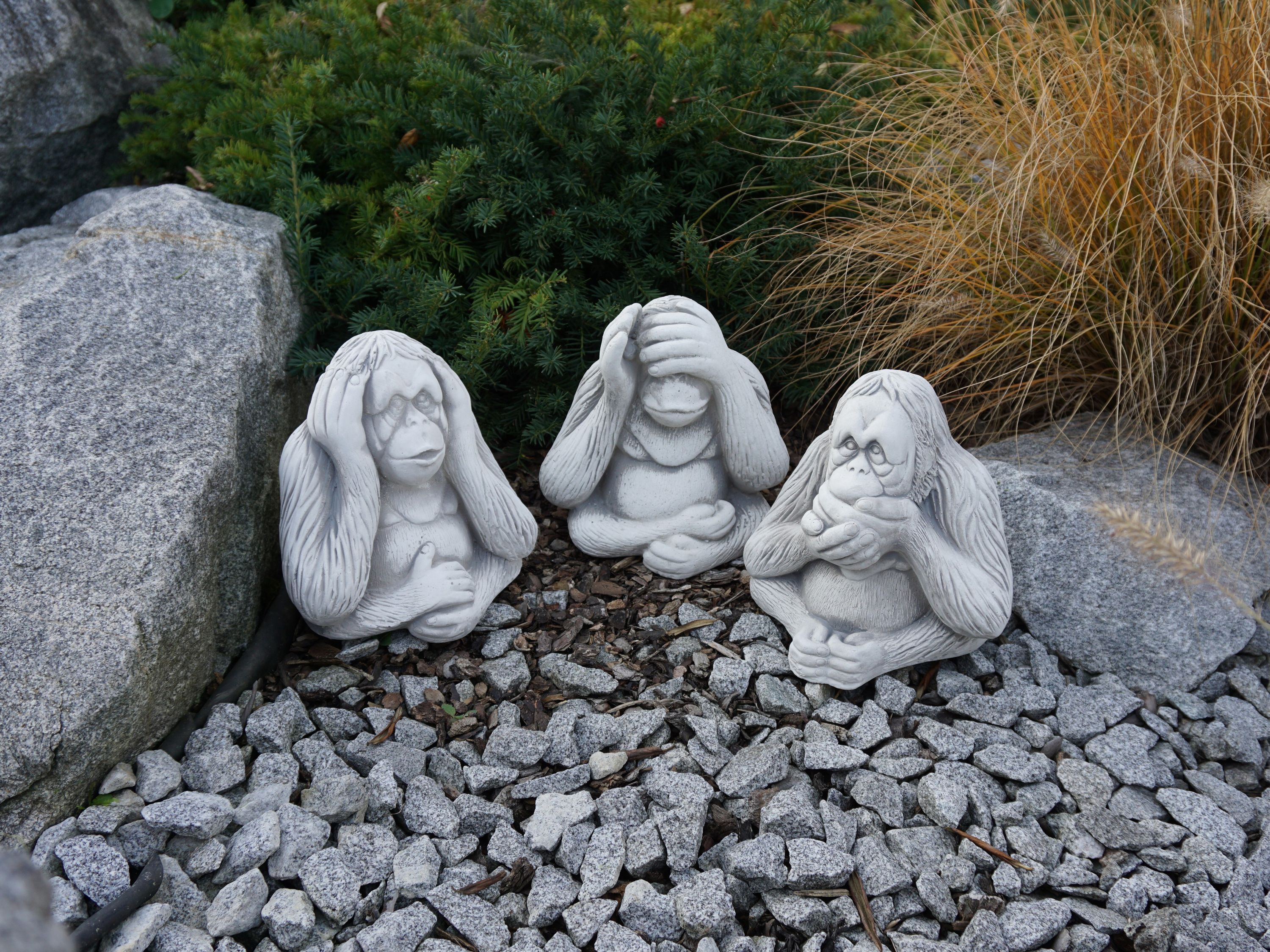 Massive Steinfiguren Drei Affen „nichts sehen, nichts hören, nichts sagen“