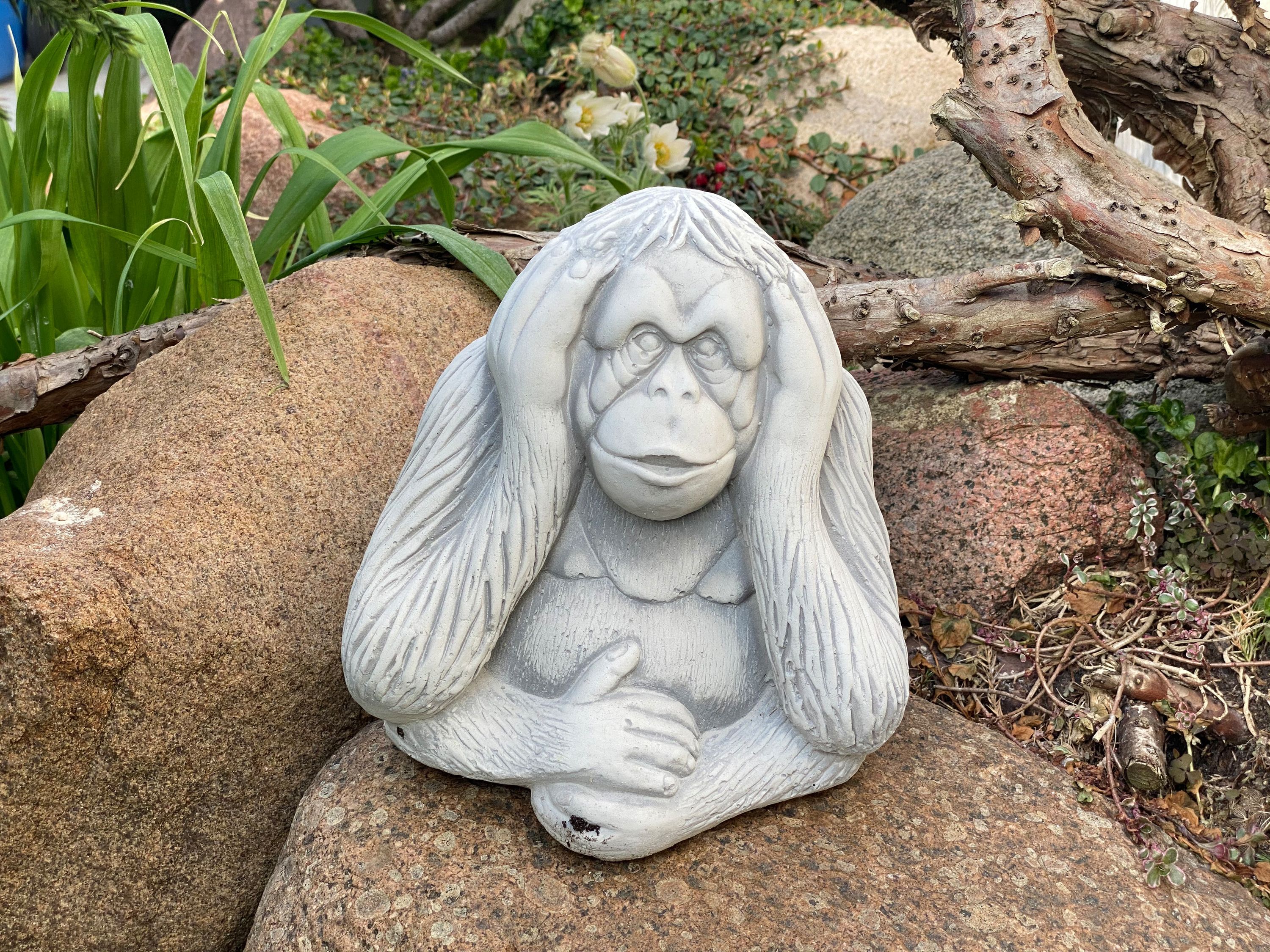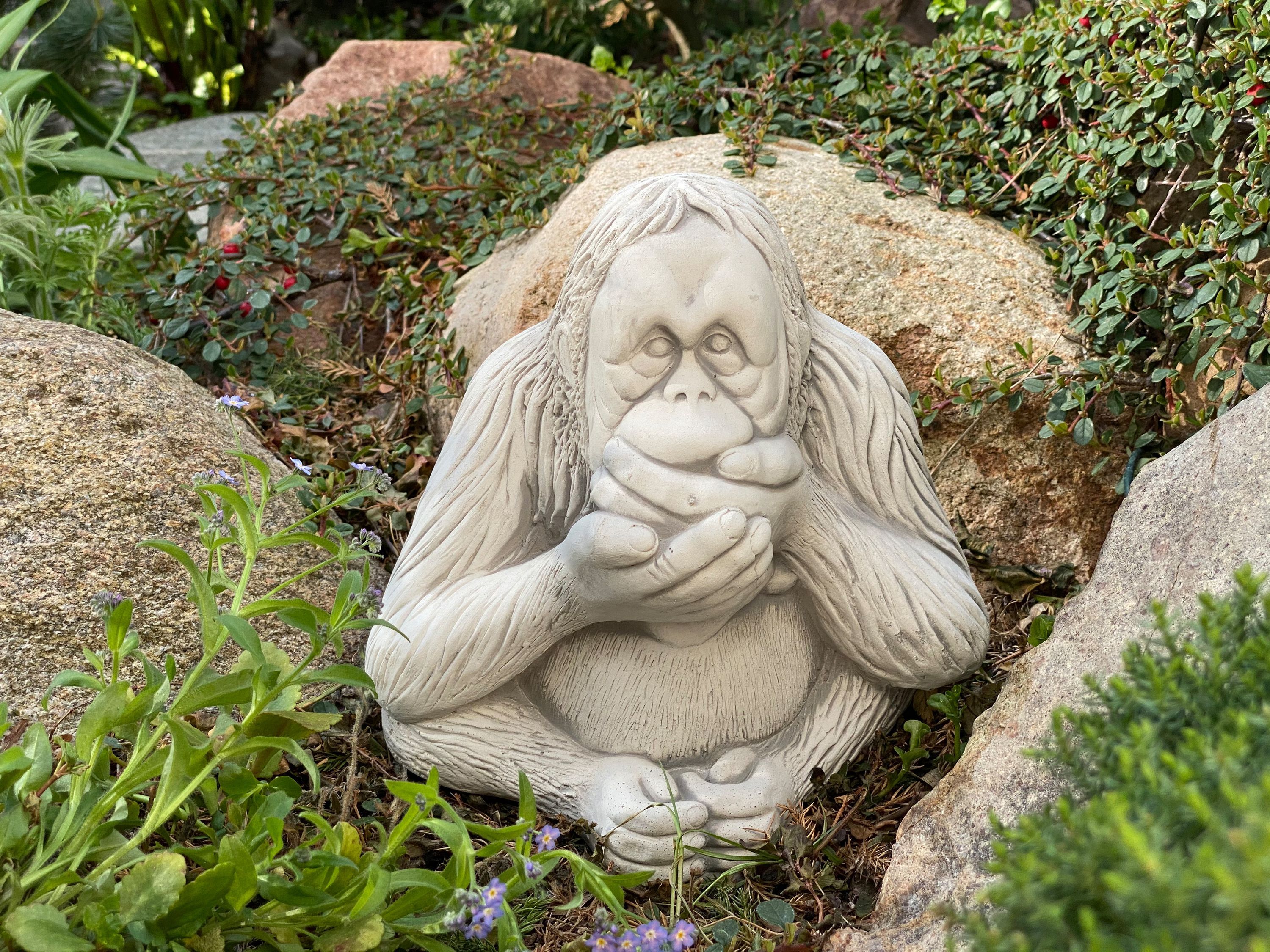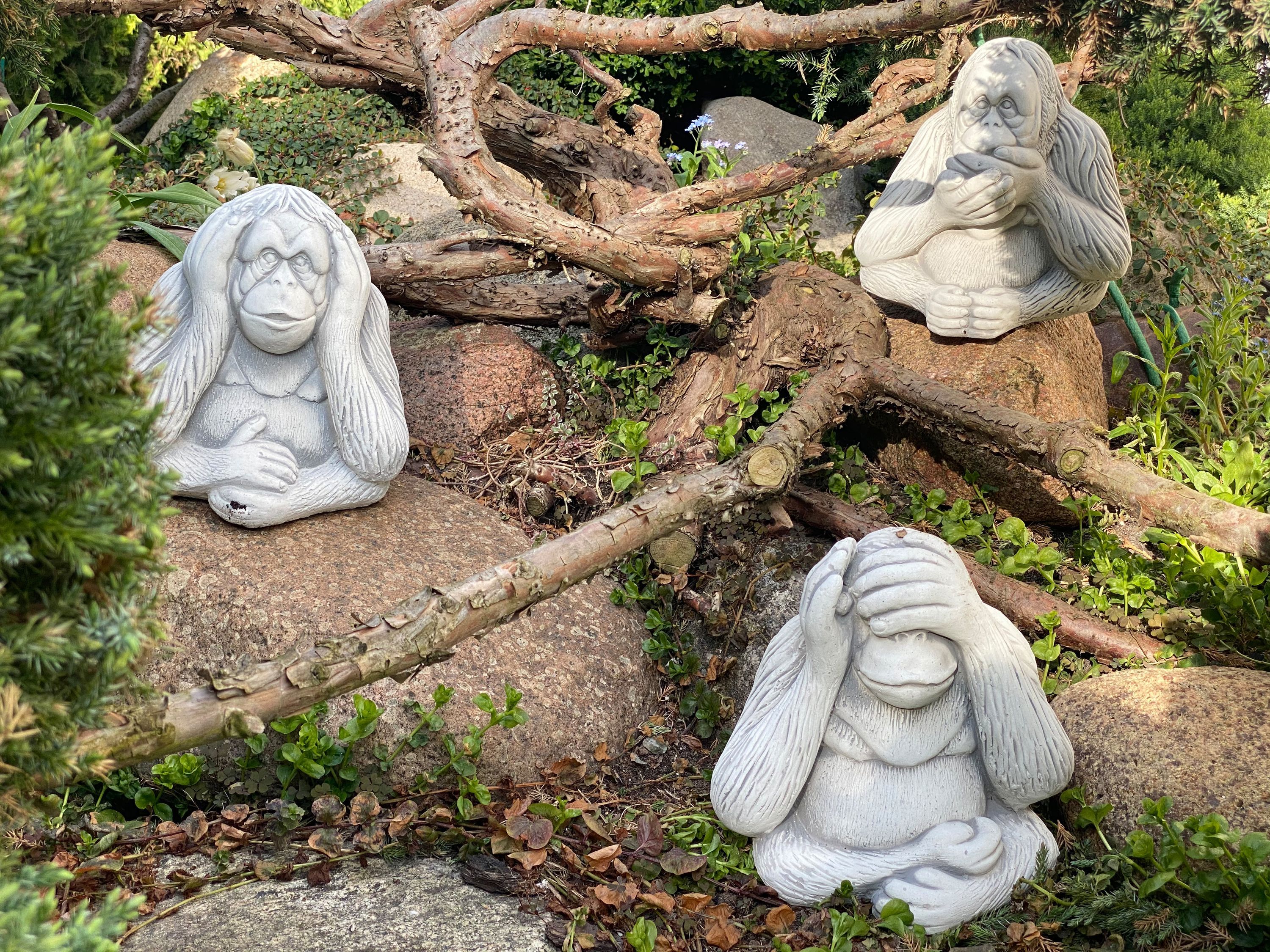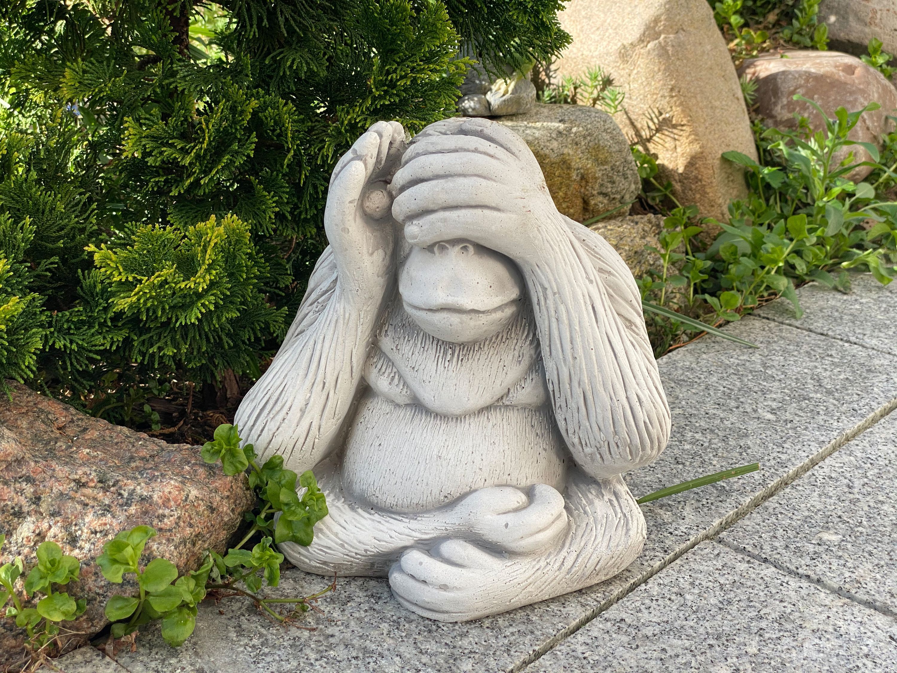 Massive Steinfiguren Drei Affen „nichts sehen, nichts hören, nichts sagen“