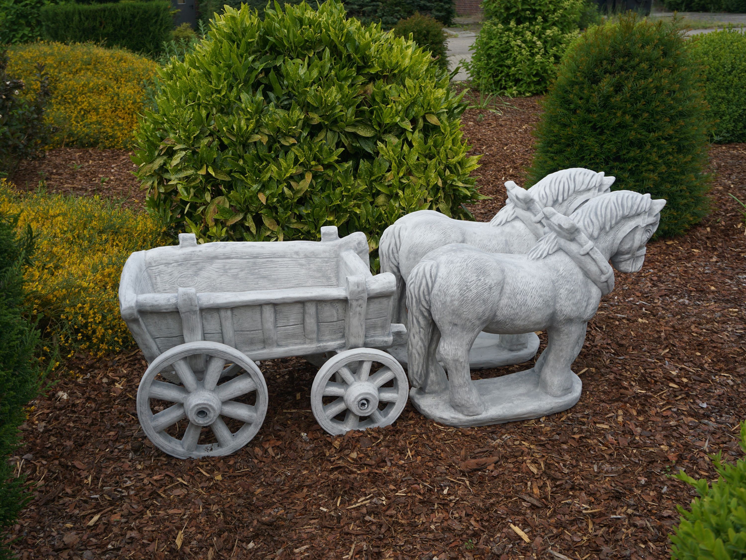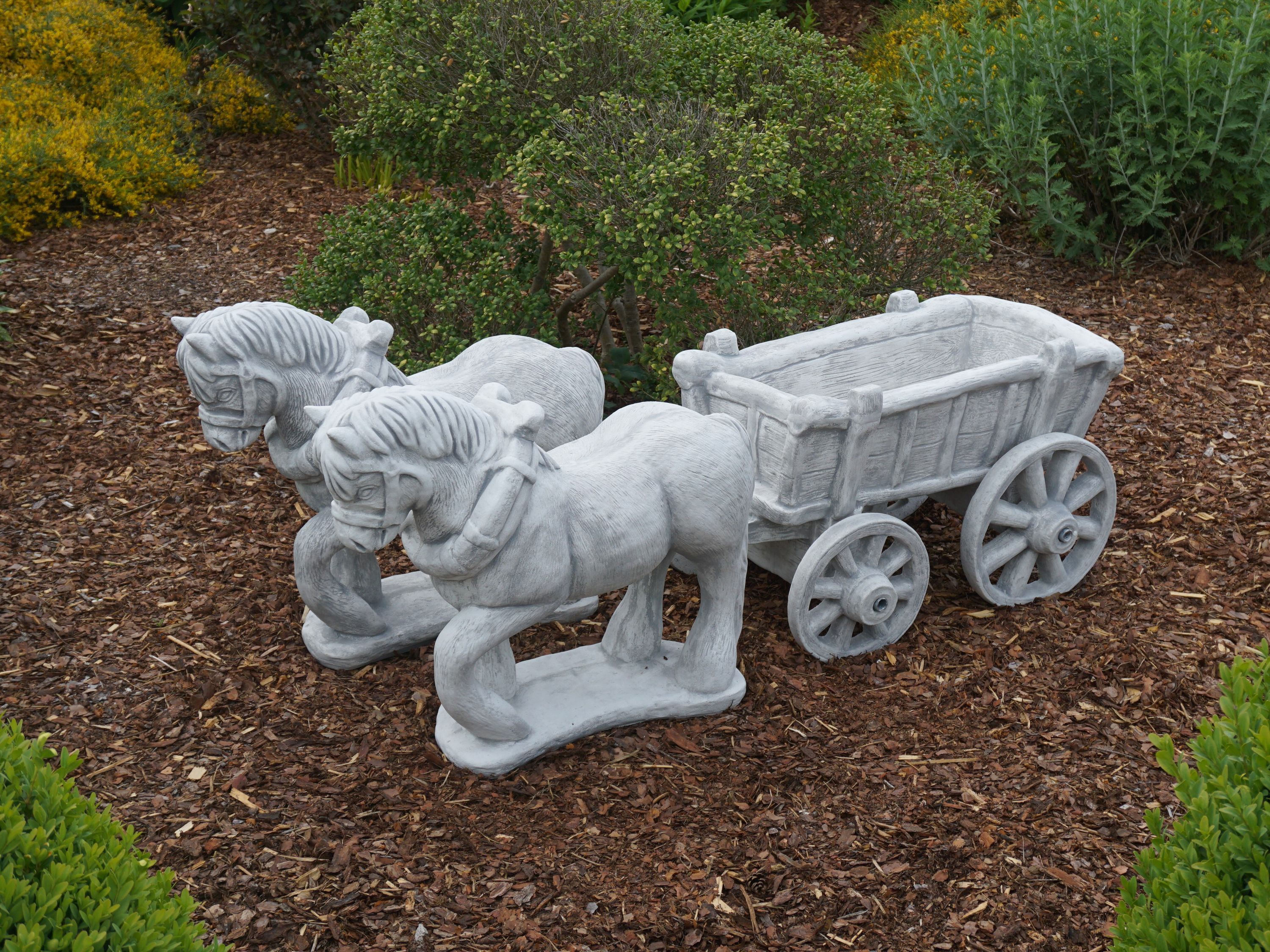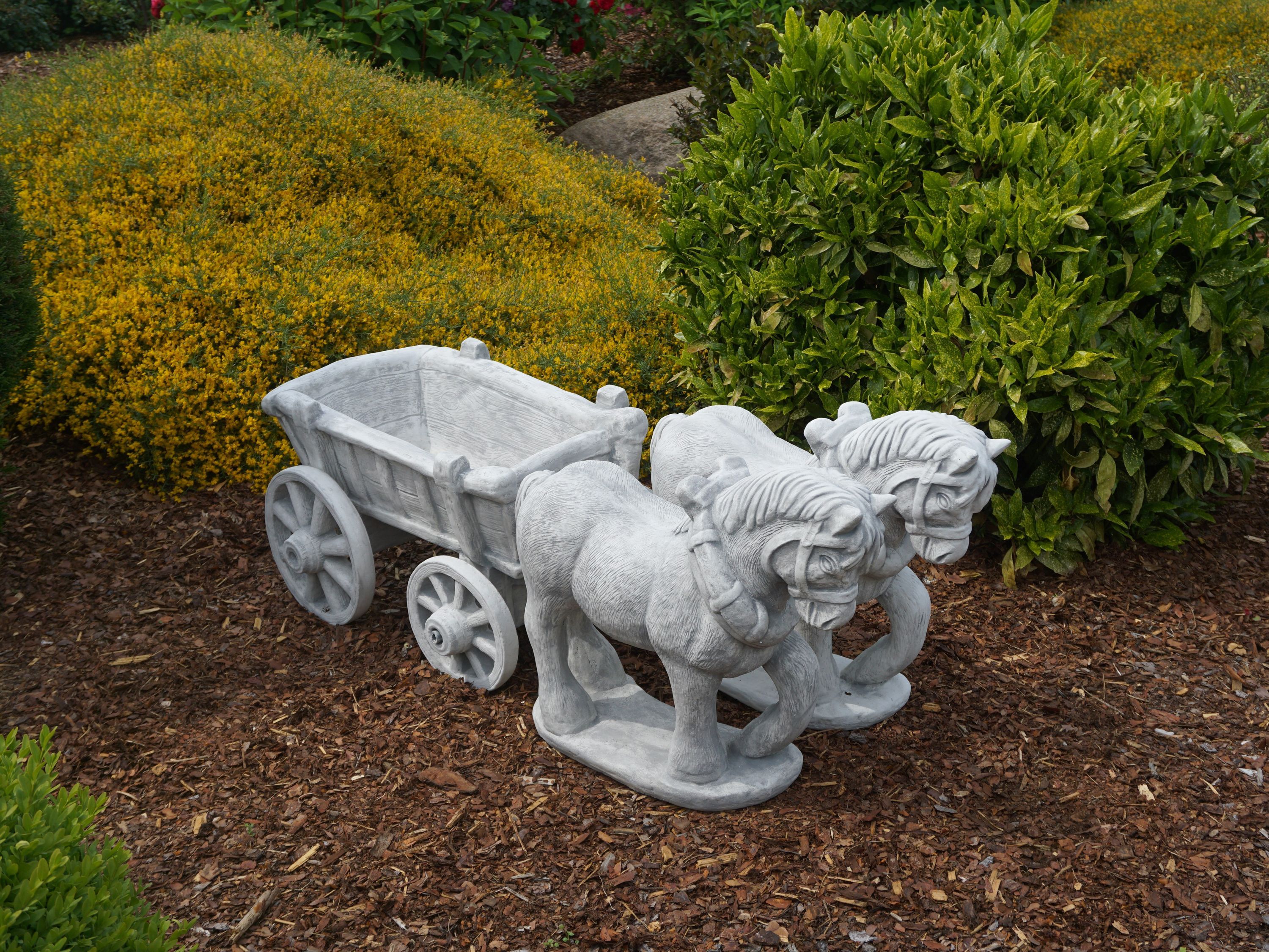 Massive Steinfiguren Eindrucksvolles Pferdegespann Pferde Wagen Pflanzgefäß Trog