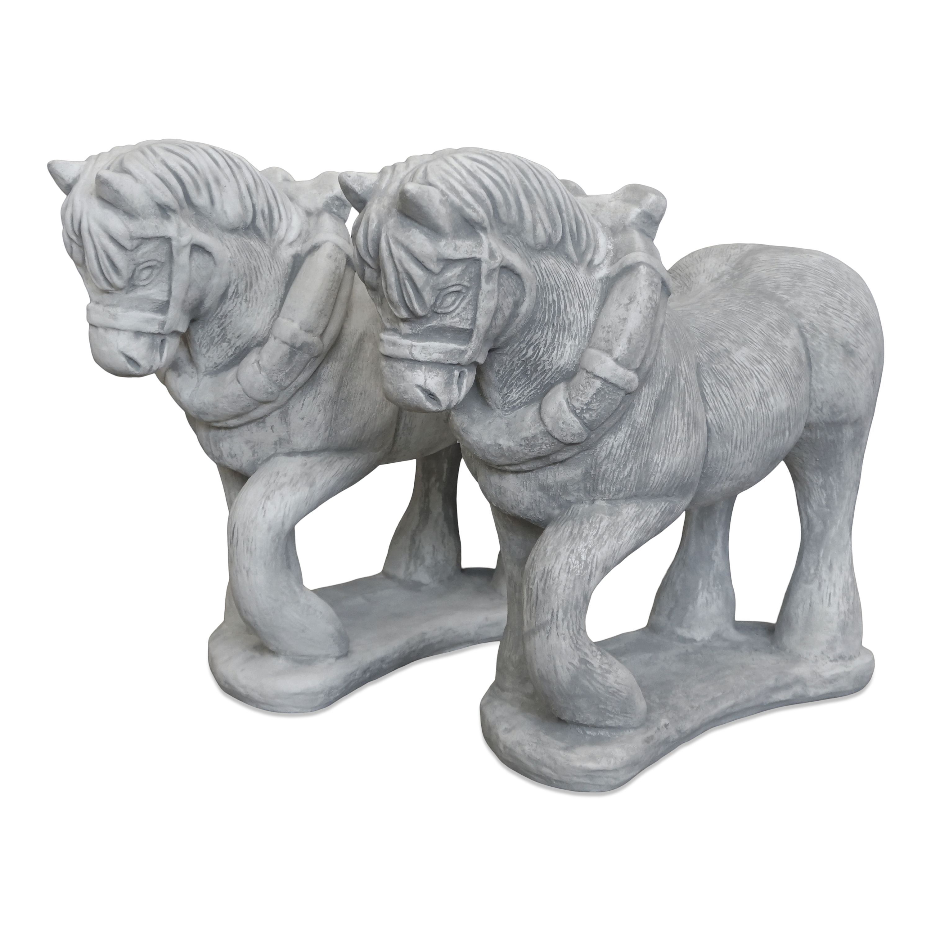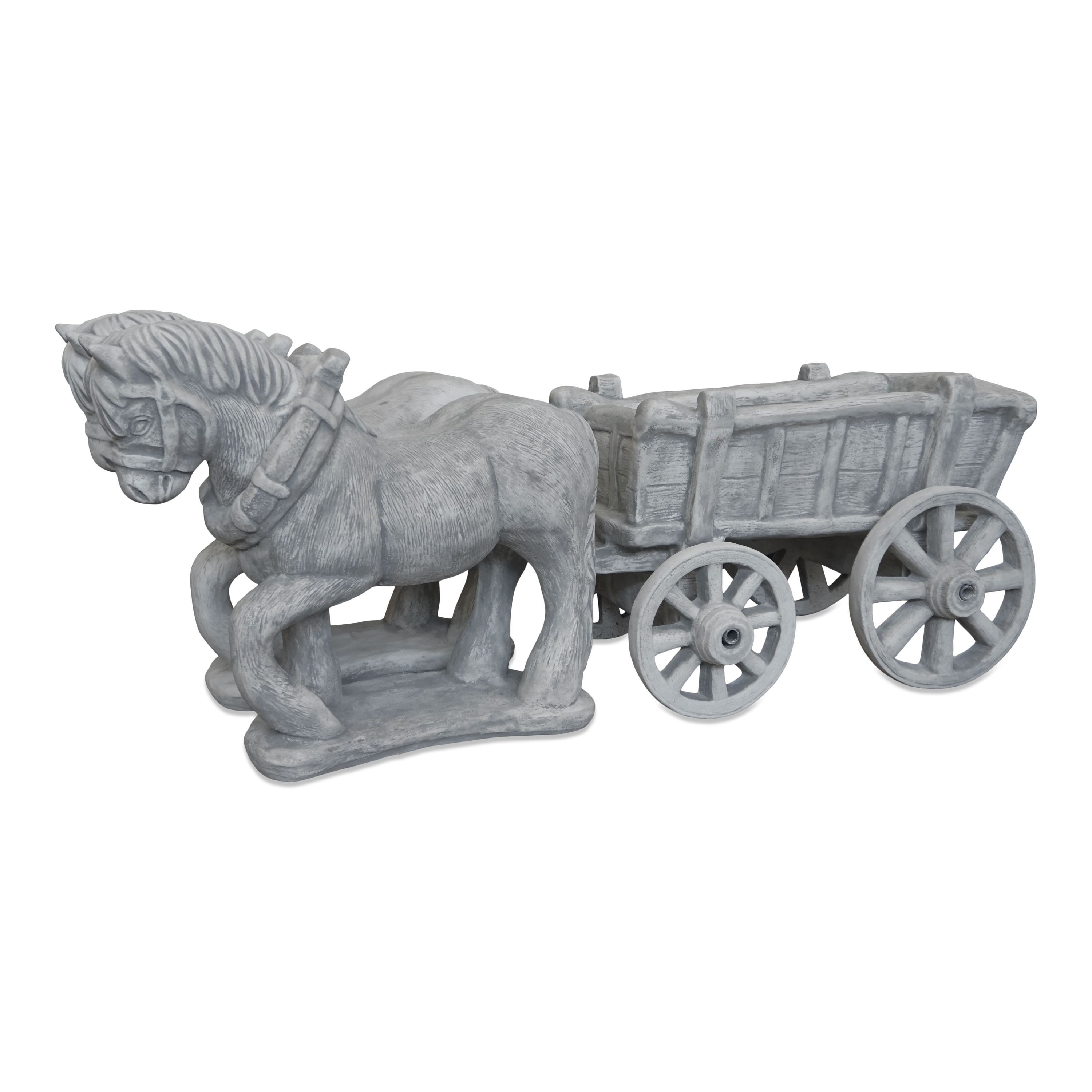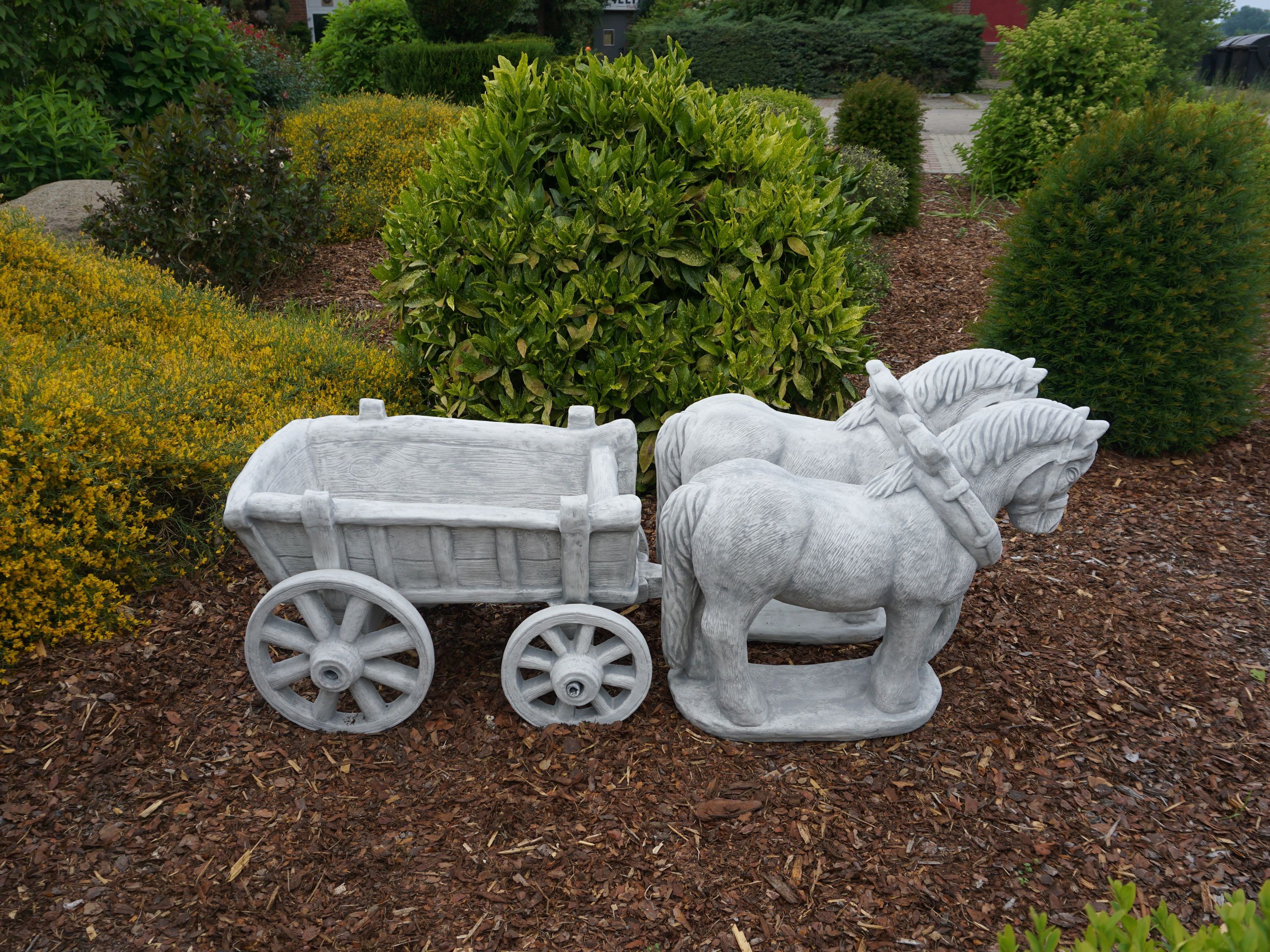 Massive Steinfiguren Eindrucksvolles Pferdegespann Pferde Wagen Pflanzgefäß Trog