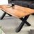 Massiver Couchtisch ARBOL 120cm Akazie natural Baumkante X-Metallgestell