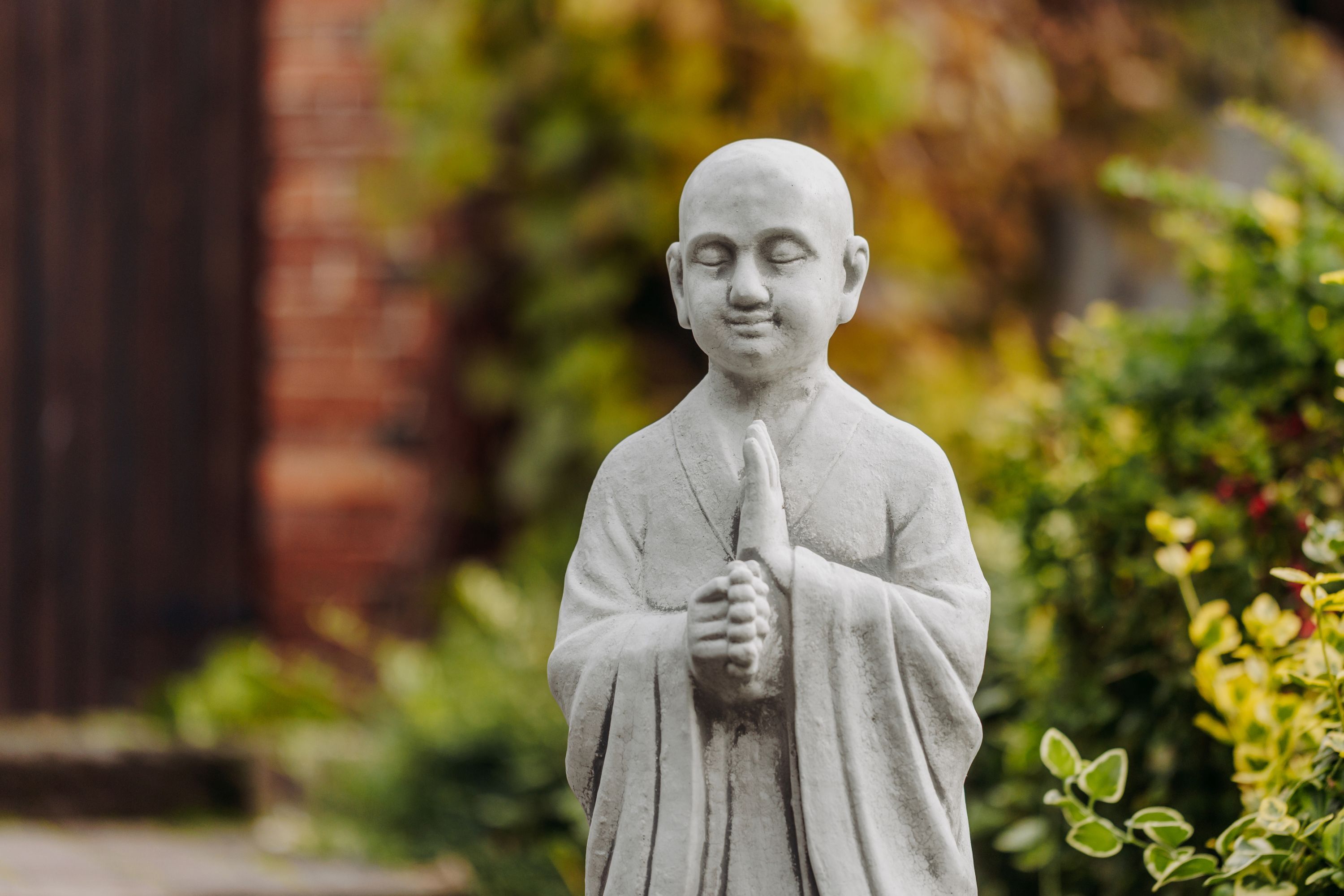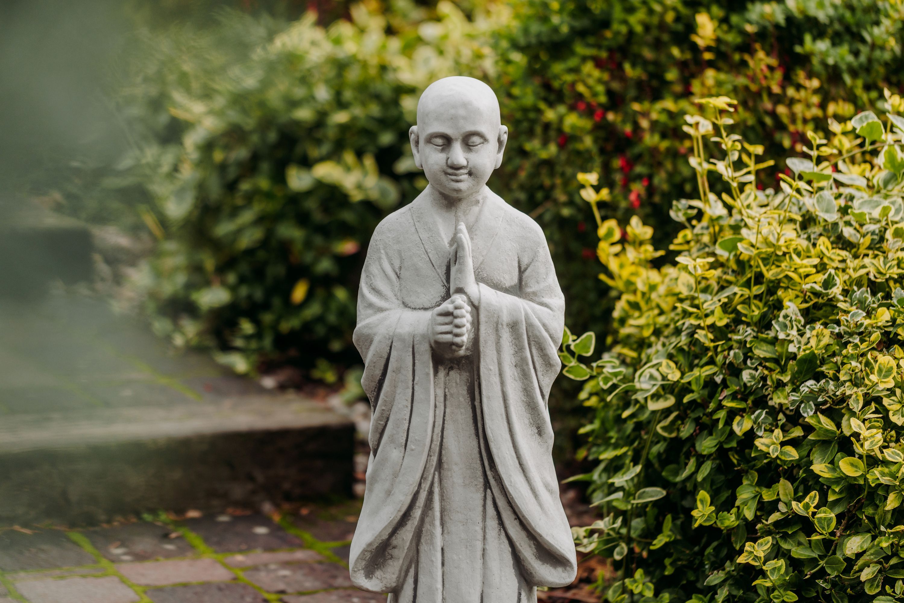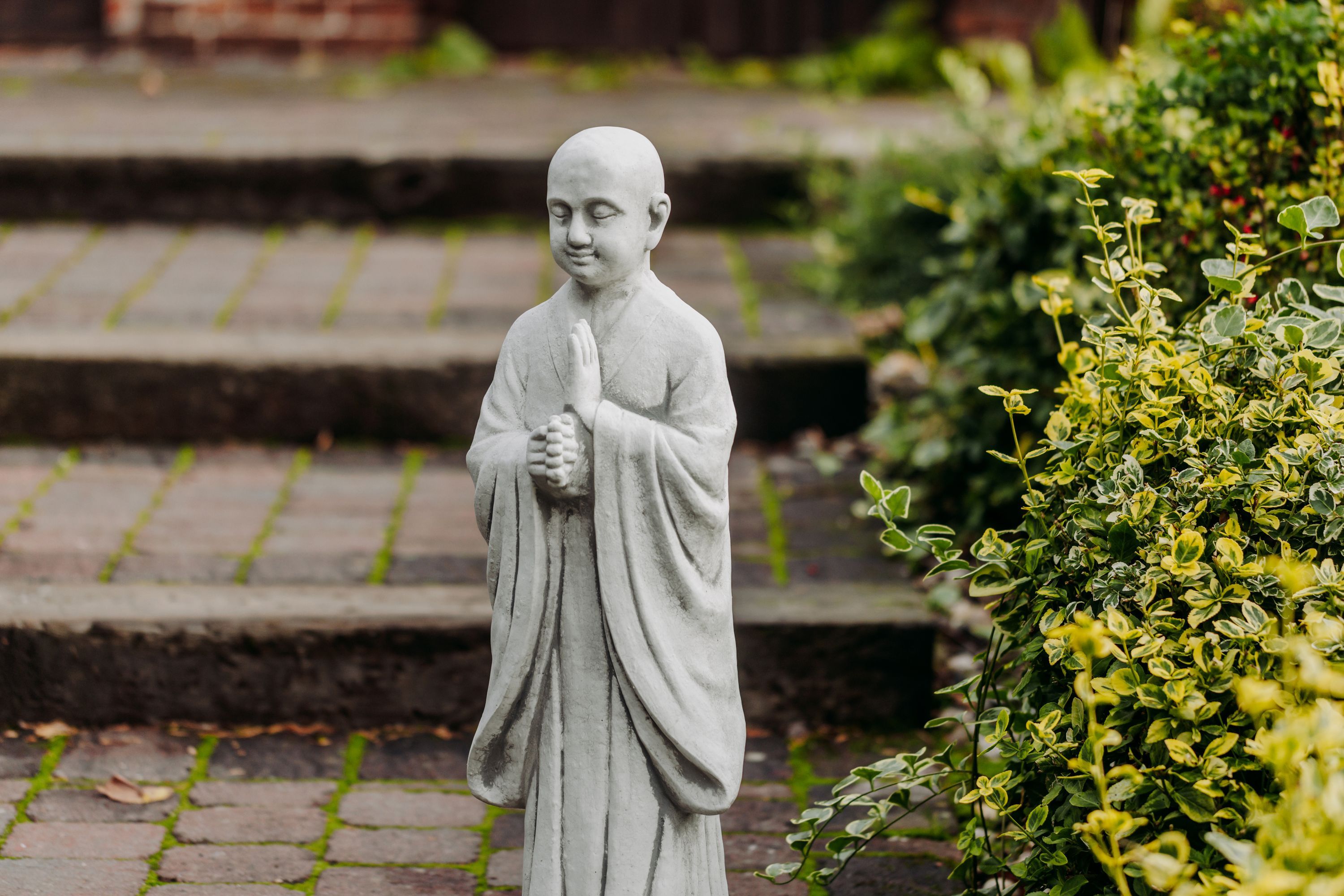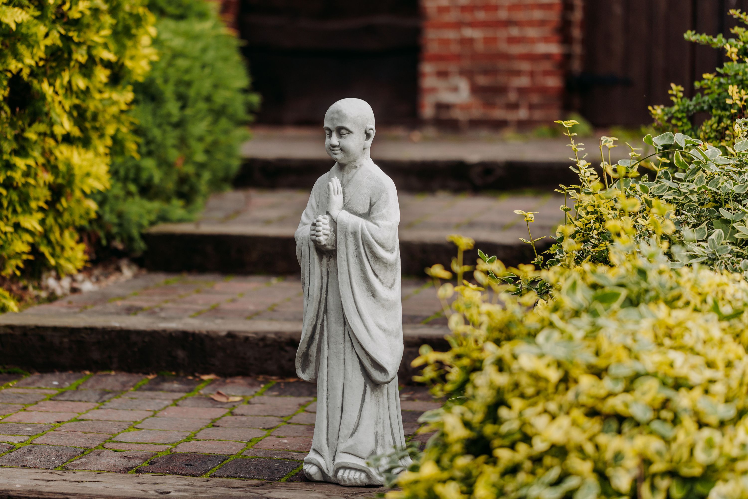 Massiver großer Buddhistischer Mönch Farbe grau Buddha aus Steinguss frostfest