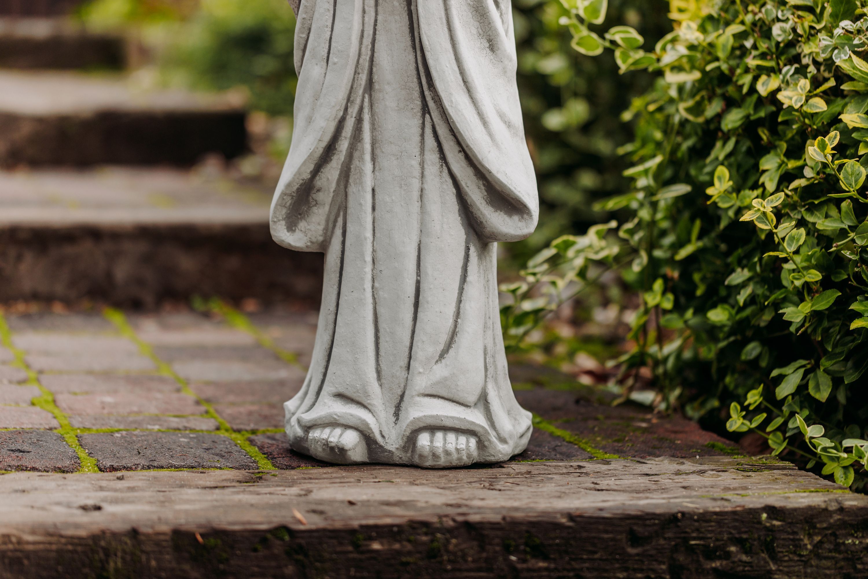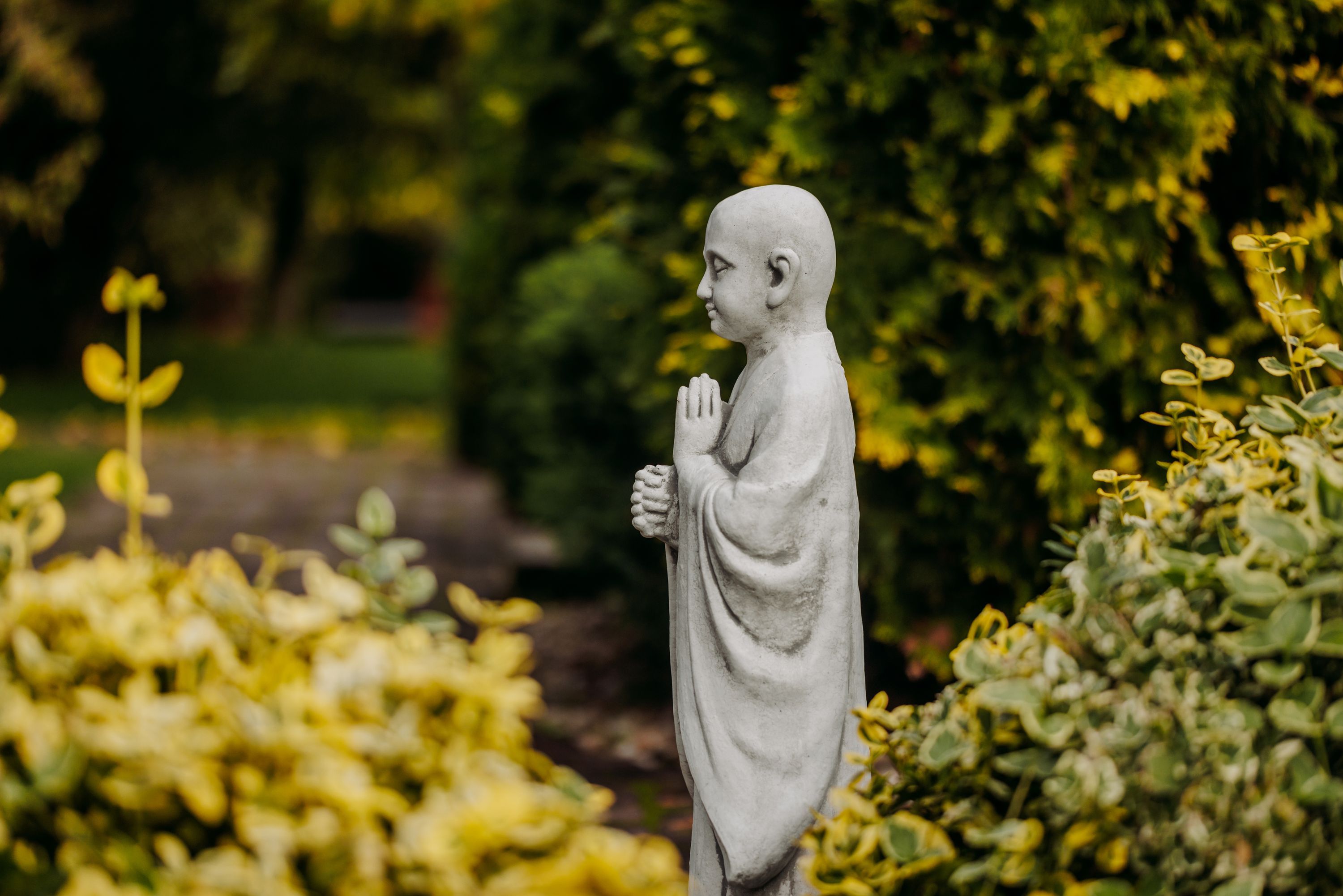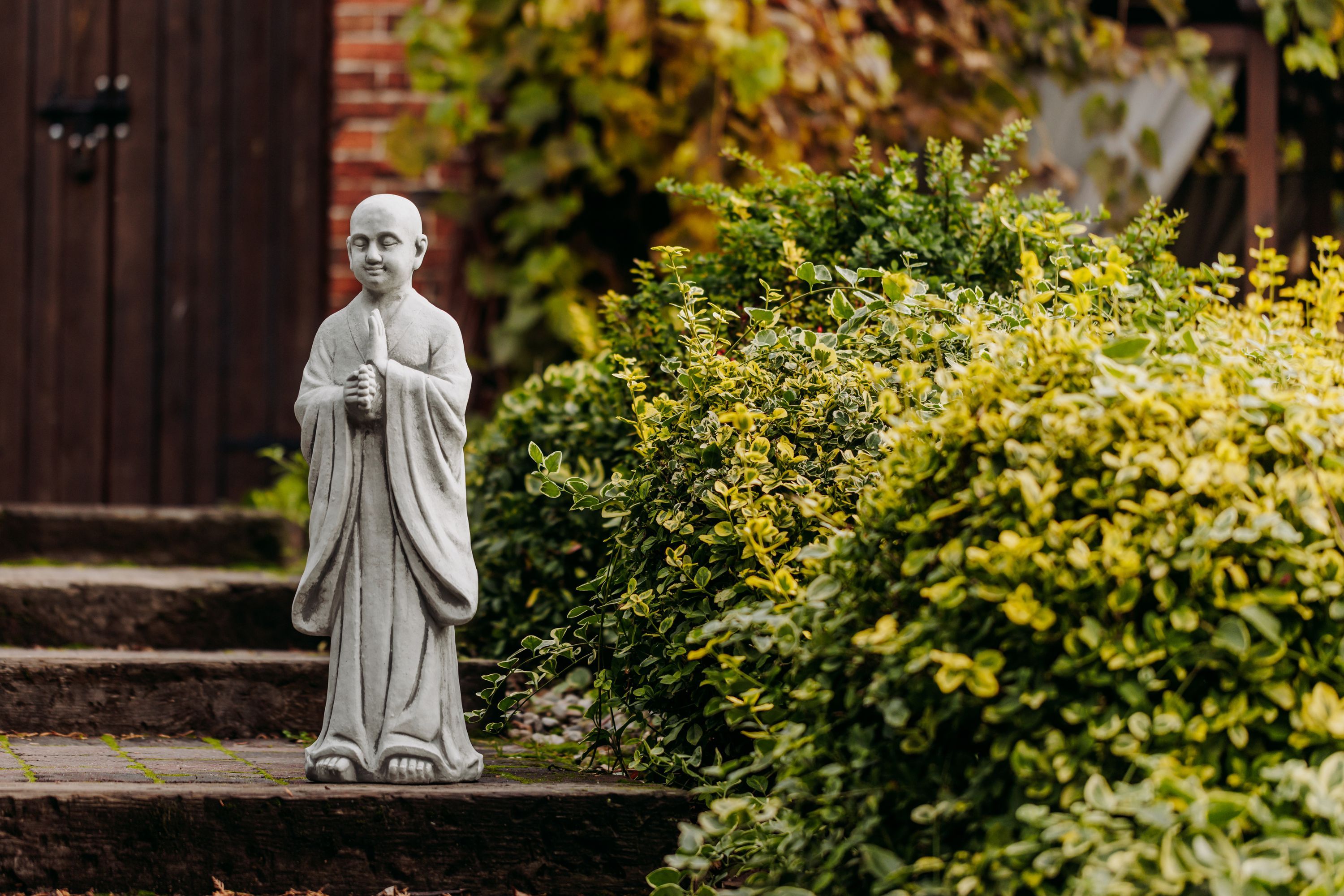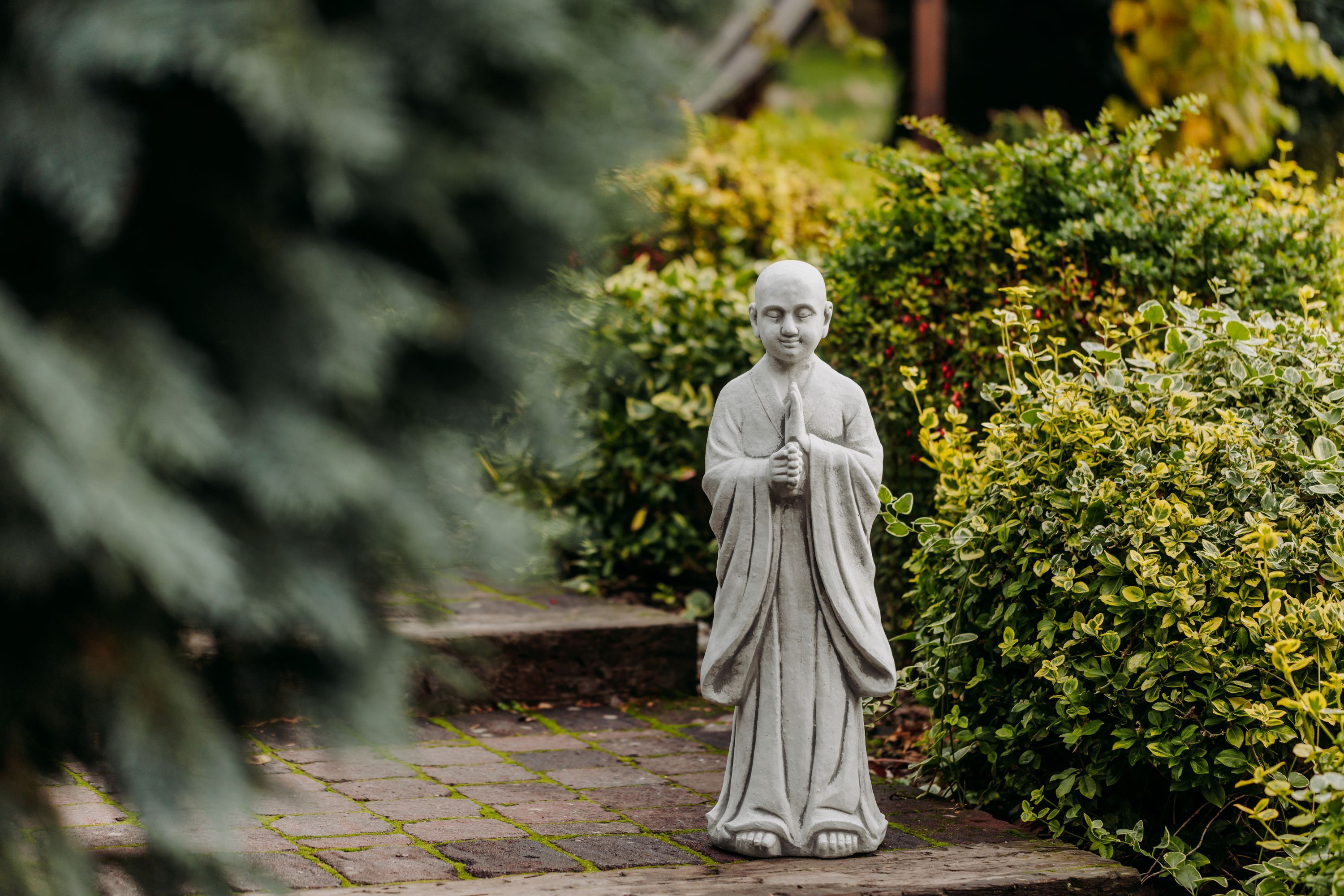 Massiver großer Buddhistischer Mönch Farbe grau Buddha aus Steinguss frostfest