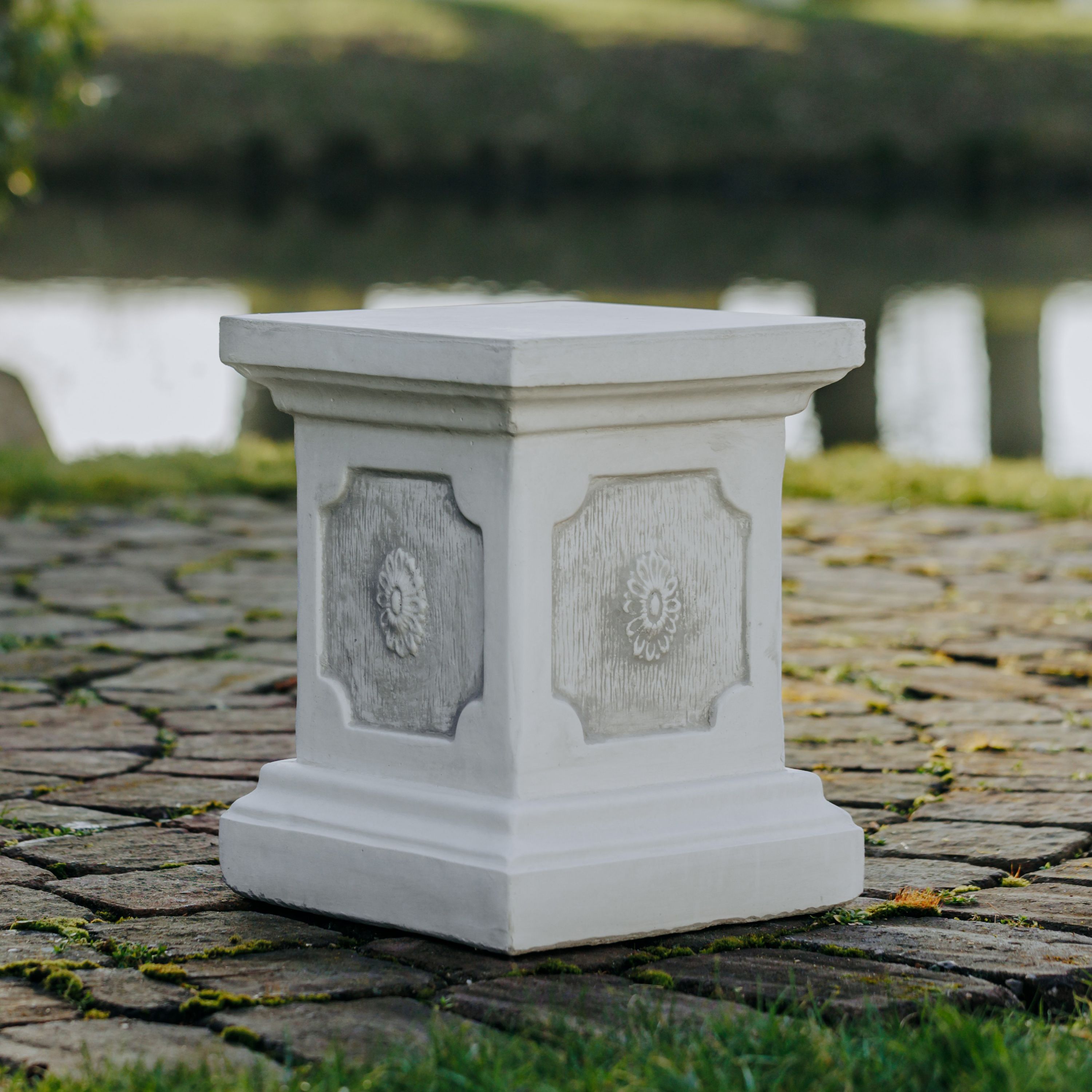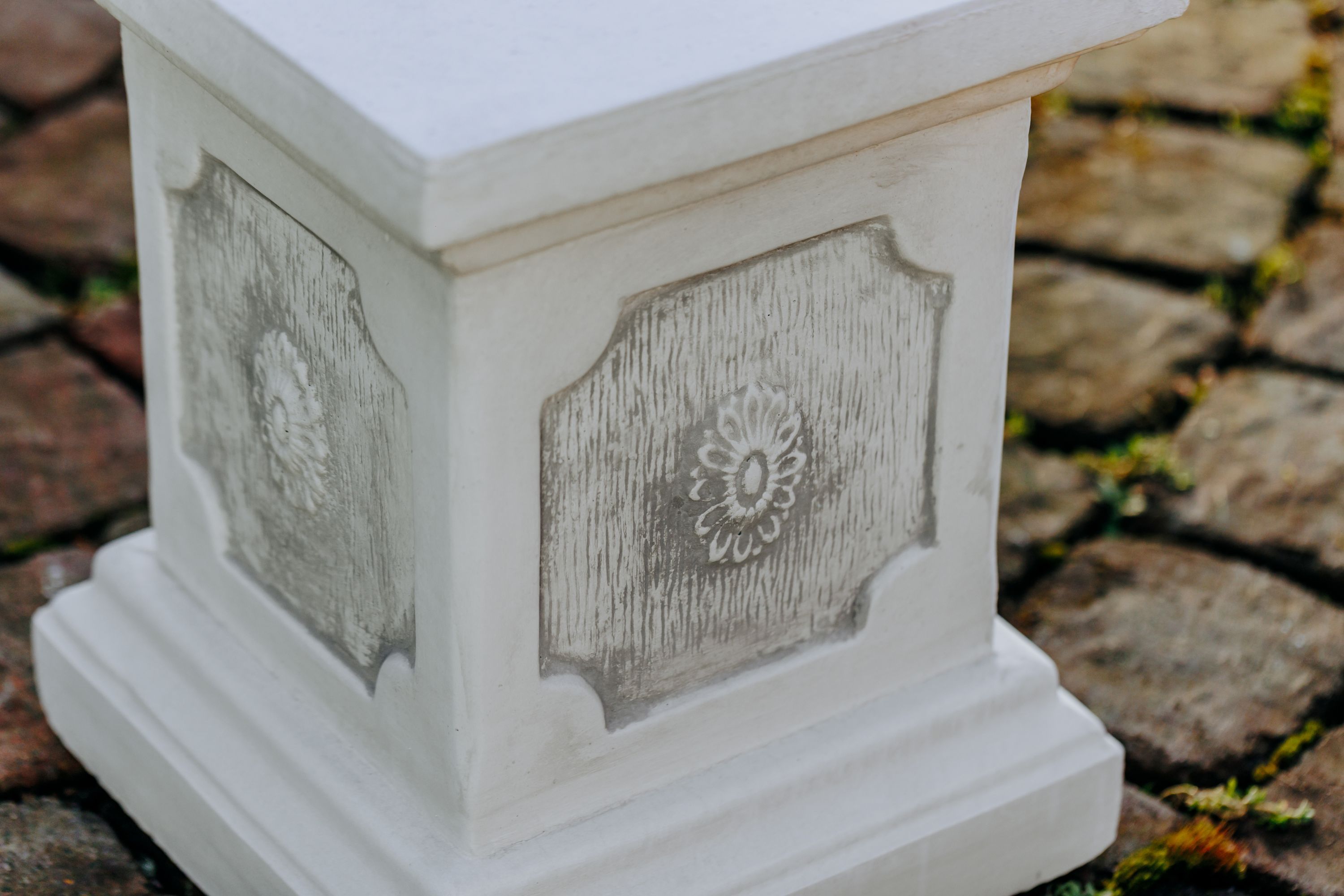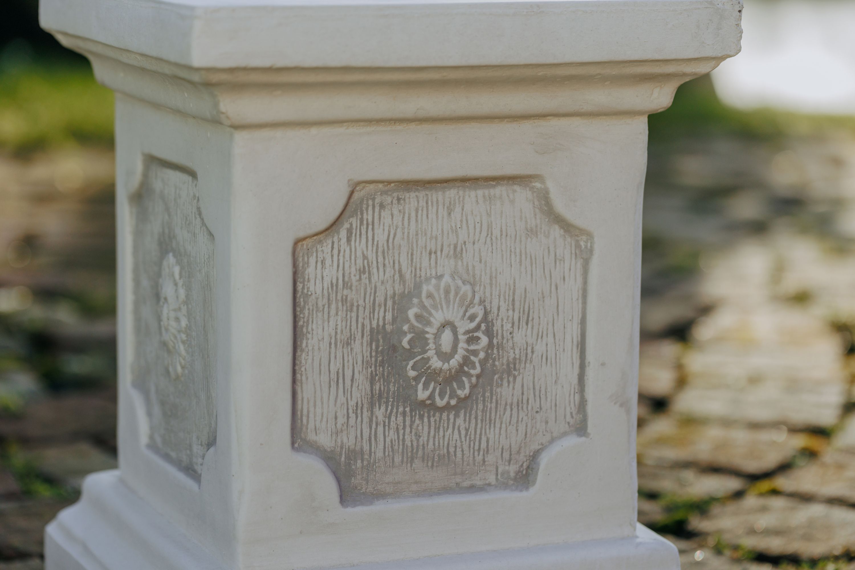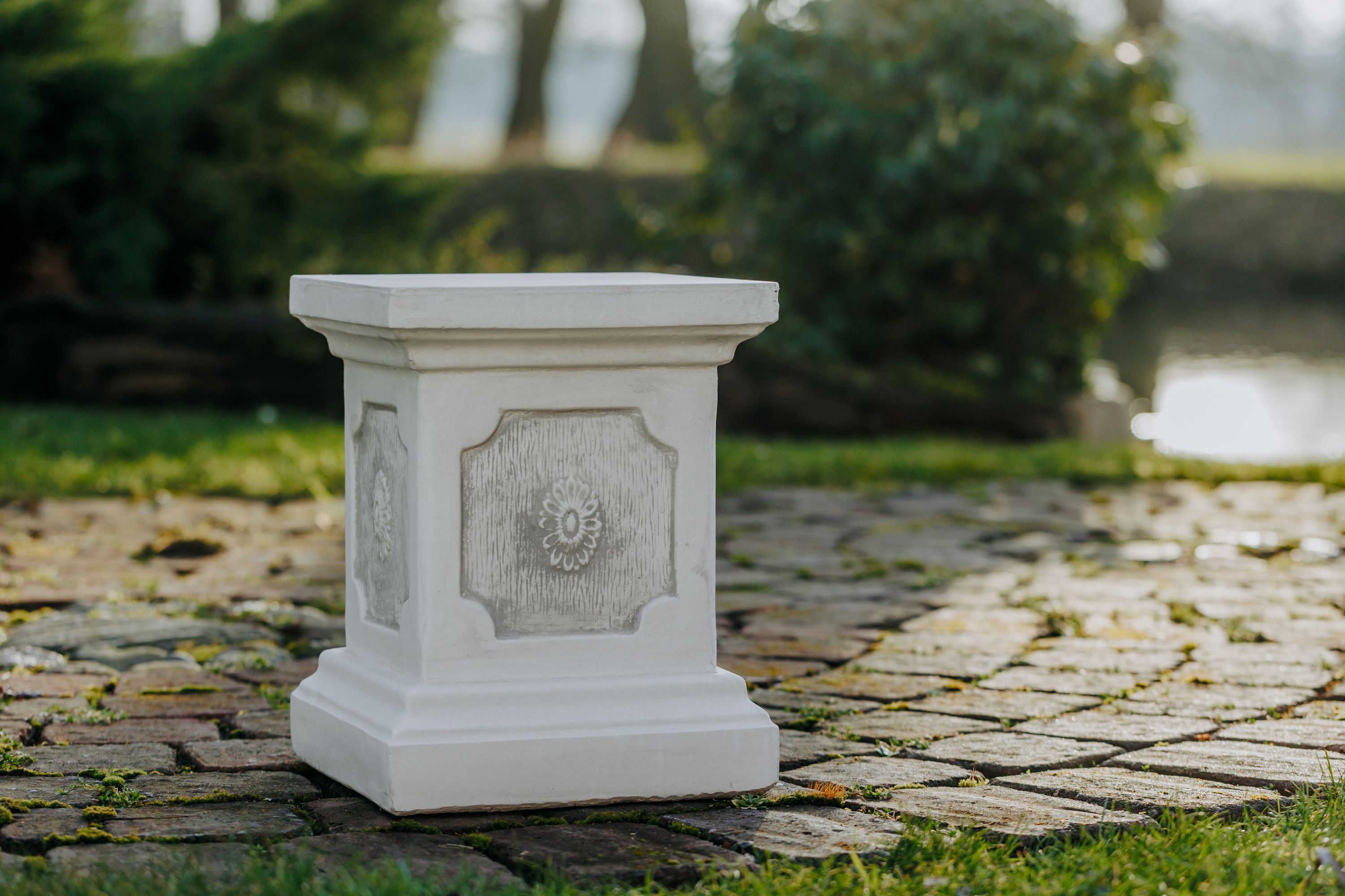 Massiver großer Stein Sockel Podest Säule Statue Motiv Blume Steinguss frostfest