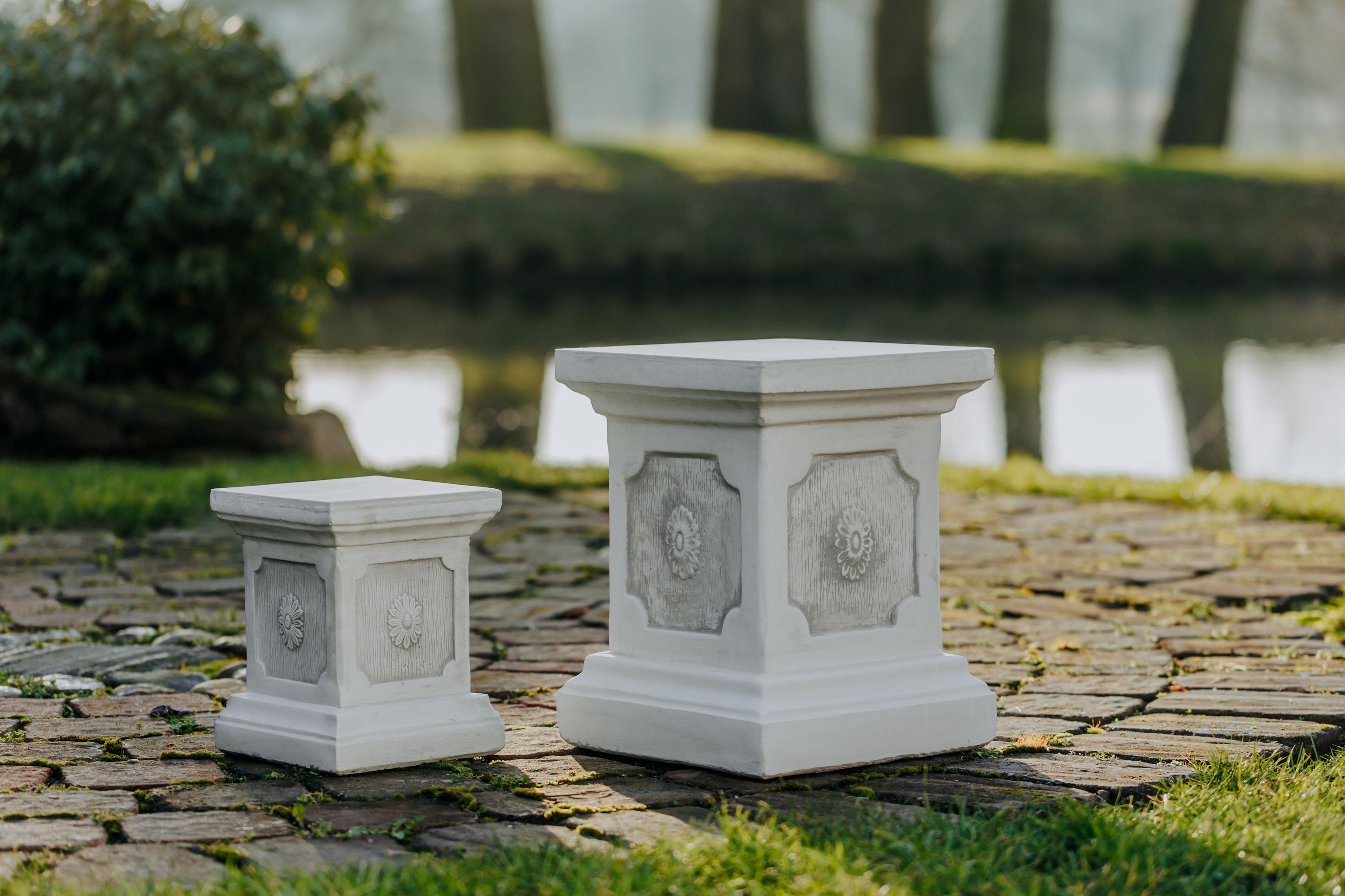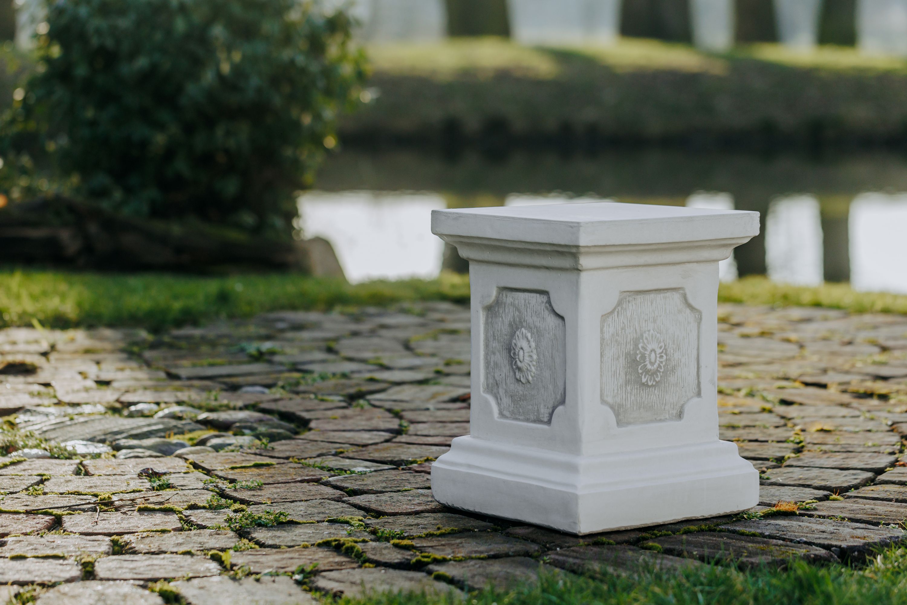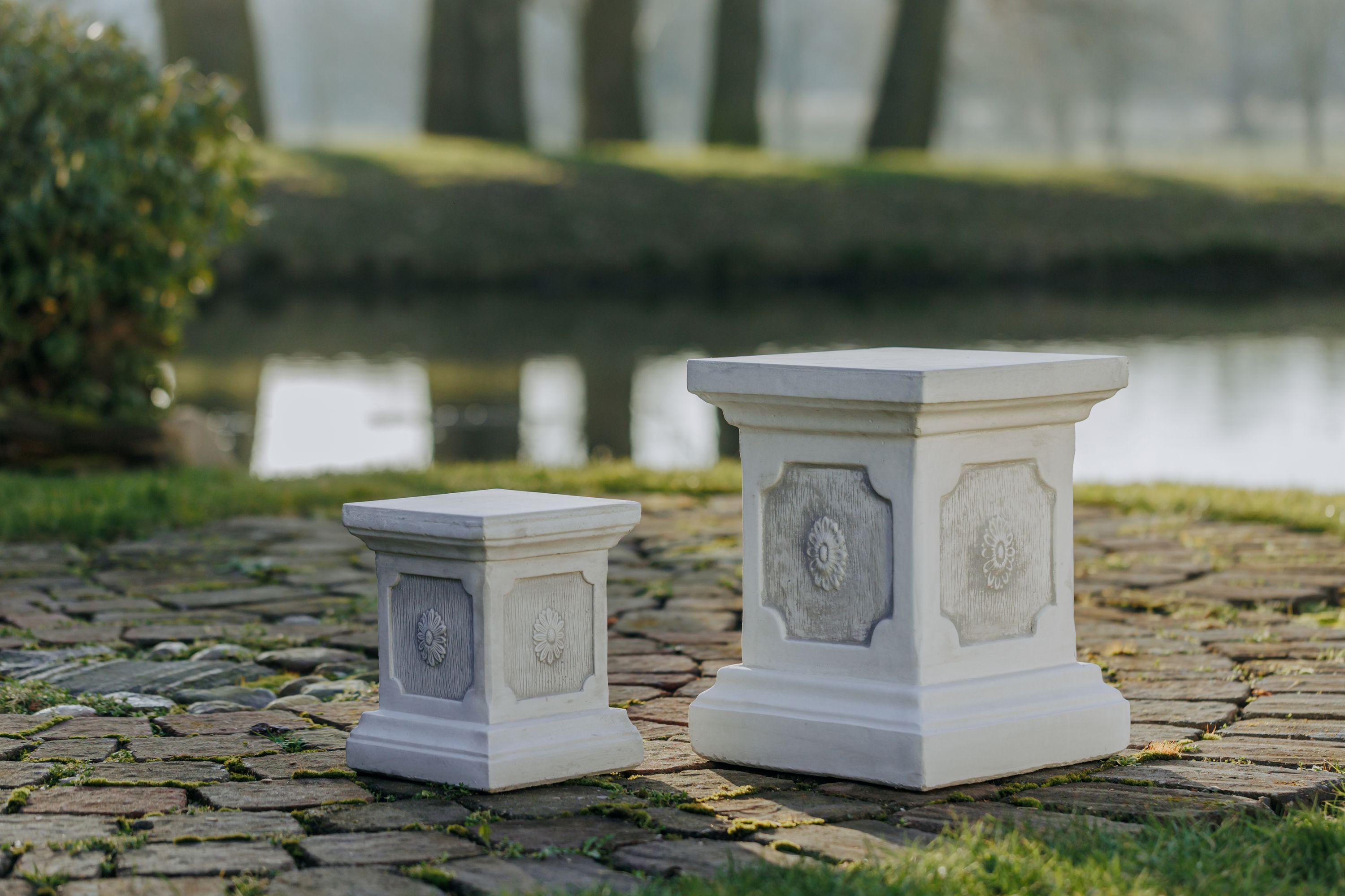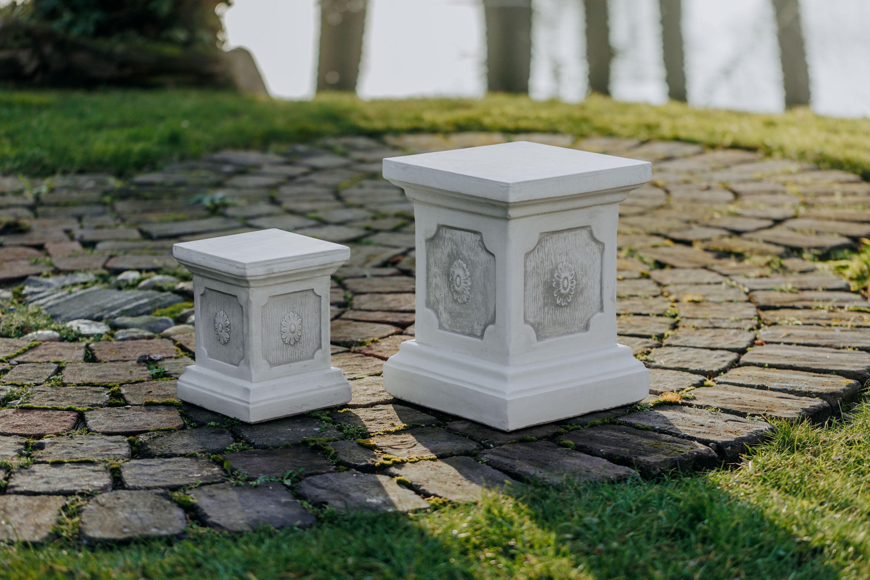 Massiver großer Stein Sockel Podest Säule Statue Motiv Blume Steinguss frostfest