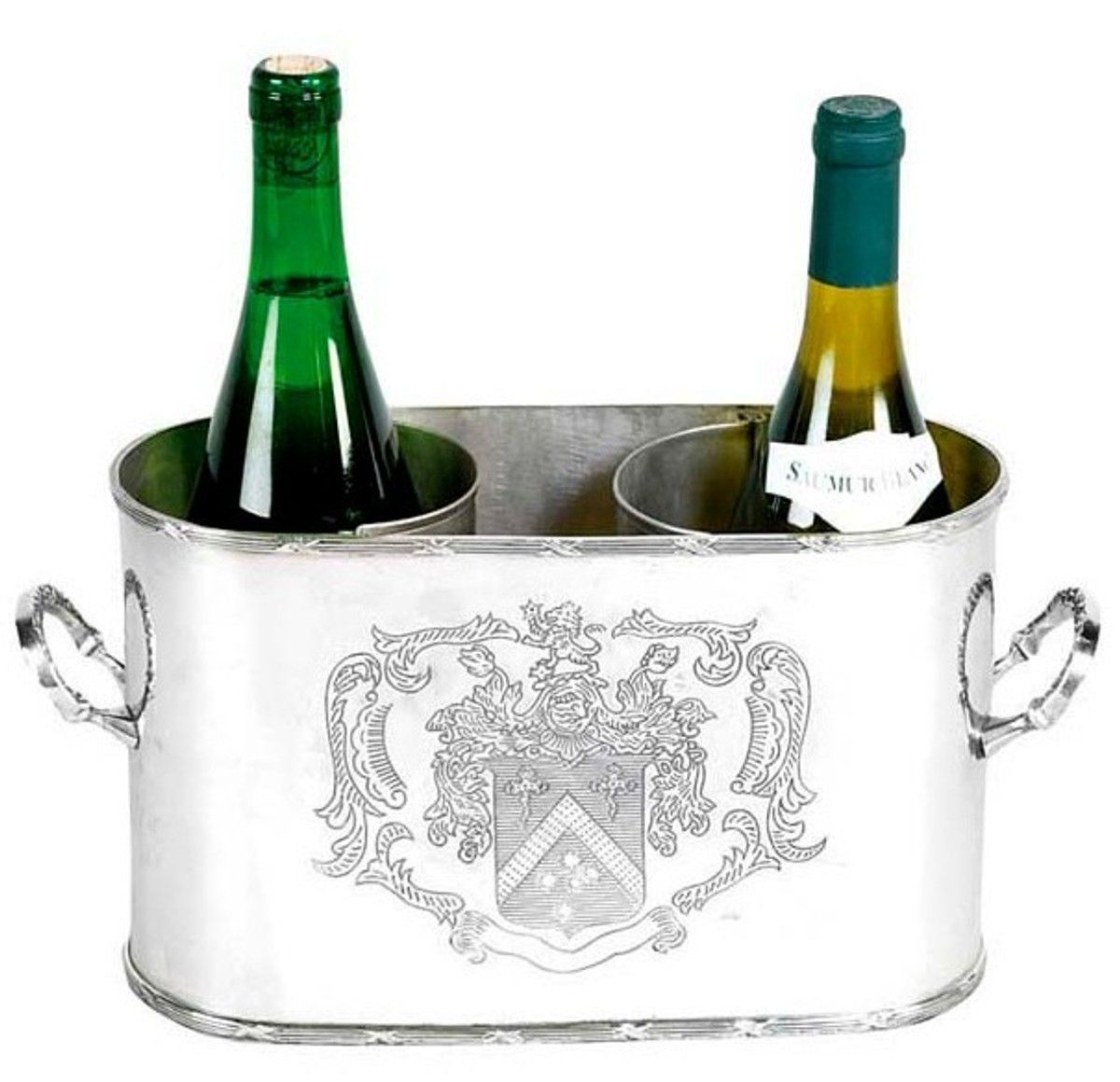 Massiver Luxus Tisch Weinflaschen Halter Weinkühler 2 Weinflaschen Nickel Finish - Ca
