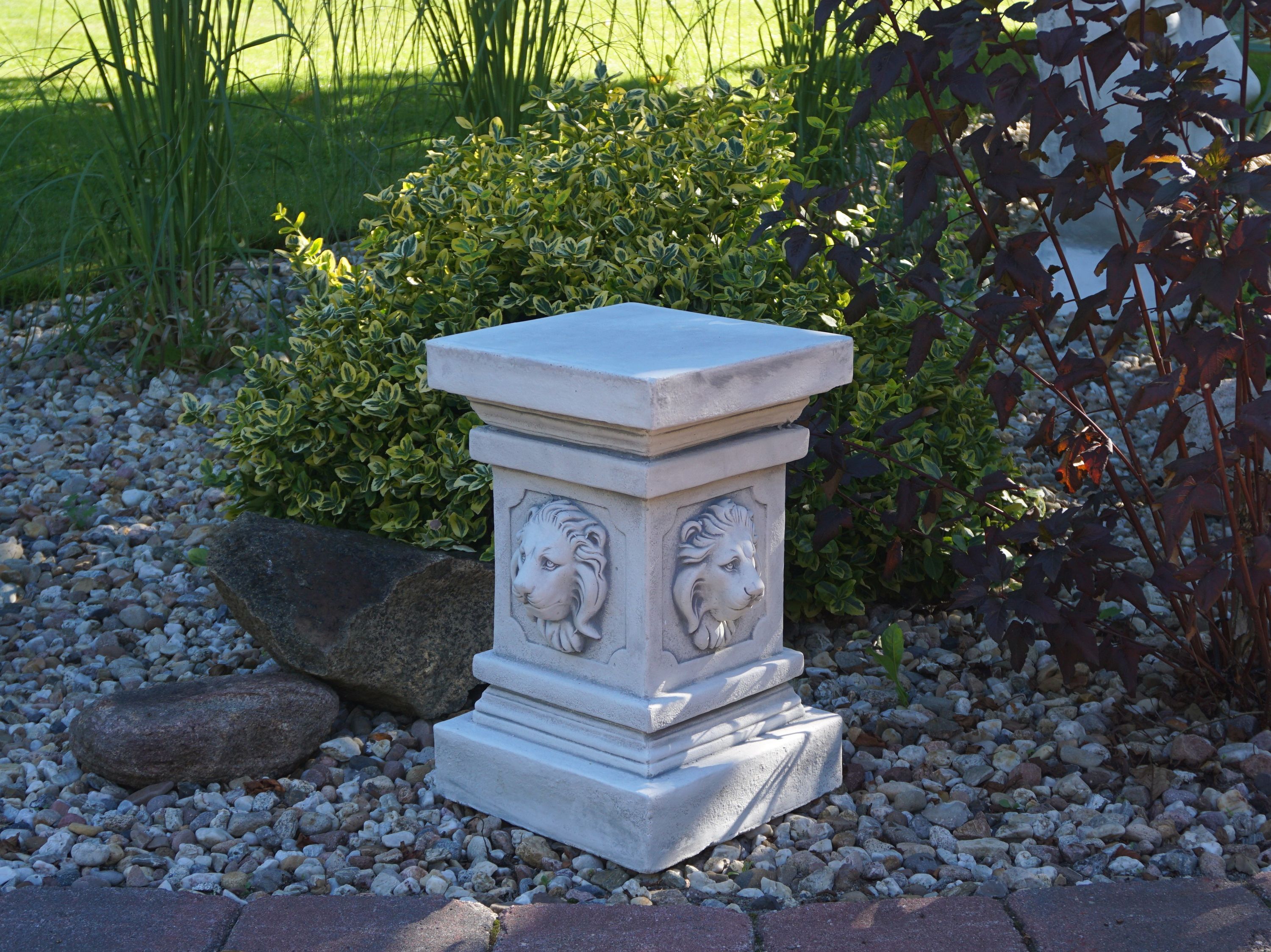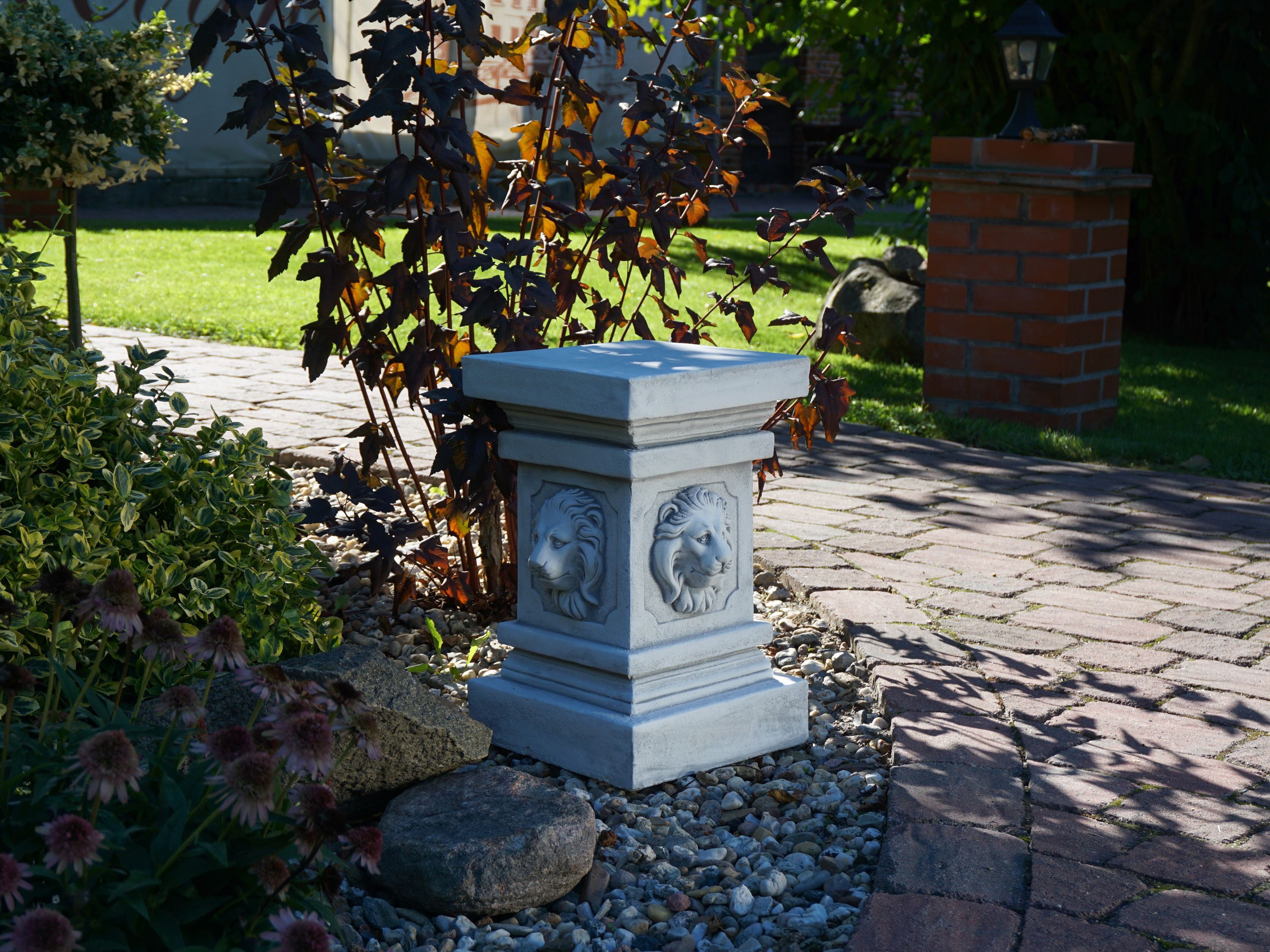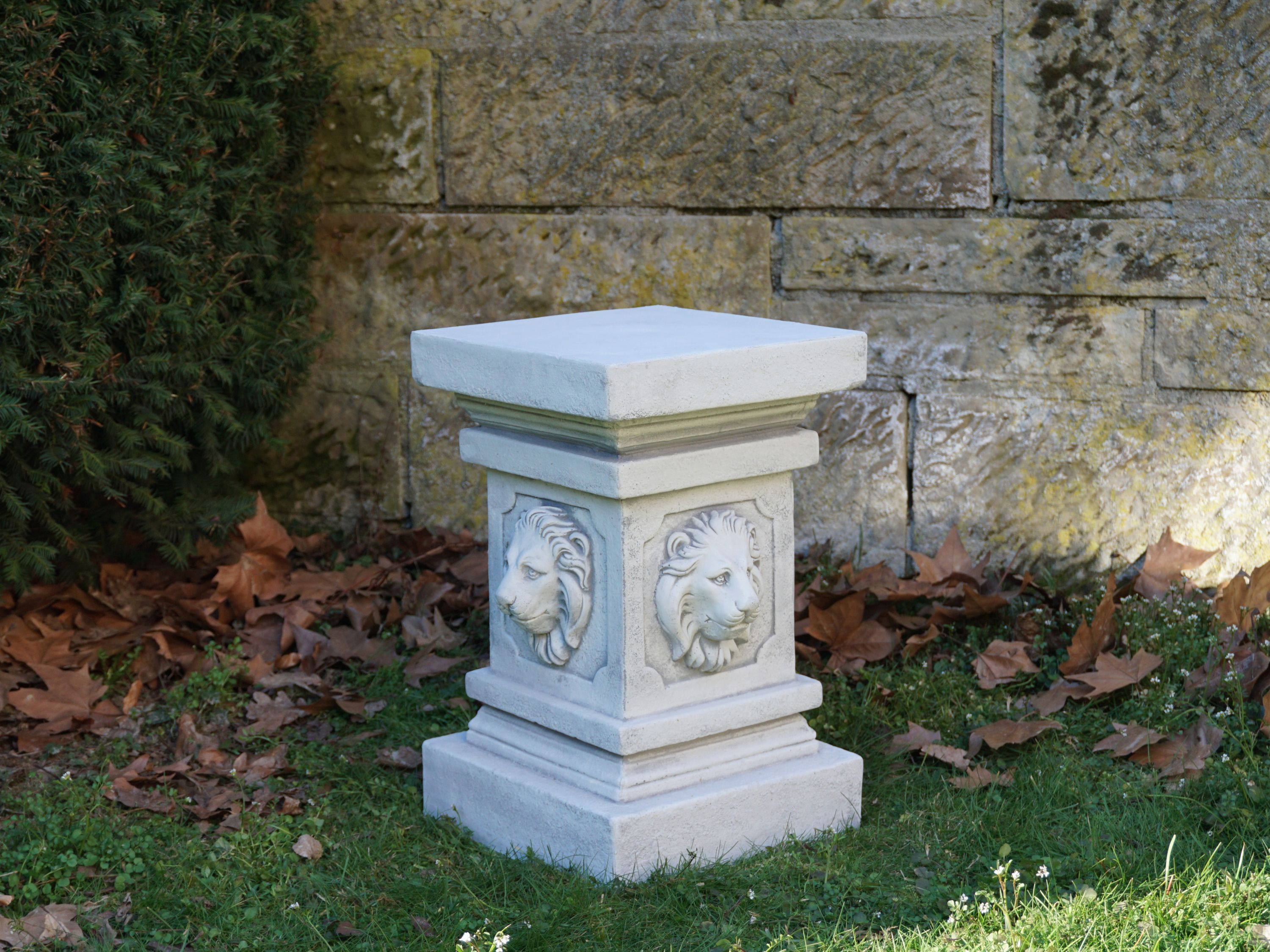 Massiver Stein Sockel Podest Säule groß mit Löwenkopf Löwe Steinguss frostfest