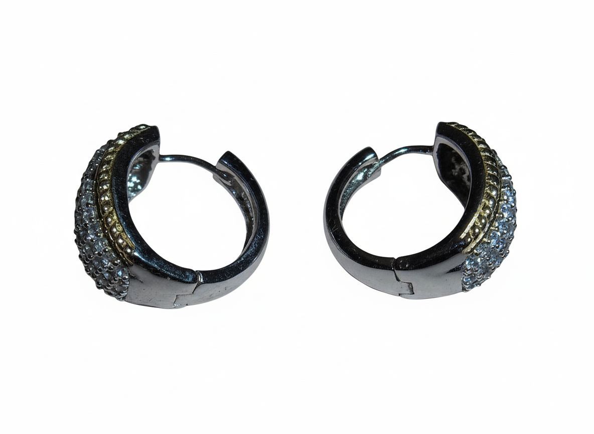 1 Paar Creolen 925er Silber rhodiniert mit klaren Zirkonia #1202
