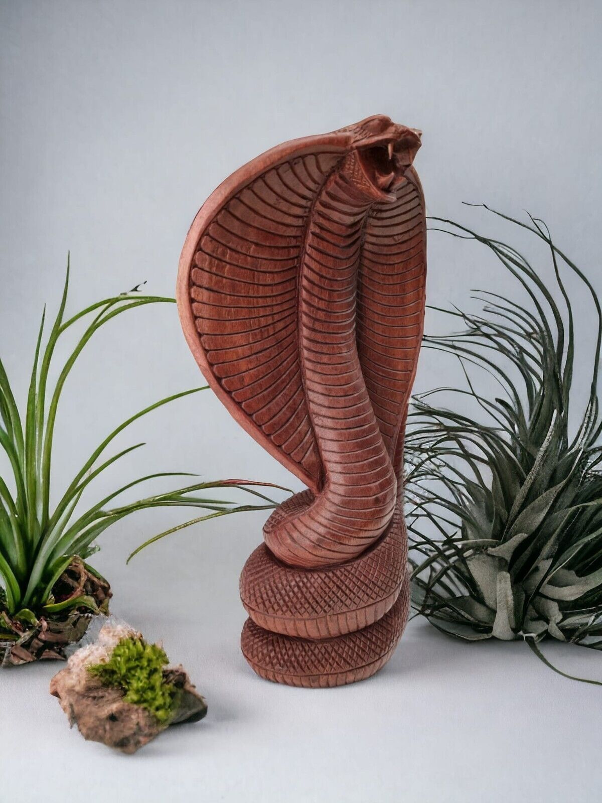 Massivholz Cobra Schnitzerei Skulptur Deko Statue Schlange Orientalisch Kobra