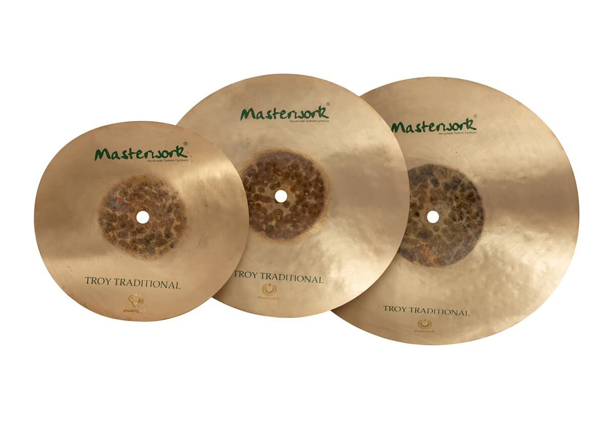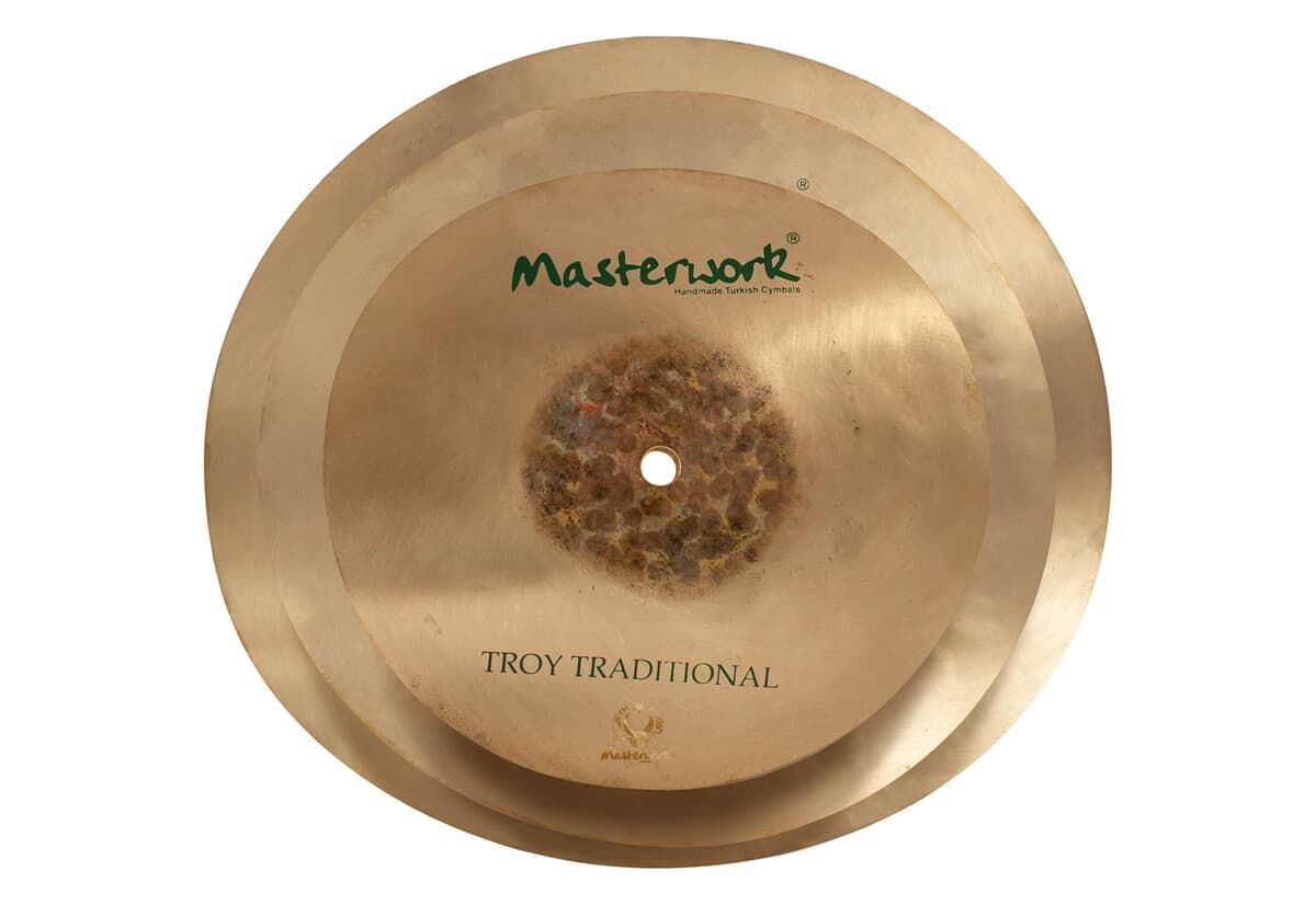 Troy Traditional FX Stack Die Troy Traditional Serie ist die preiswerte Einstiegsmöglichkeit in die Welt der hochwertigen Masterwork-Becken. Die Troy Traditional Serie wird wie die anderen Serien aus B25-Bronze von Hand gehämmert und anschließend abgedreht, wobei die Kuppe unbehandelt bleibt. Troy T
