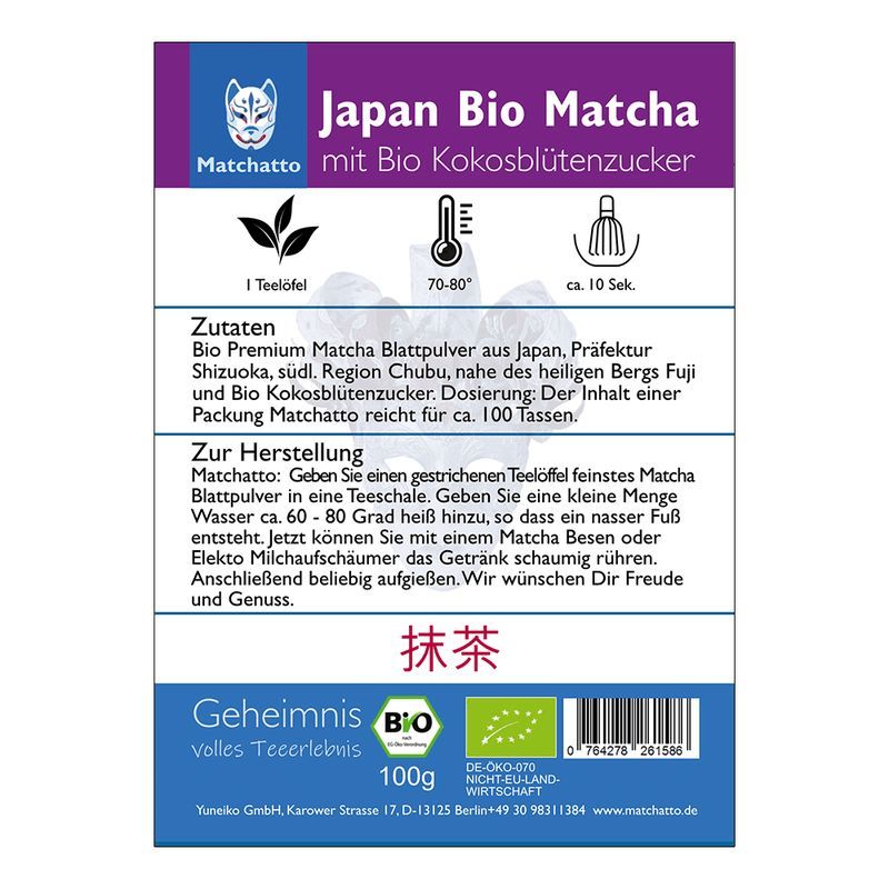 Matcha Tee Pur mit Kokoszucker 100g von Matchatto