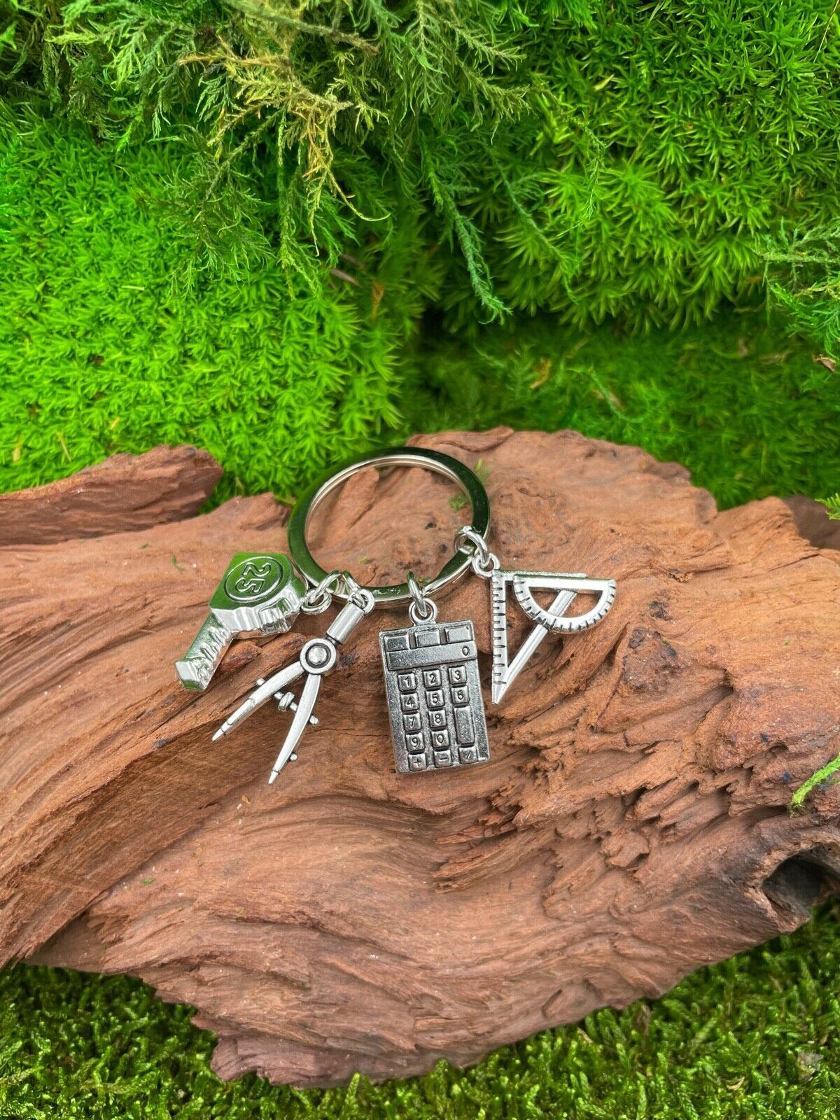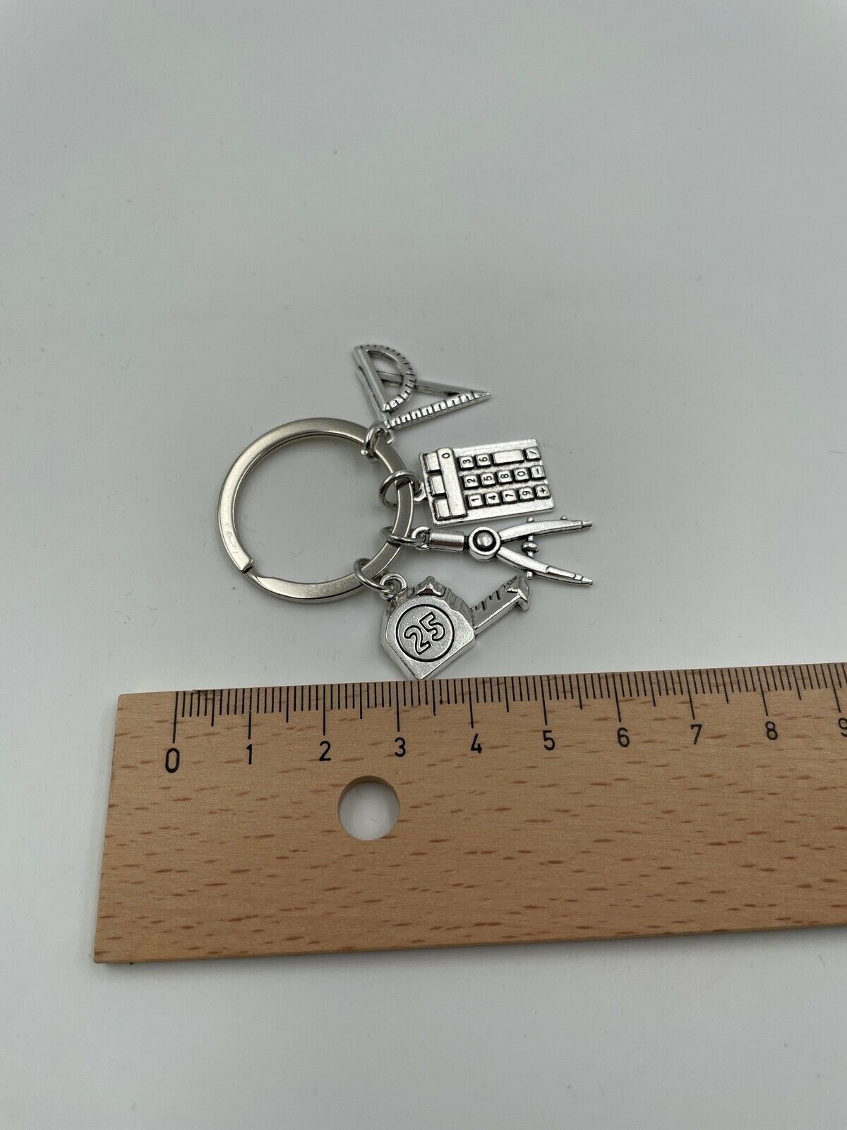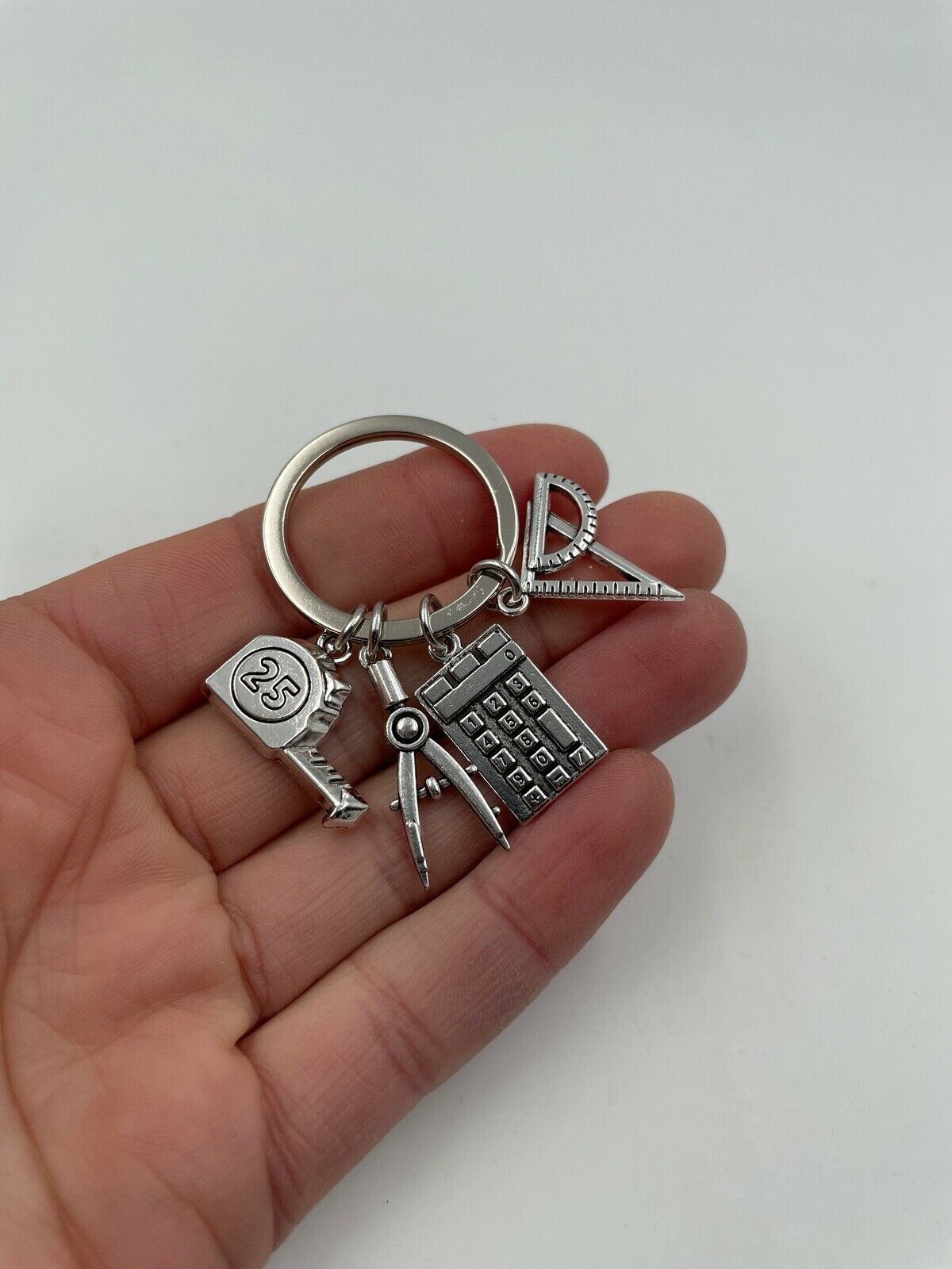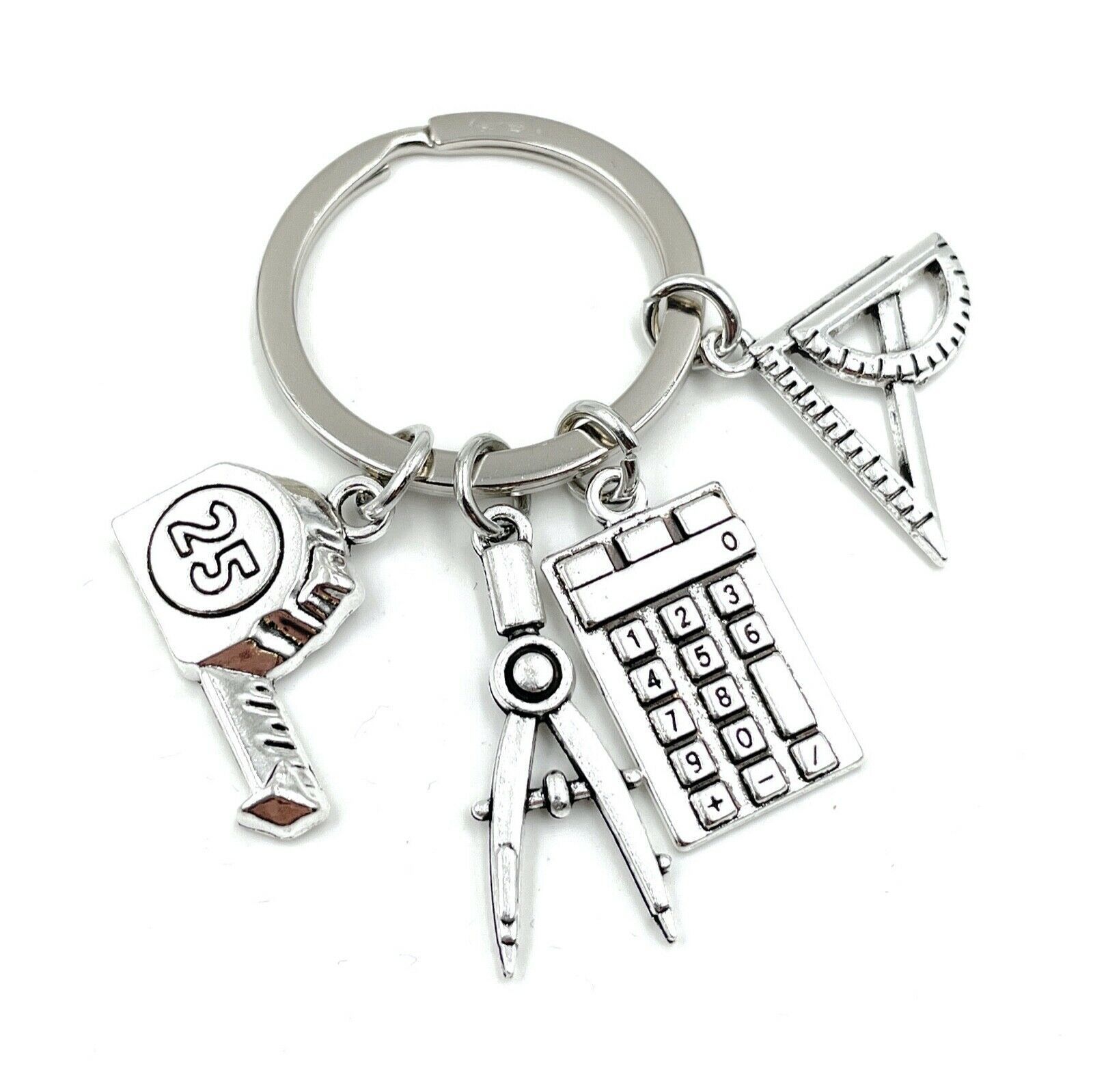Mathe Zirkel Geodreieck Maßband Rechner Schlüsselanhänger Metall Glücksbringer