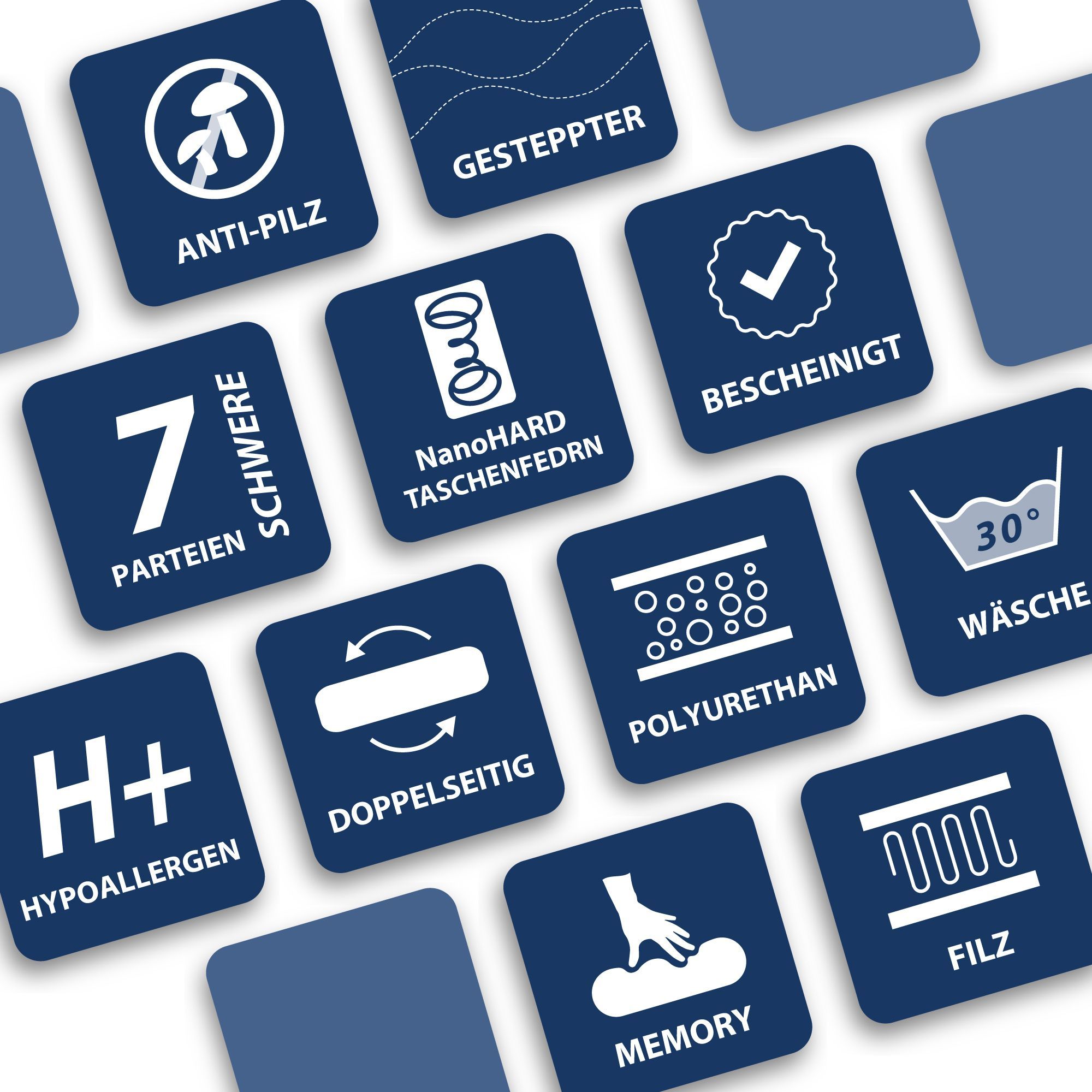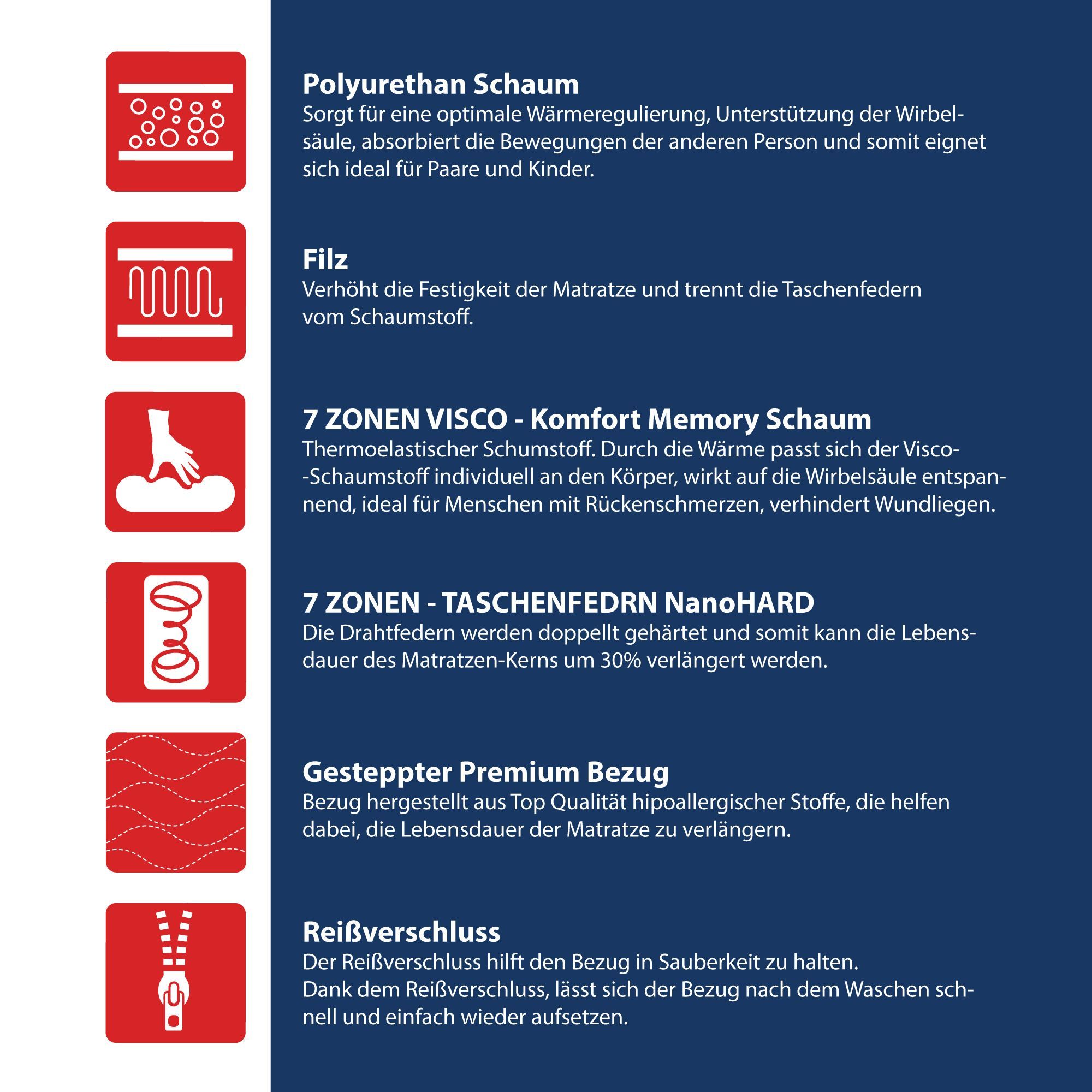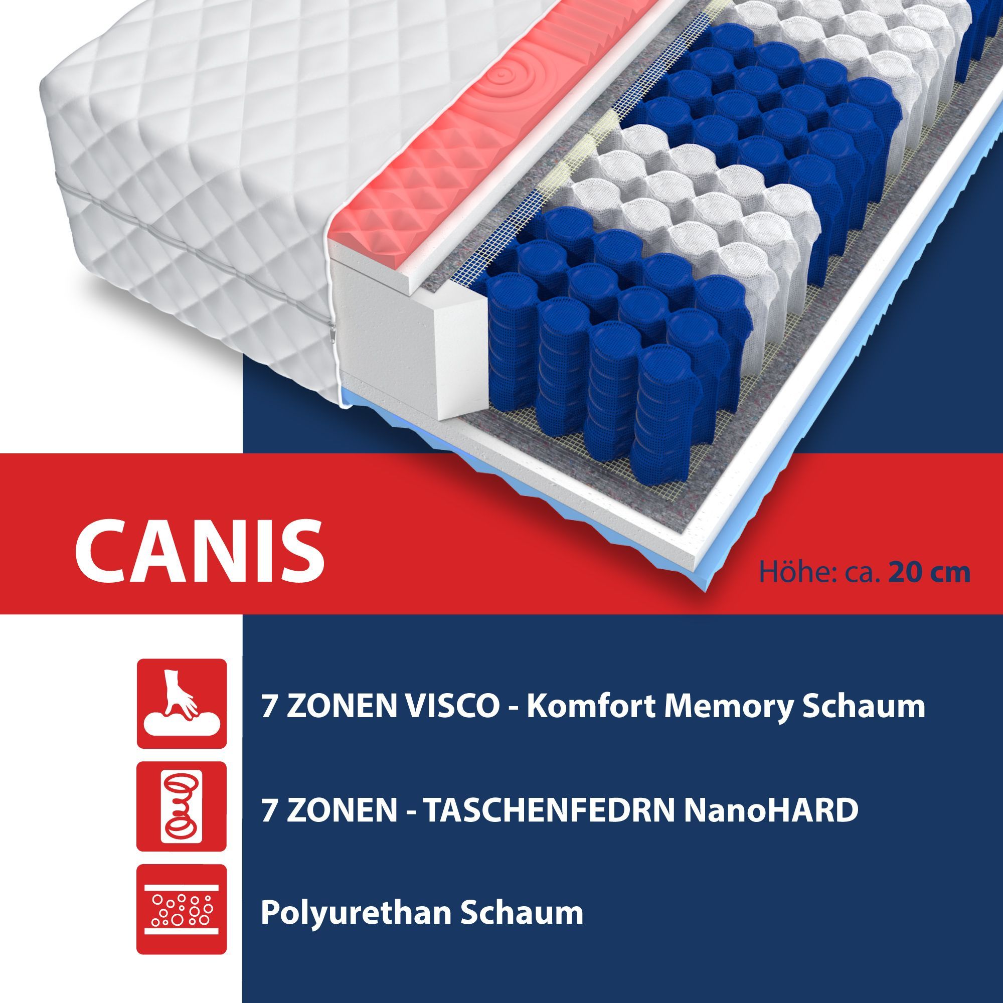 Matratze 140x200 cm Taschenfederkern H3 CANIS Visco HR-Schaum 7 Zonen Höhe 20 cm