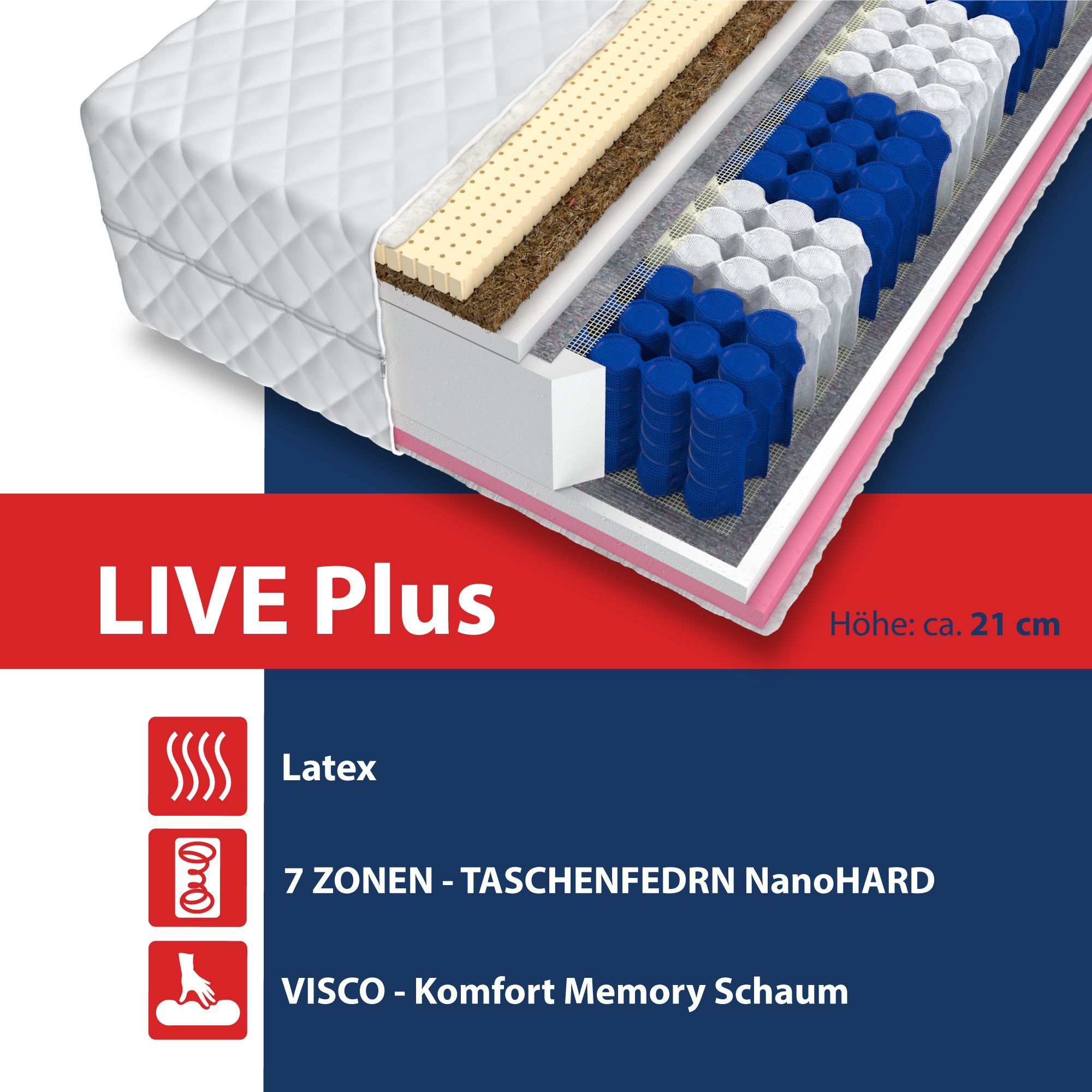 Matratze 140x200 LATEX VISCO Memory Kokos LIVE Taschenfederkern 7 Zonen H3 21cm