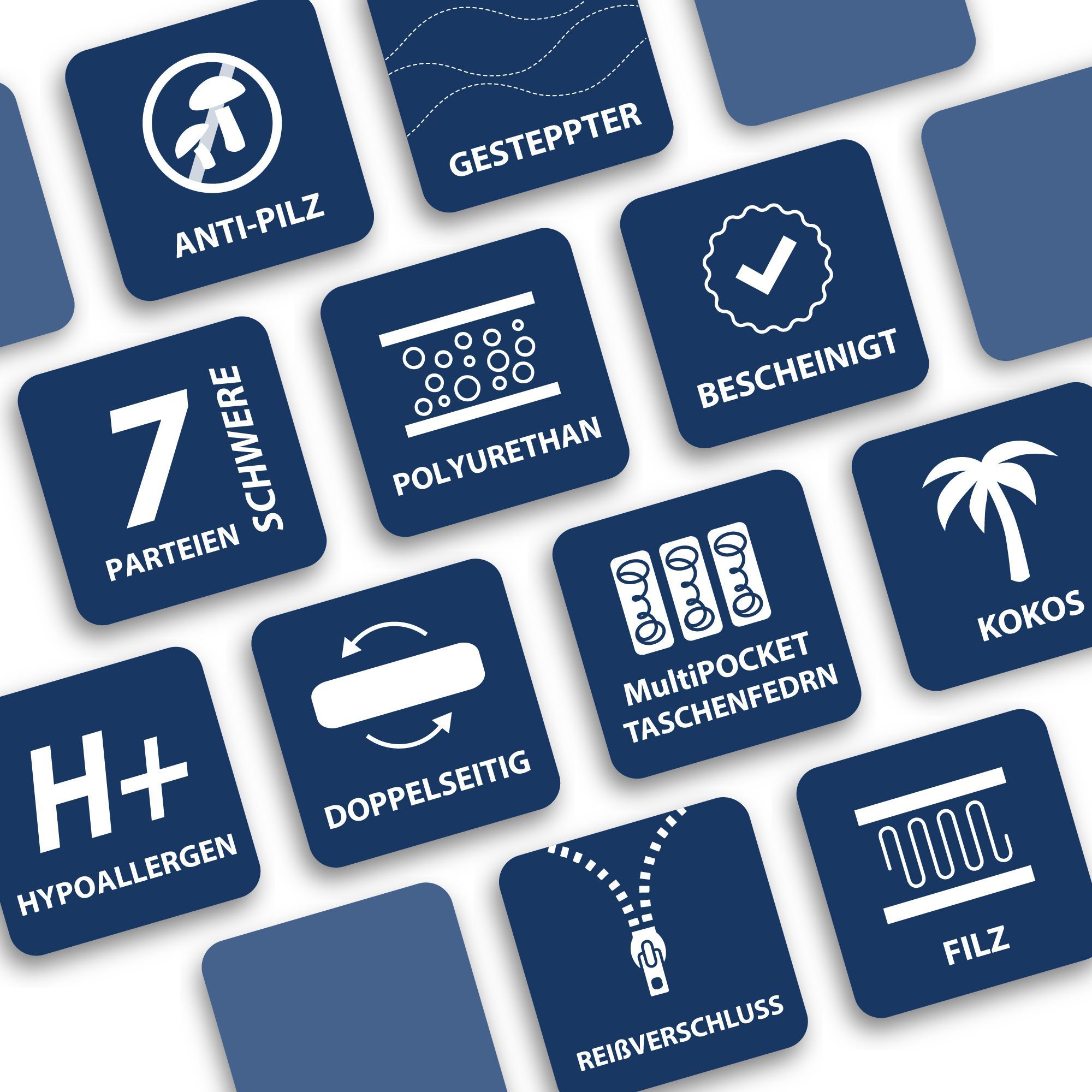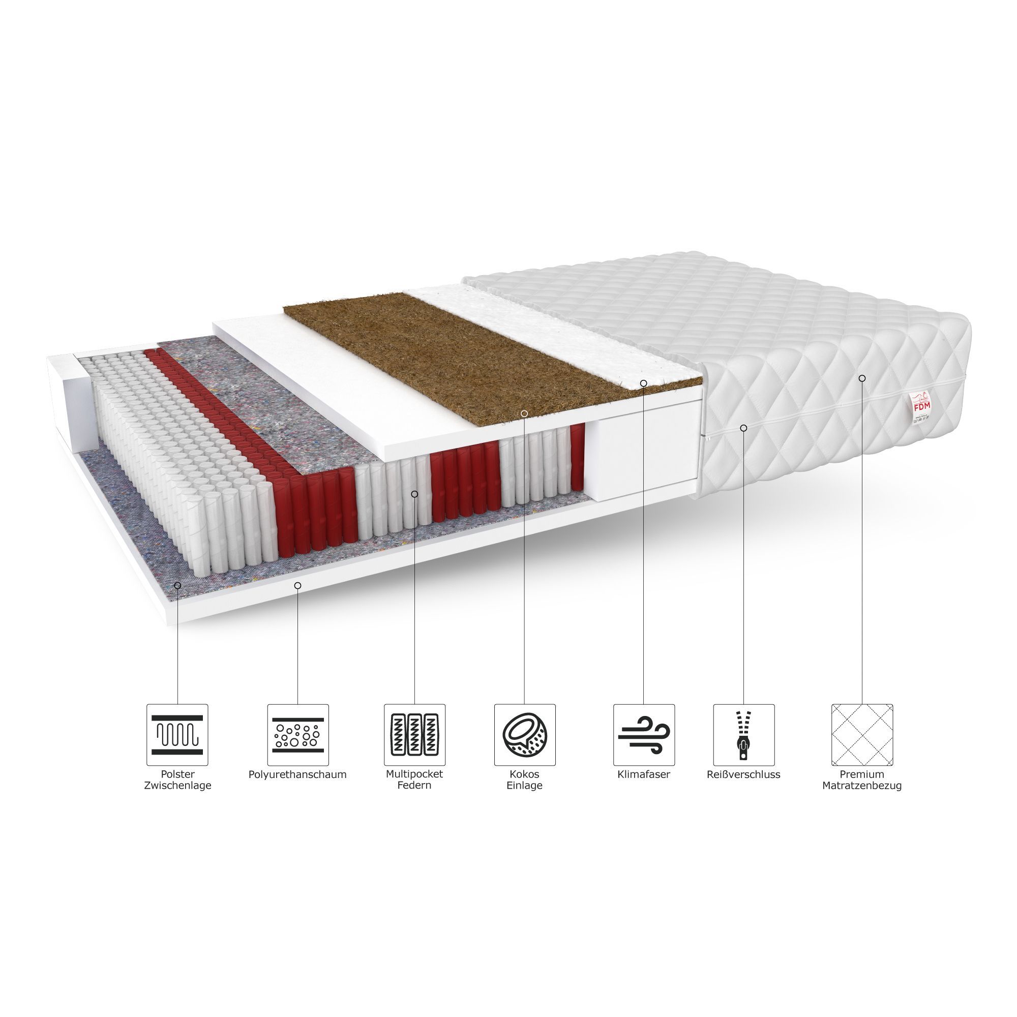 Matratze 160x200 HOME MAX Multipocket 24cm 7 Zonen Taschenfederkern Kokos H3 H4
