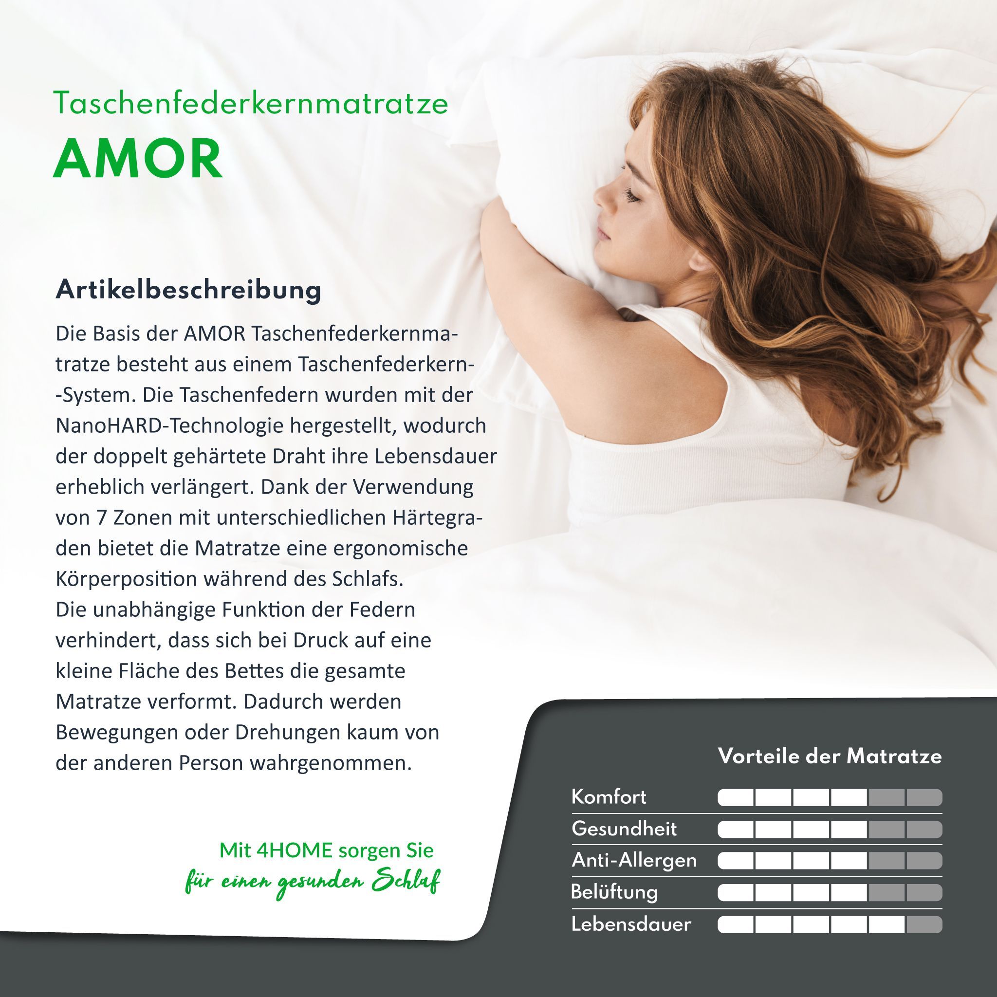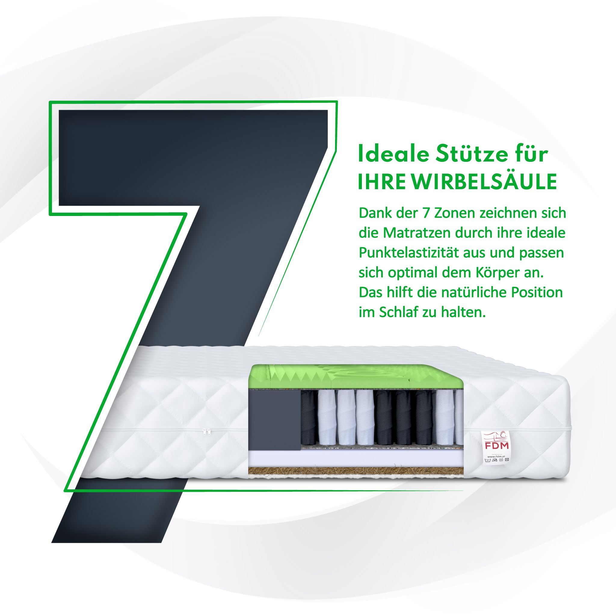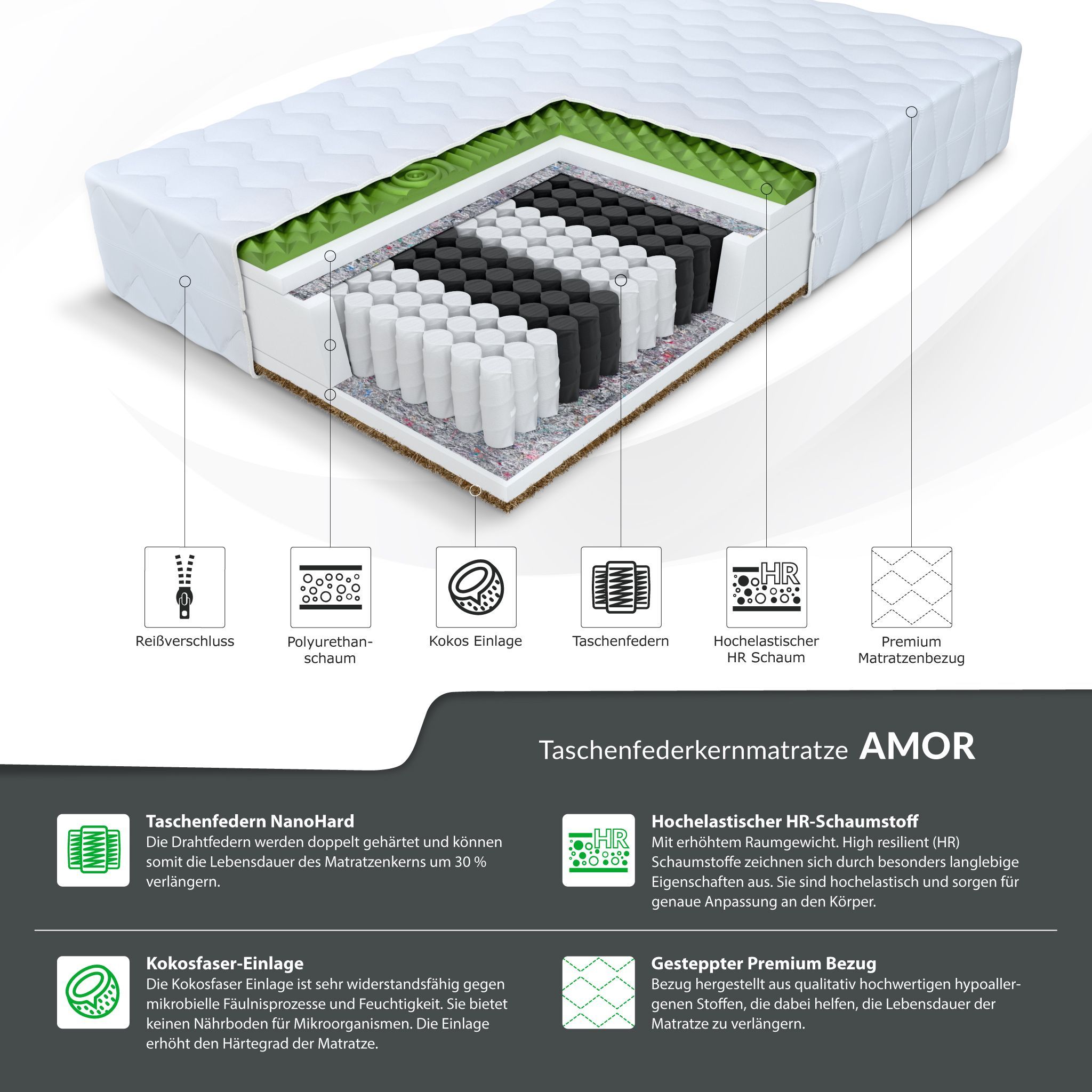 Matratze 180x200 Taschenfederkern Kokos 7 Zonen H3 H4 AMOR HR Schaum Höhe 19 cm