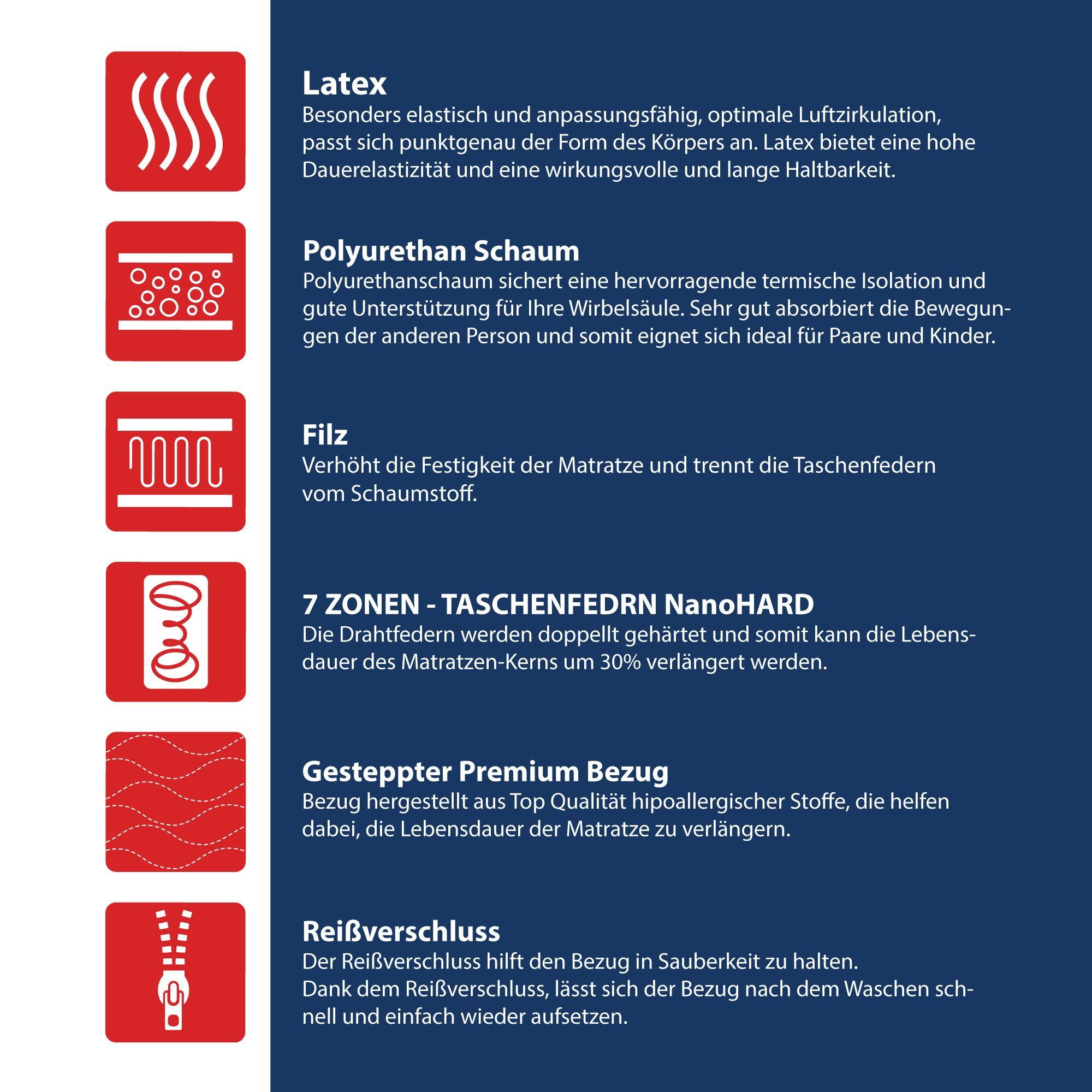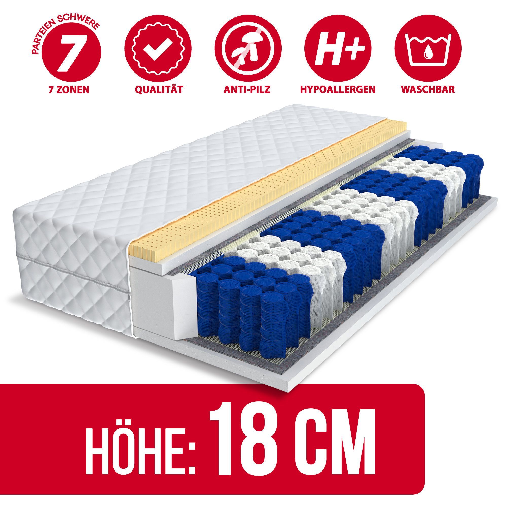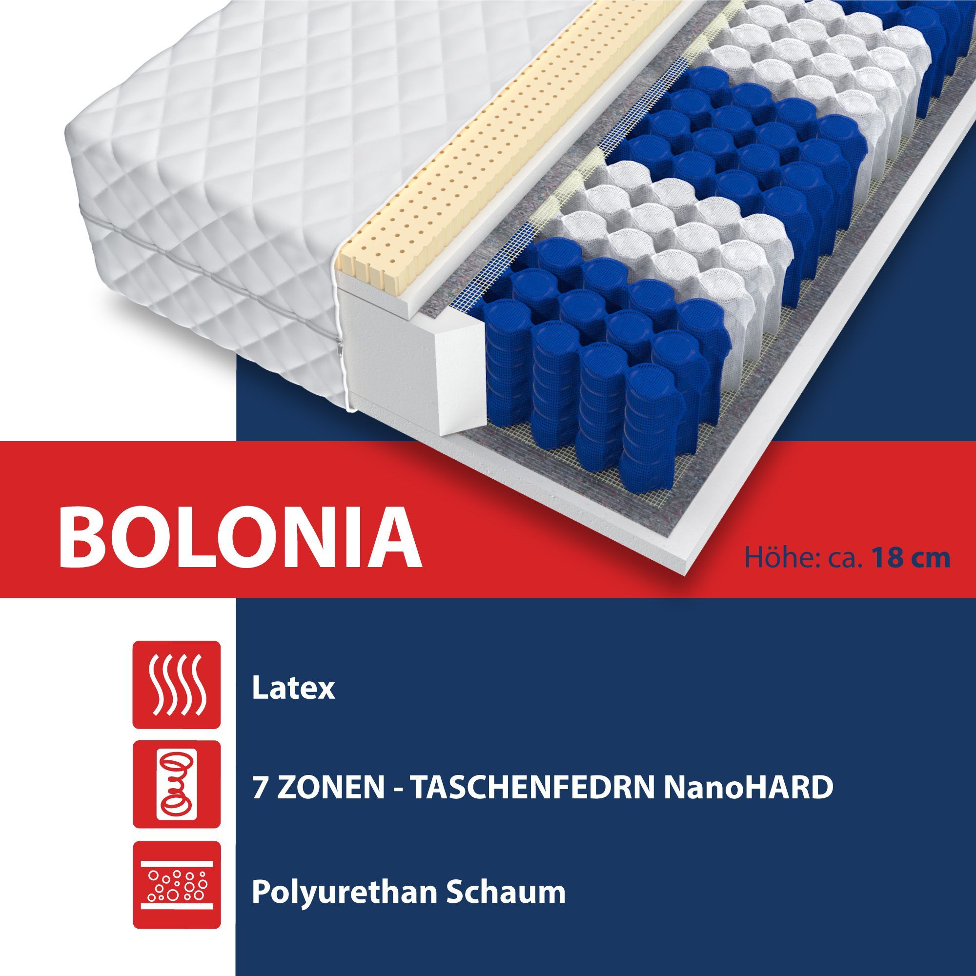 Matratze 180x200 Taschenfederkern Latex Kaltschaum 7 Zonen H2 H3 Bolonia 18 cm