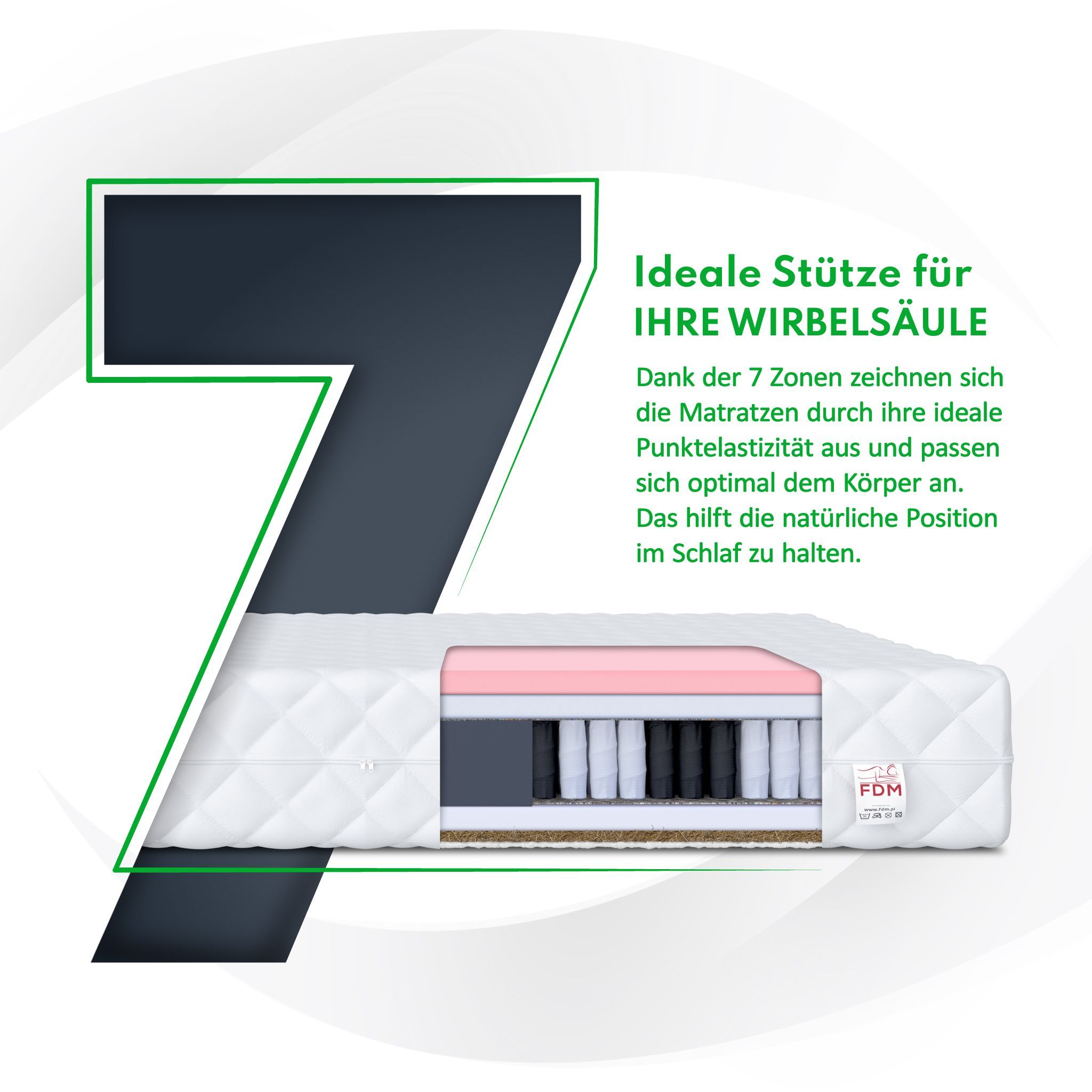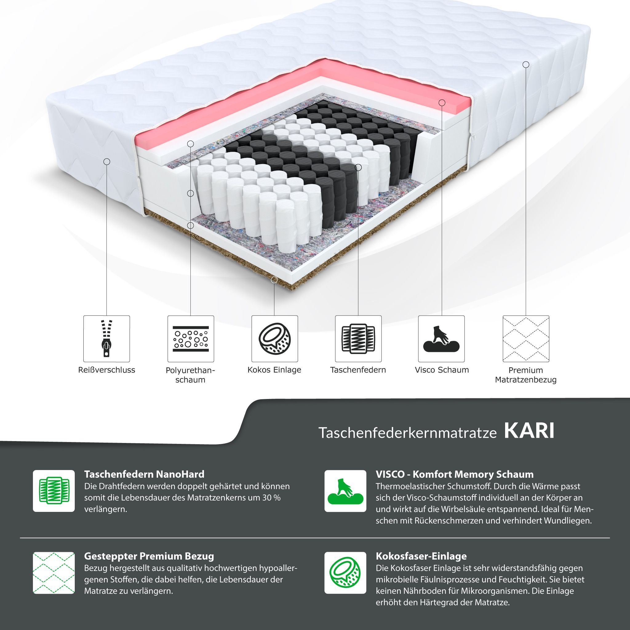 Matratze 80x200 Taschenfederkern Visco Memory Kokos 7 Zonen KARI 21cm H3 H4 Bett