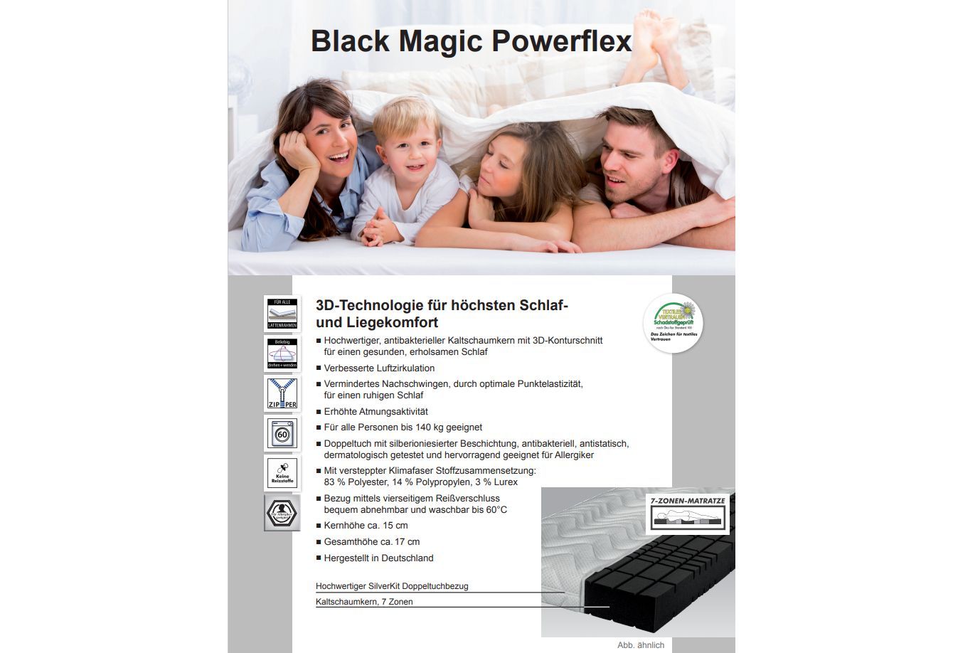 Matratze Black Magic geignet bis 140 kg 7 Zonen 160x200 cm Powerflex 17cm Hoch + Lat