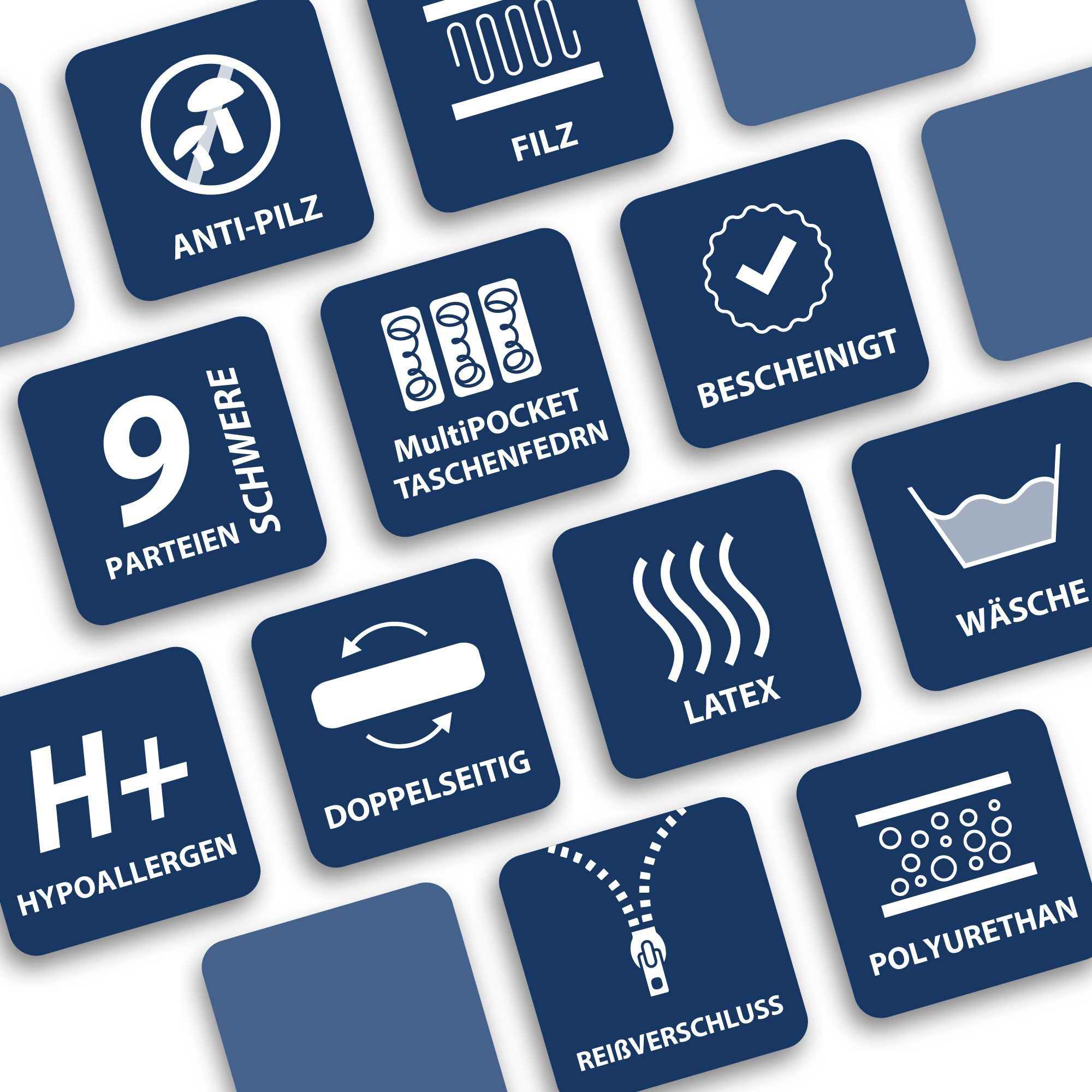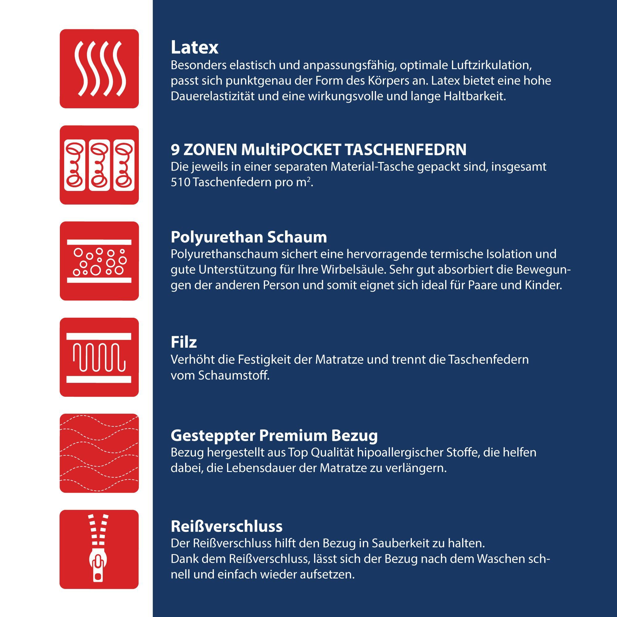 Matratze RIMINI 9 Zonen 90x200 H3 LATEX Exclusive Multipocket Taschenfederkern