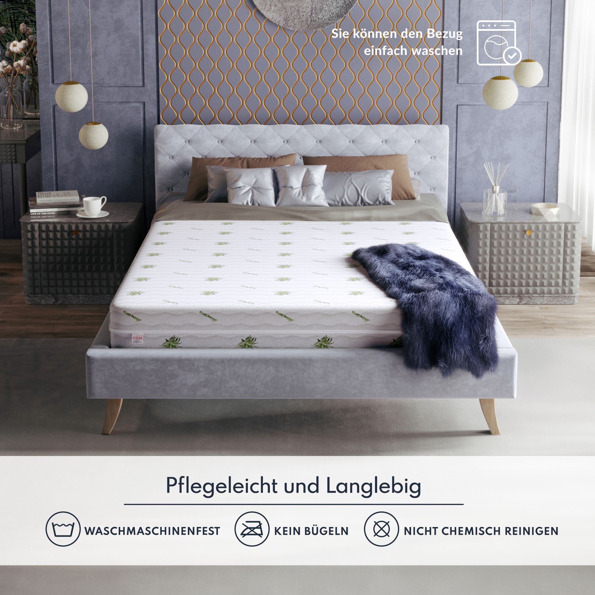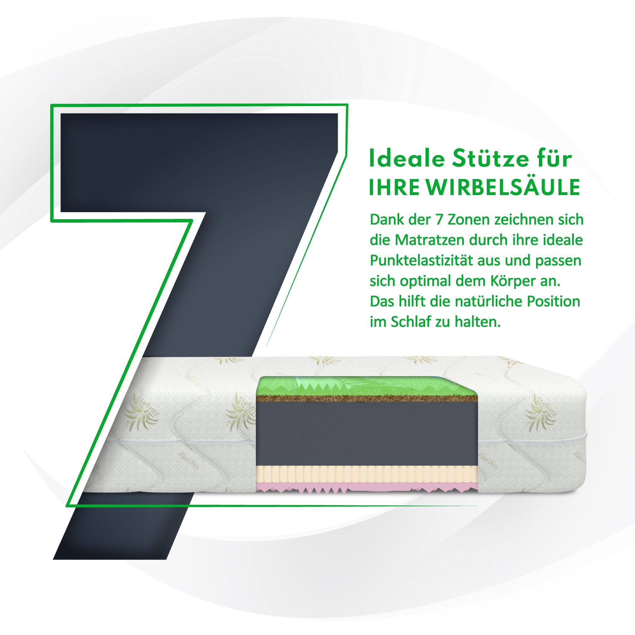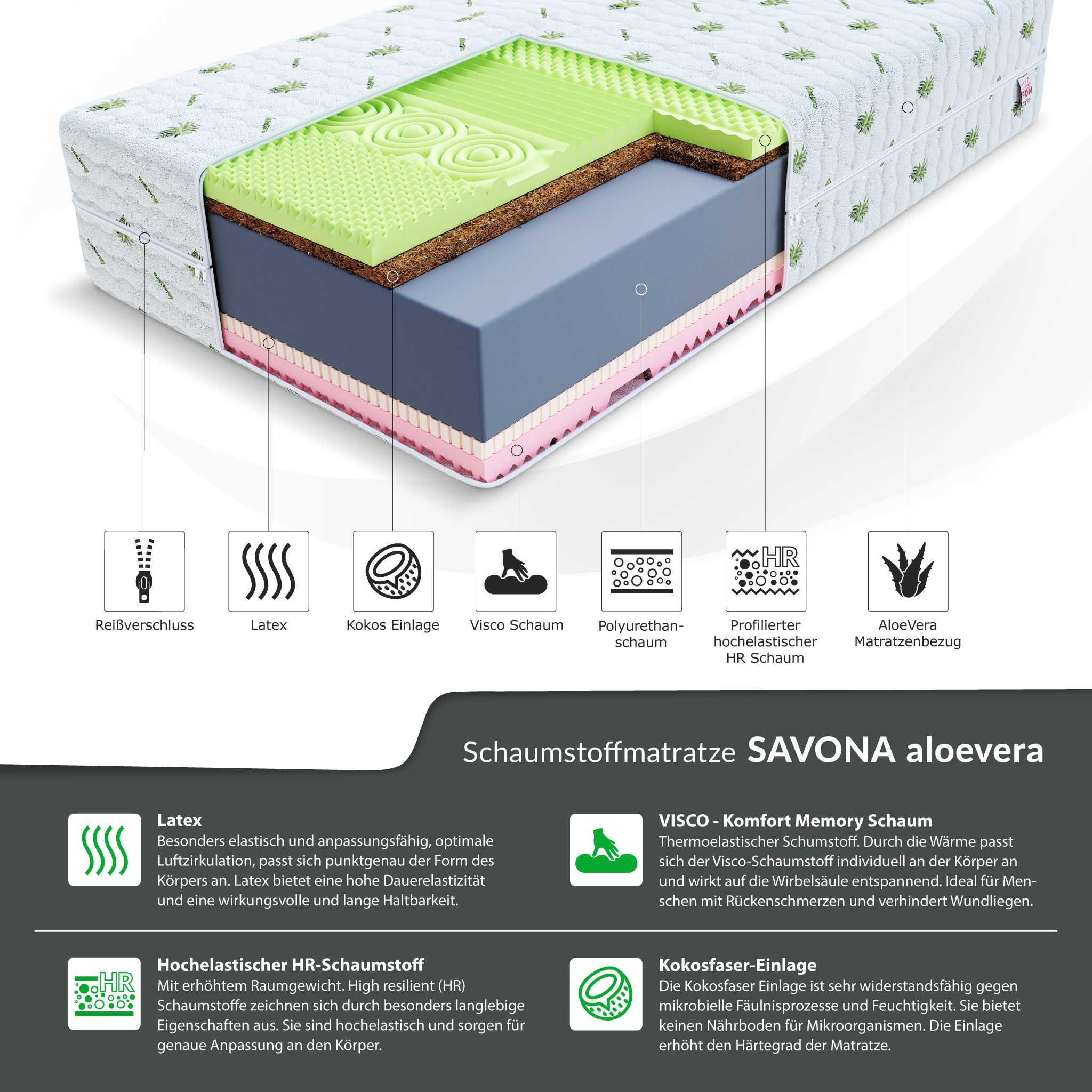 Matratze SAVONA 7 Zonen 100x200 cm H3 H4 22 cm Kokos Latex Visco Aloe Vera Bezug