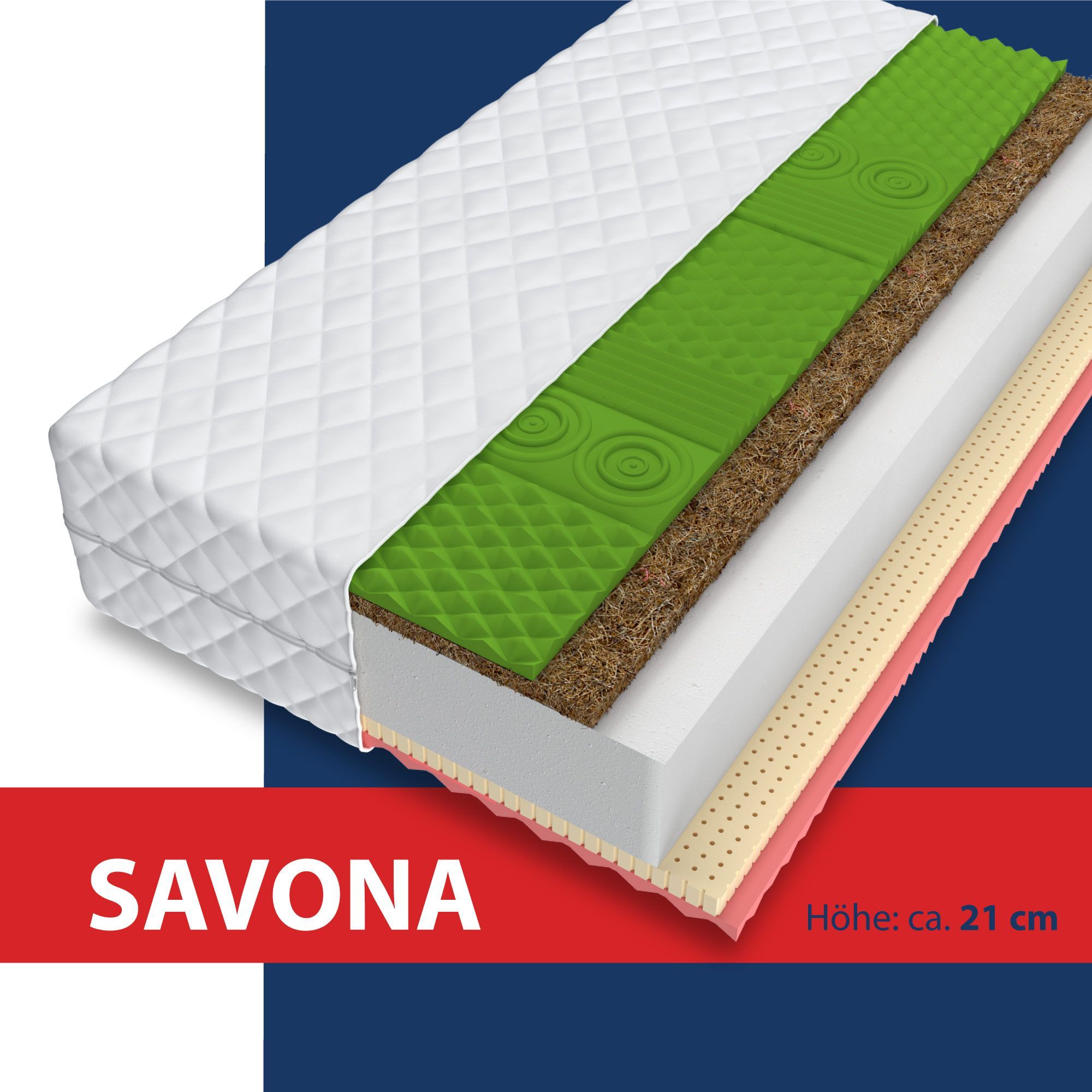 Matratze SAVONA 7 Zonen H3 H4 VISCO Memory LATEX KOKOS Kaltschaum Größe wählbar