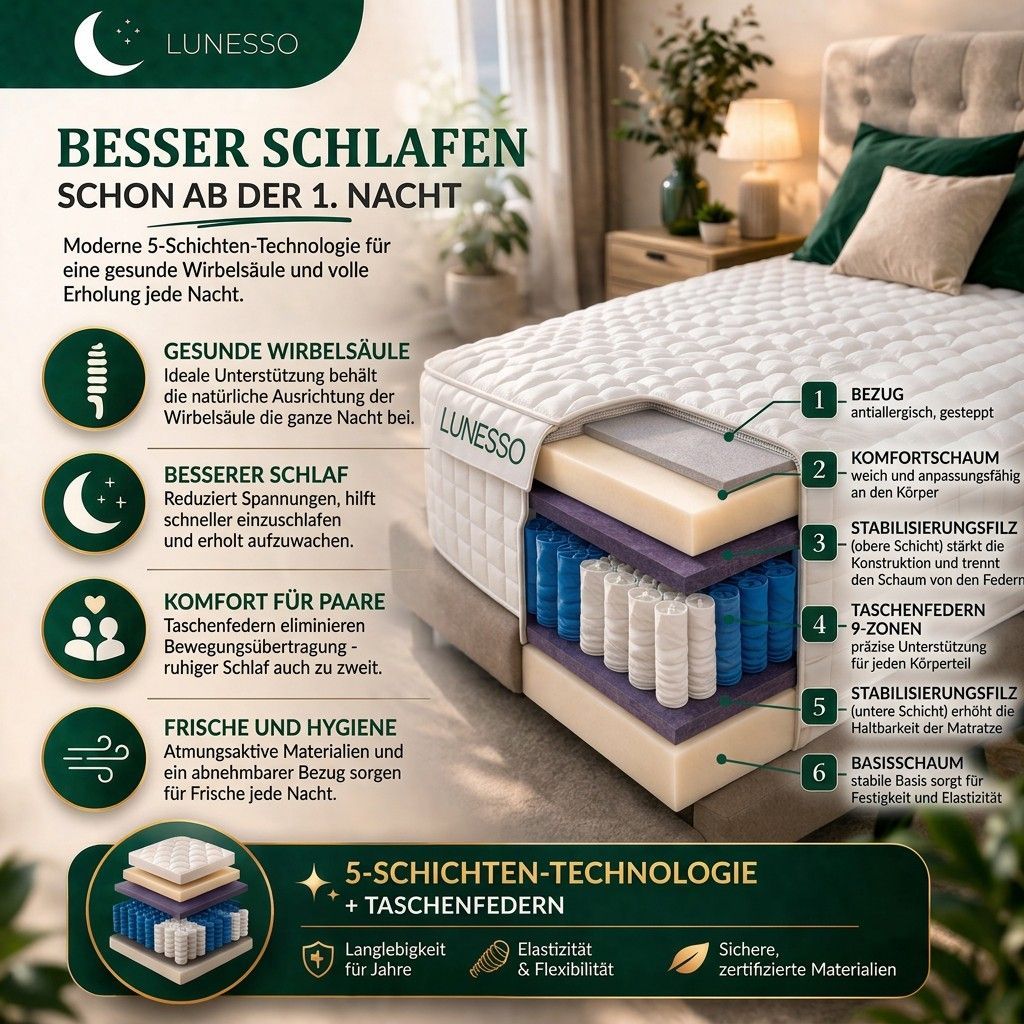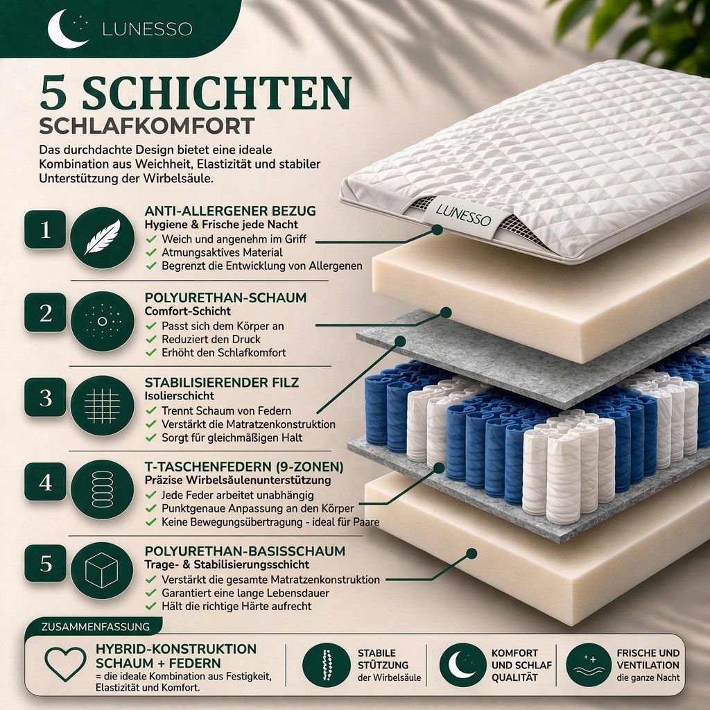 Matratze Taschenfederkern METIS H3 MEMO 16cm 9 zonen Bett